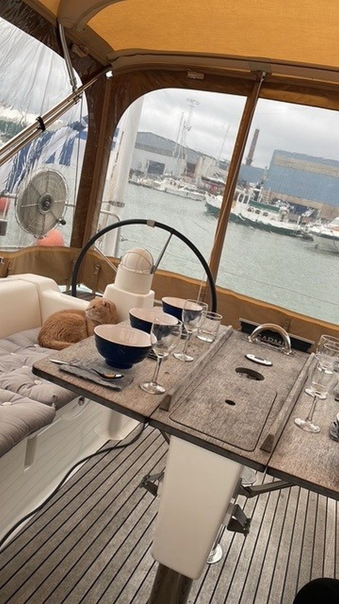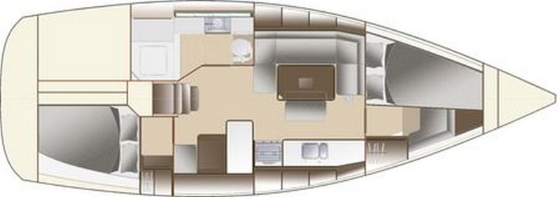 A spacious two-cabin sailboat in excellent condition. Sleeping places for four in the cabins, plus an extra bed in the saloon. Spacious toilet/shower and large storage space on the port side aft.