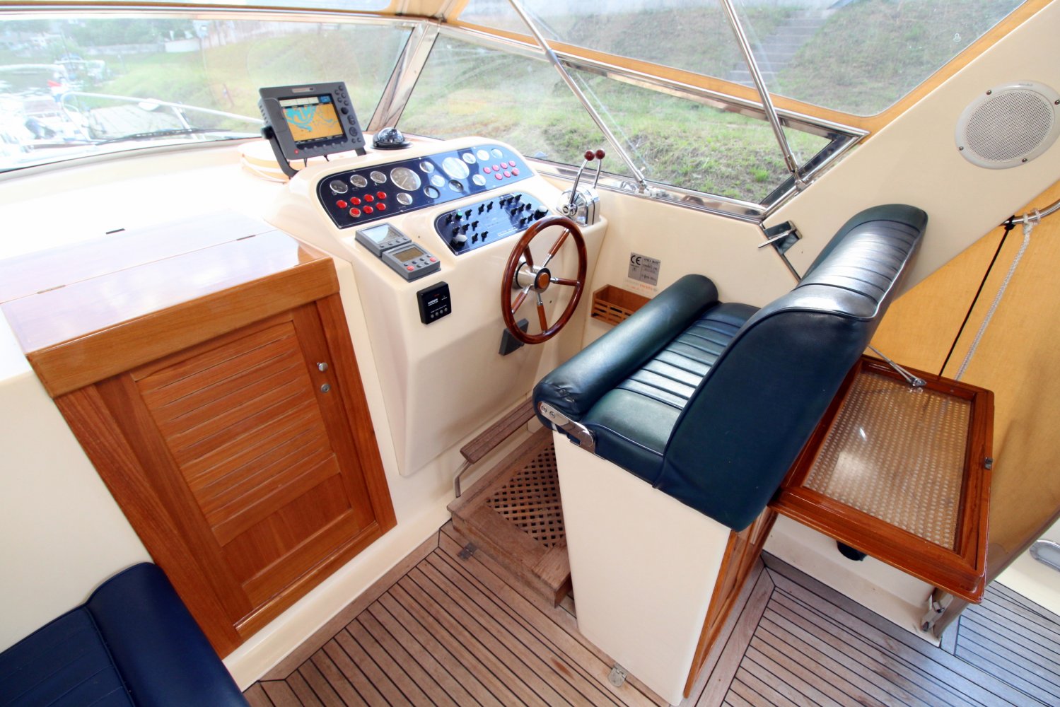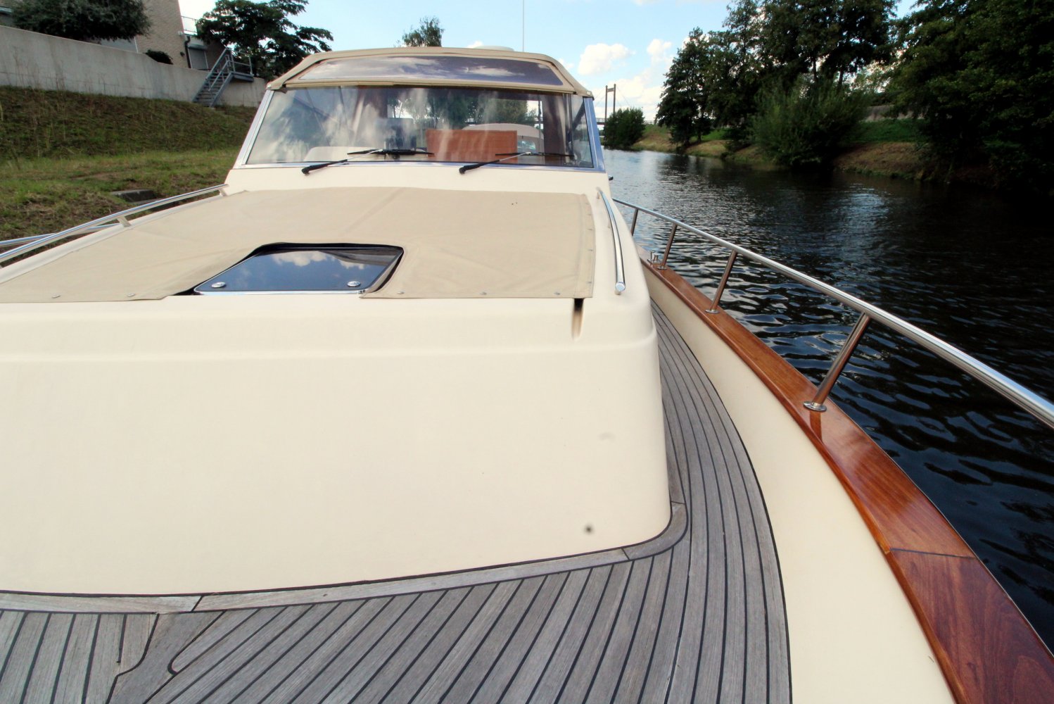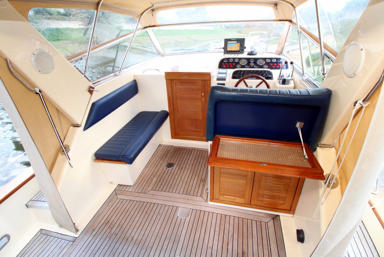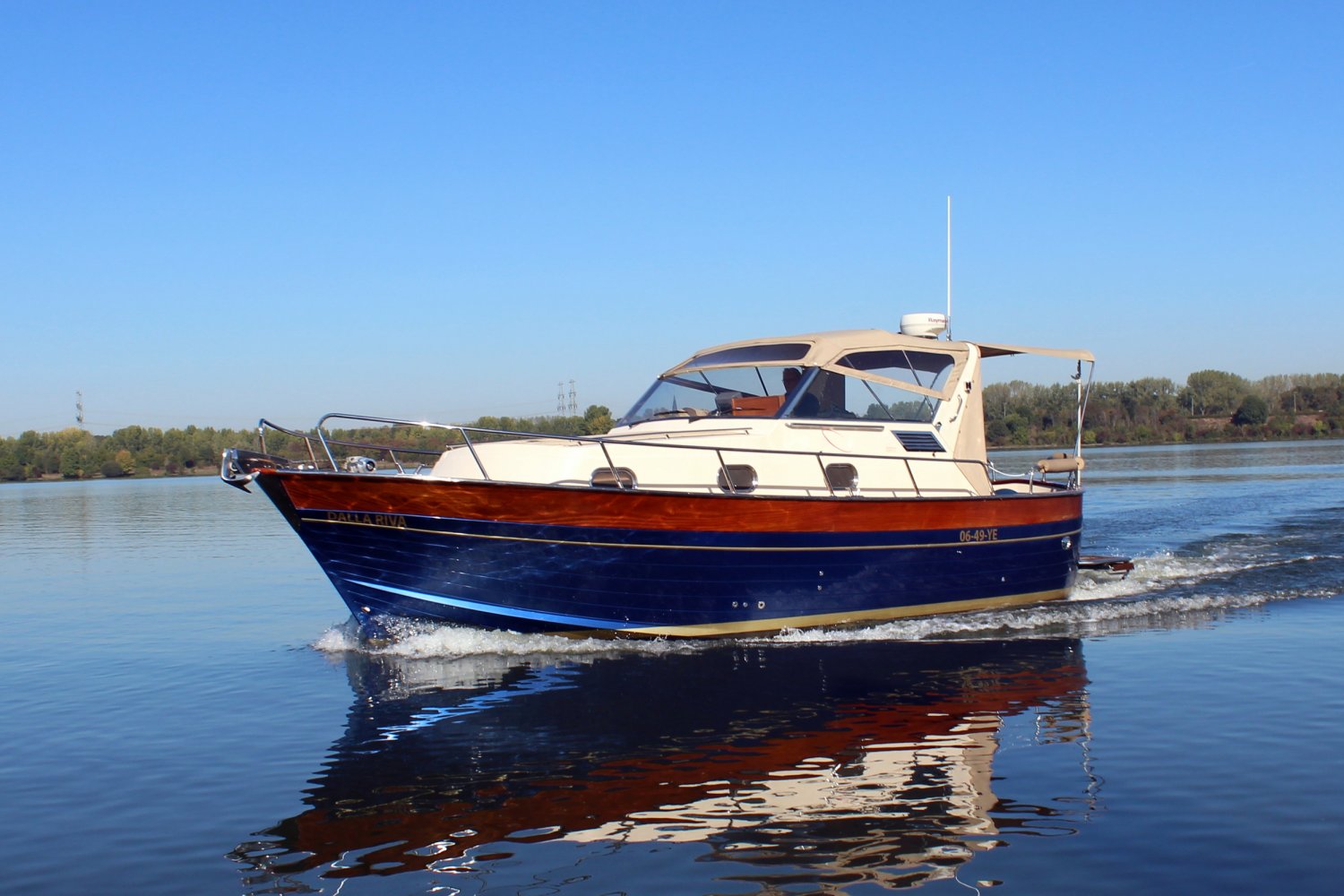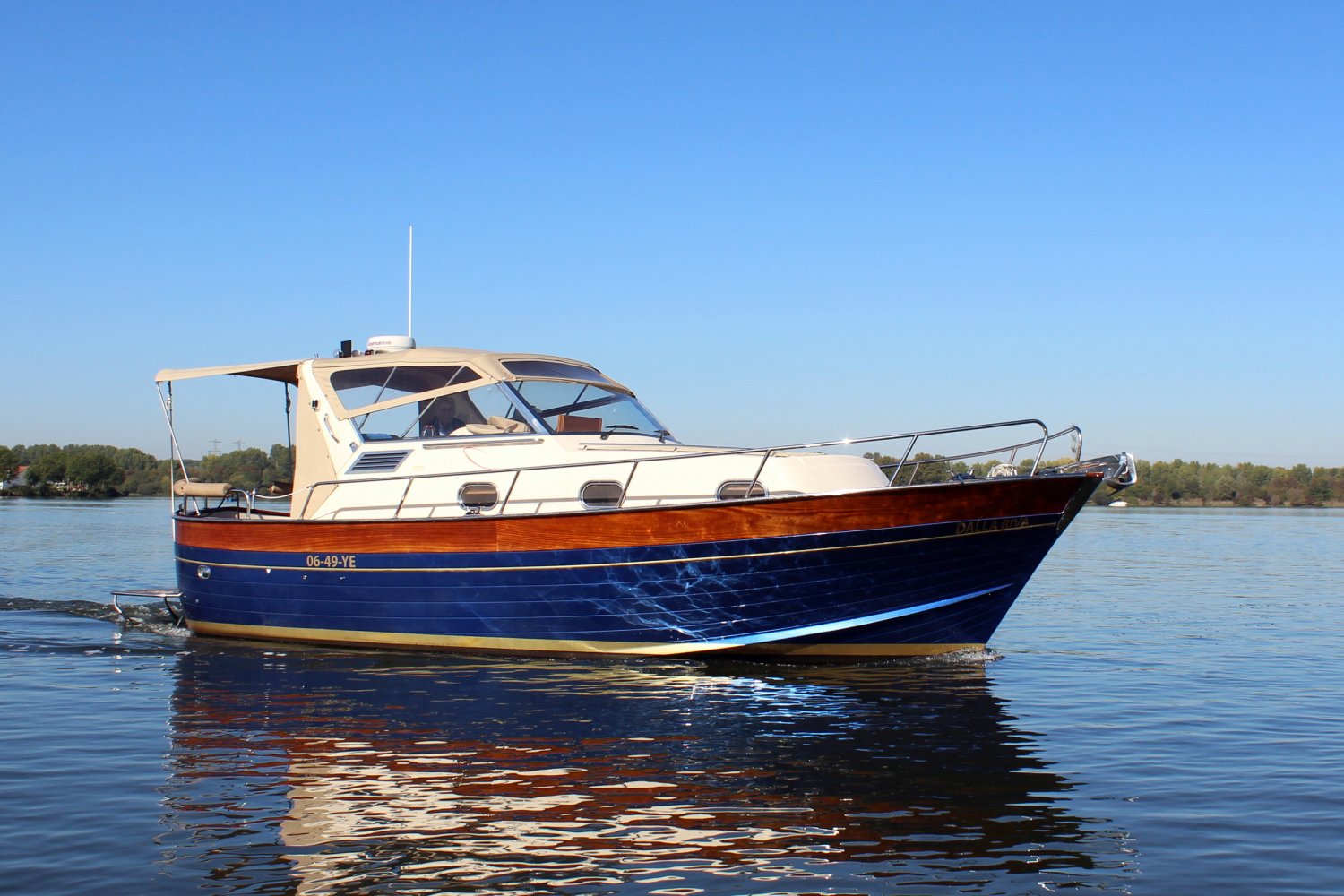 De Apreamare 9 Cabinato heeft een unieke stijl en een luxueus interieur.  De boten van het Italiaanse merk Apreamare onderscheiden zich in betrouwbaarheid, comfort, wendbaarheid en snelheid. Het unieke design van deze boten geven u het “ Bella Italia “ gevoel, om heerlijk te genieten op het water. Het exemplaar welke wij u aanbieden is een zeer compleet uitgerust jacht, en is voorzien van vele extra’s. Deze zoetwater boot is in een uitstekende staat van onderhoud, zo wordt de boot elke winter binnen gestald en is het houtwerk opnieuw professioneel geschilderd en voorzien van 10 nieuwe laklagen, tevens is er nieuwe antifouling aangebracht en zijn de anodes vernieuwd in April 2019. Beide motoren zijn gereviseerd en aangepast aan de meest recente specificaties, tevens zijn de canvas kappen vernieuwd inclusief bimini en rolkussens. Dit dubbelschroefs  zeewaardig motorjacht beschikt over uitstekende vaareigenschappen, zowel snel- als langzaam varend. Manoeuvreren is zeer eenvoudig met twee motoren en de sterke boegschroef.