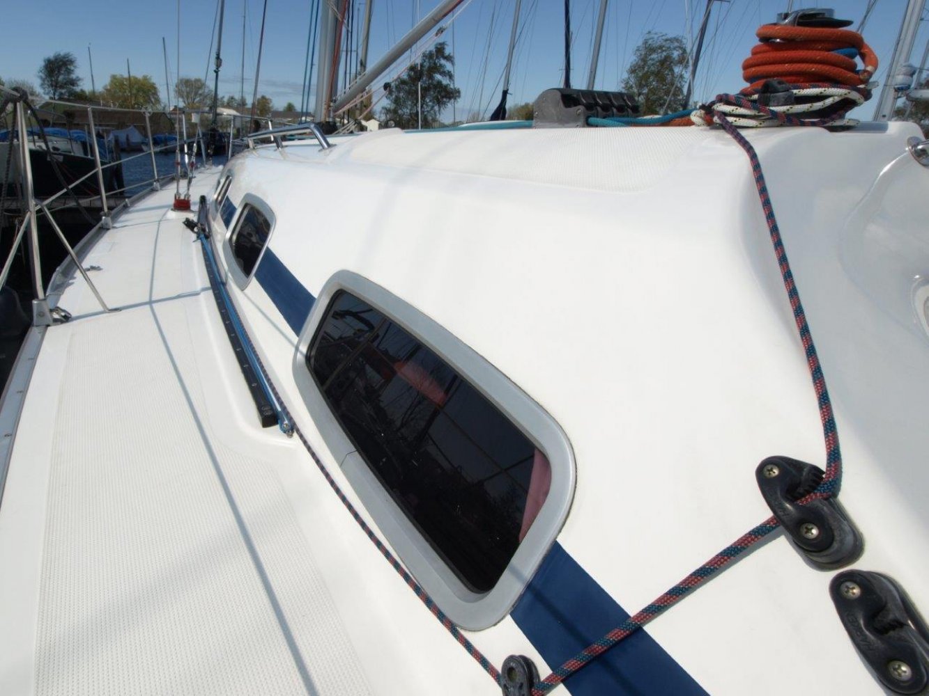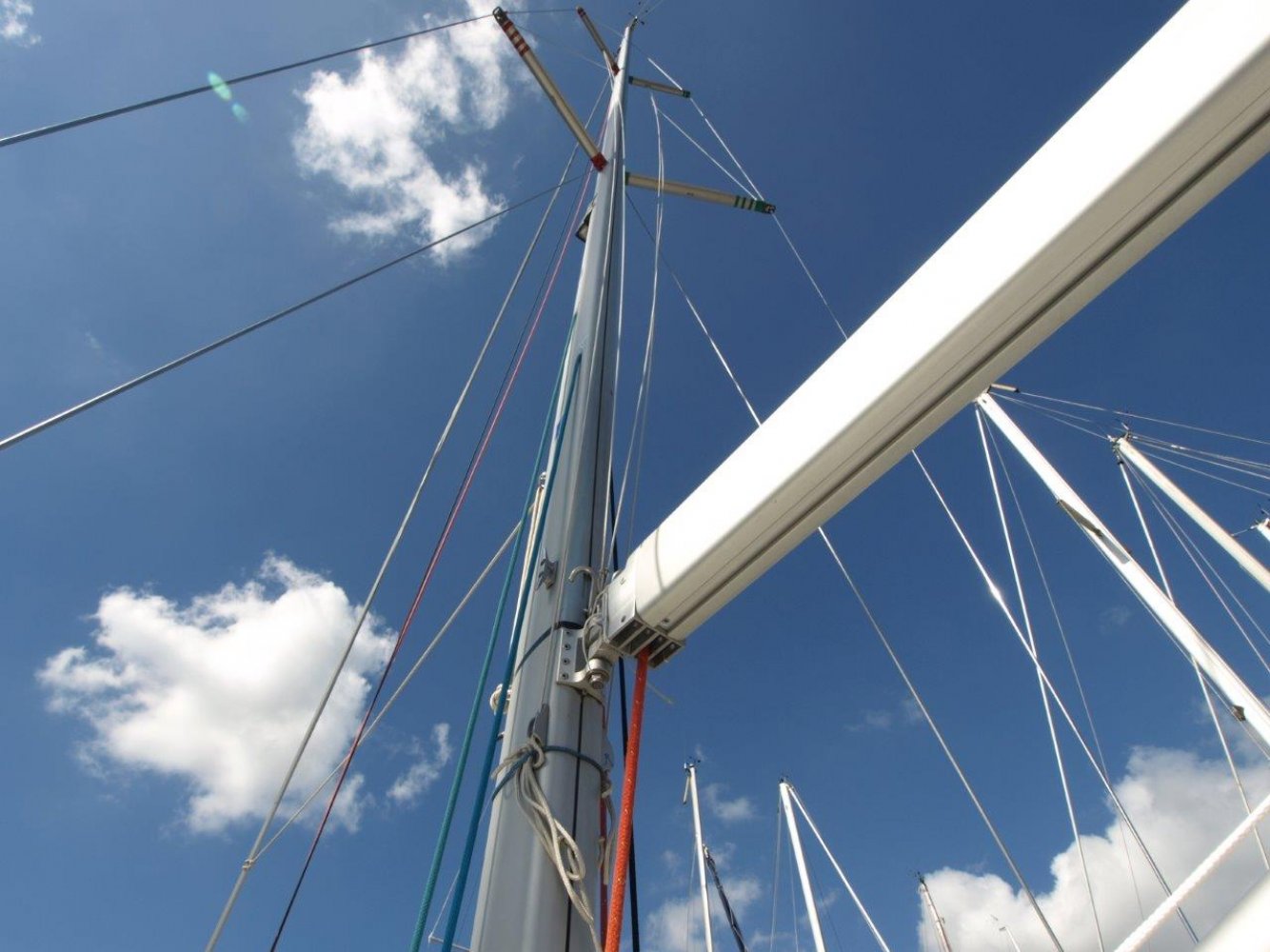Sparcraft mast, giek, neerhouder en spinakerboom en verjongde spinakerschoten Grootzeilhuik, rolfokhoes en stuurwielhoes.
