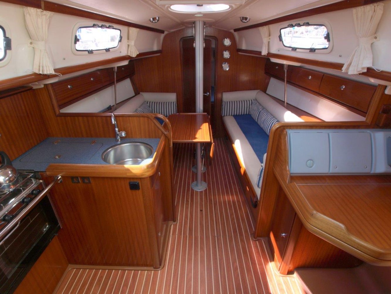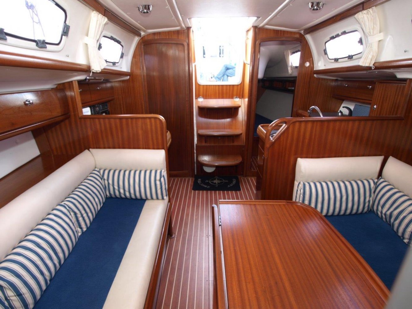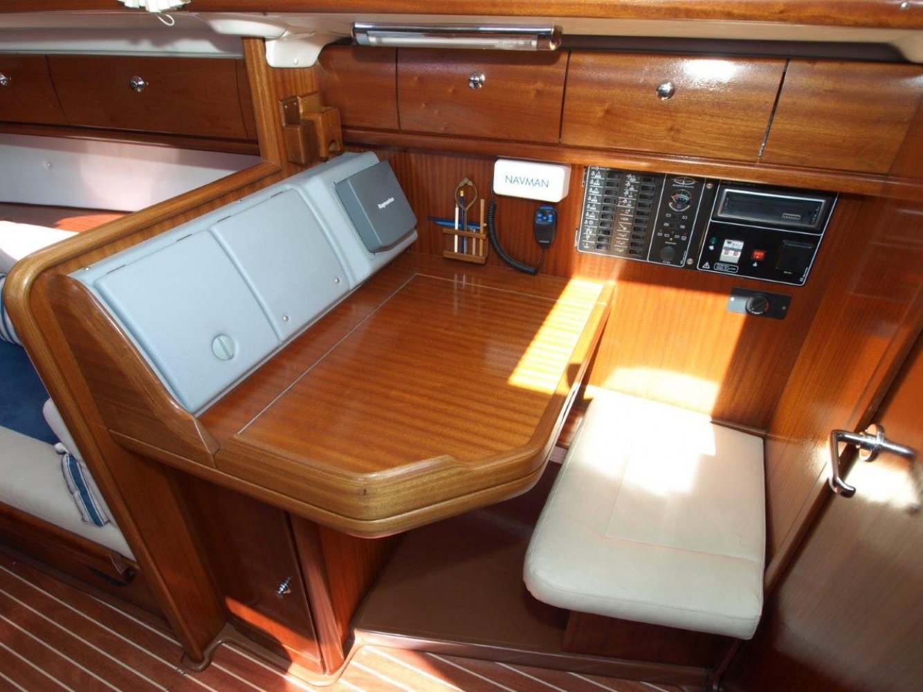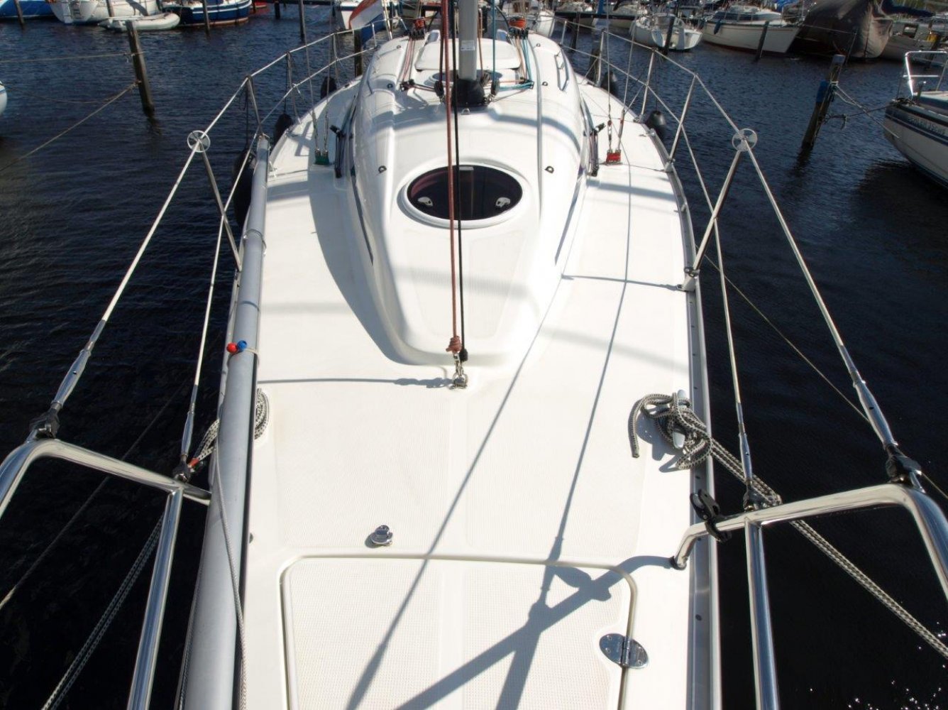 Deze Bavaria 35 Match die wij u aanbieden is afkomstig van de eerste eigenaar en is in een perfecte staat van onderhoud. Dit schip is compleet uitgevoerd, zo is deze 35 Match voorzien van een complete set zeilen, een verwarming, teak op de kuipbanken en ga zo maar door. Het schip heeft slechts 315 motoruren. Deze Bavaria 35 Match biedt echt “The best of both worlds””, een sportieve zeiler zonder dat er is ingehouden op comfort. De kuip biedt volop ruimte voor alle opvarenden. Van achter de stuurstand heeft u een goed overzicht over het schip, de omgevingen en de instrumenten. Omdat de overloop direct voor het stuurwiel staat gaat er nauwelijks ruimte of bewegingsvrijheid verloren. Ook van binnen is het schip is een bijzonder mooie staat van onderhoud, het houtwerk, de kussens en de vloer zien er allemaal nog uit als nieuw. Aan stuurboord is een ruime kaartentafel voorzien van een mooie Raymarine 435i kleuren kaartplotter. Aan bakboord is de ruime kombuis, voorzien van een 3-pits kooktoestel, bakoven en koelkast. Tevens is deze 35 Match voorzien van een Webasto verwarming. In de punt is een tweepersoonsbed met de benodigde opbergruimtes. Achter in het schip is de tweede tweepersoonshut. De natte cel is voorzien van een handmatig toilet welke is aangesloten op een 50 liter vuilwatertank. Dit schip is in een bijzonder mooie staat, heeft slechts 315 motoruren, 3.300 mijl gevaren en is compleet uitgerust. Als u op zoek bent naar sportieve zeiler, maar niet wilt inleveren op comfort, dan is deze Bavaria 35 Match zeker de moeite waard. Wij nodigen u dan ook van harte uit om een afspraak te maken voor een bezichtiging in Roelofarendsveen. Uw jachtmakelaar is Tim Grotendorst, +31681137418 of mail naar [email protected]