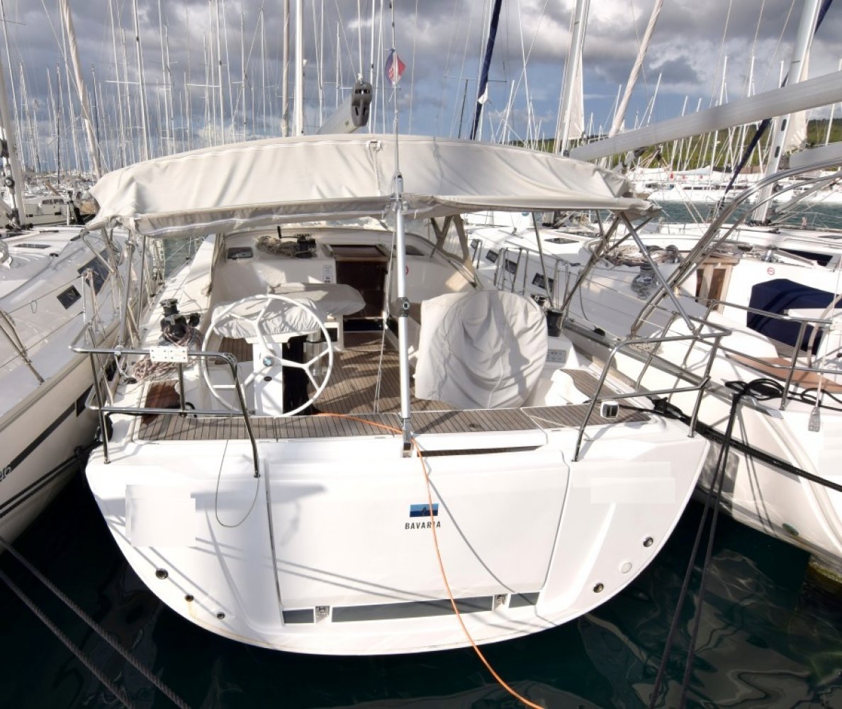Bavaria original they installed Comfort Package; Trim Control; Anchor Package; Navigation Package II, Teak on cockpit floor ; Head in Foreship incl. shower and grey water tank, Folding Propeller, FUSION Marine Multimedia Package 22'' (TV + DVD); Spray hood and Bimini. Do not compare this with an average ex-charter yacht as the maintenance done on this boat is superb.