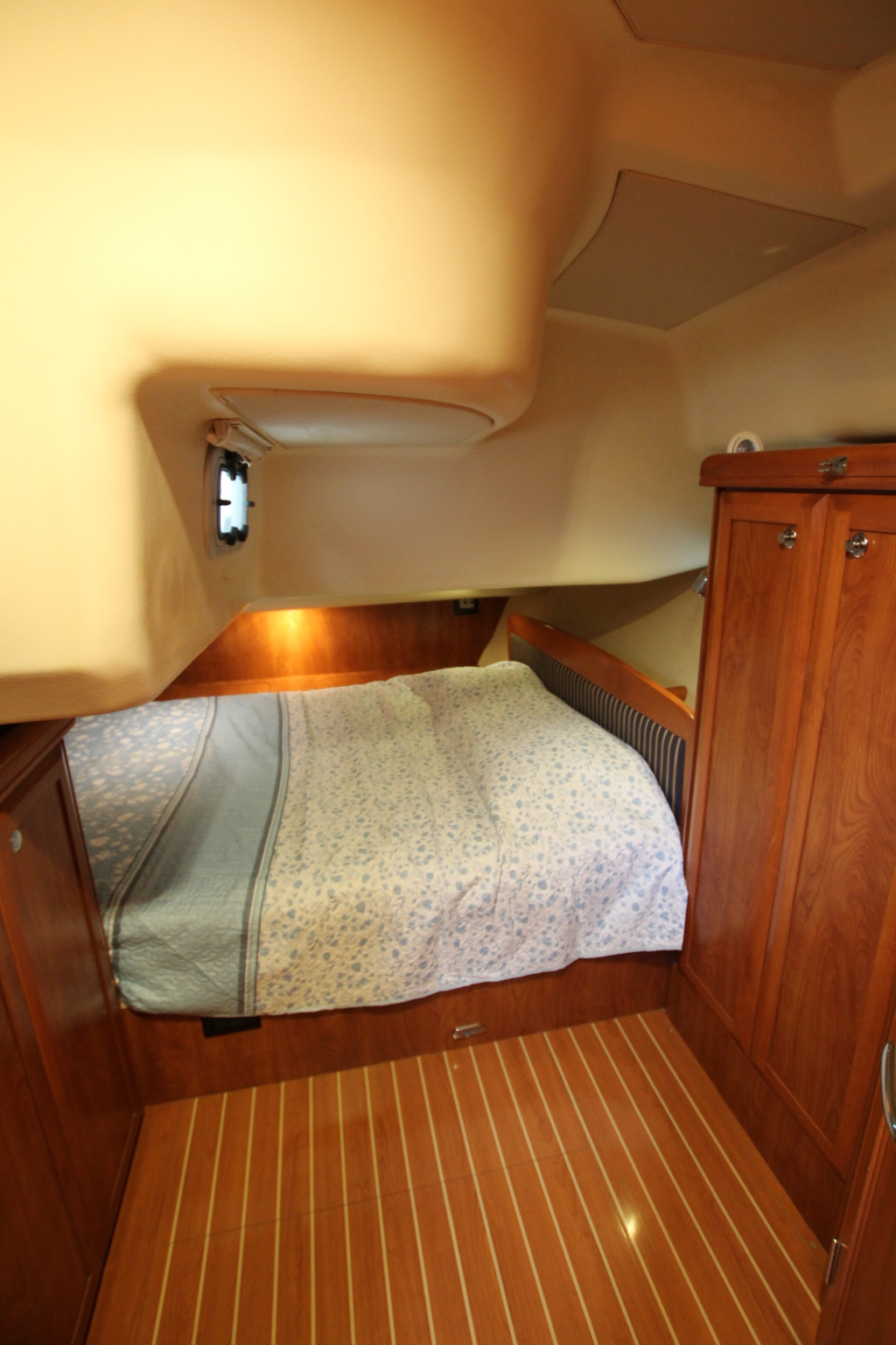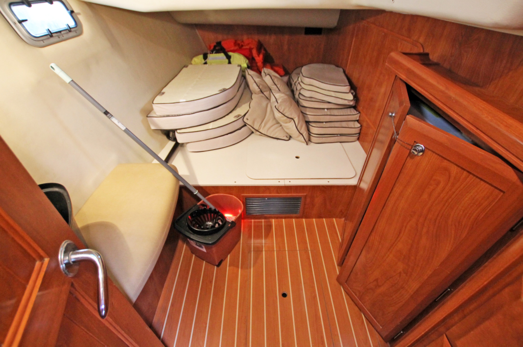 Screens for port holes and hatches: Mosquito screens as well as cloth sun screens for windows. Roof hatches fitted with rolling type Oceanair screens with mesh and solid. Storage: Lots and lots of space. Cupboards, Drawers, in Bilges, Lockers in cockpit and aft. 18 ceiling lights, 7 reading lights. Cockpit lights, mast LED deck light.