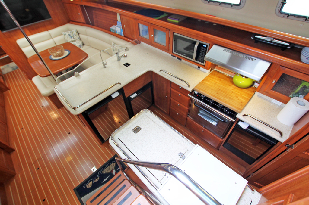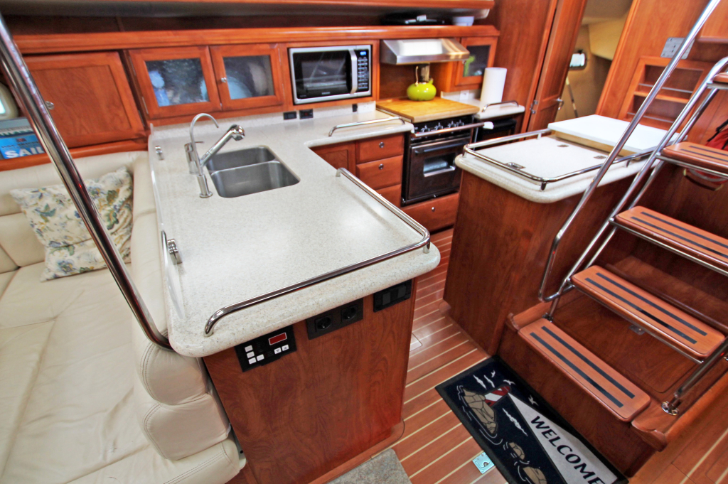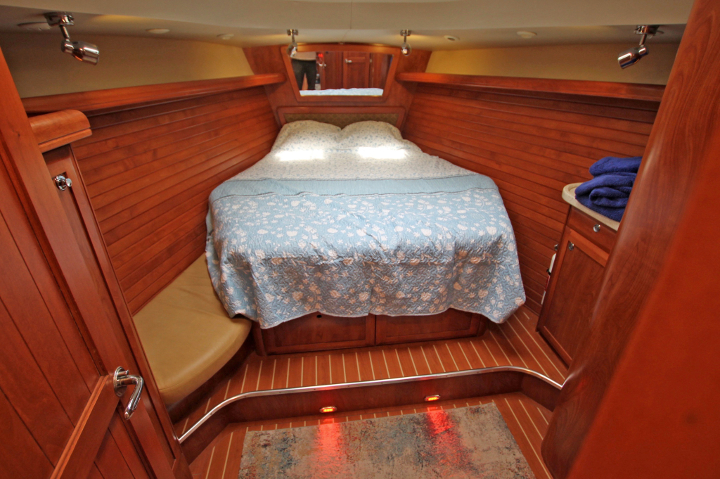Hunter Yachts USA stands for high quality construction with reinforced fibreglass and spacious and innovative interior design. This example comes with the standard 3 cabin owner version, with lots of space and privacy in bow cabin (with almost new Flexima matress), 1 big double guest cabin (with almost new Flexima matress), 1 small guest cabin and 1 dinette in the saloon. 2 Fridge/freezers, washer/dryer, electric toilets, 43” Flatscreen TV with Bose surround system and lots of storage room makes living aboard highly comfortable.