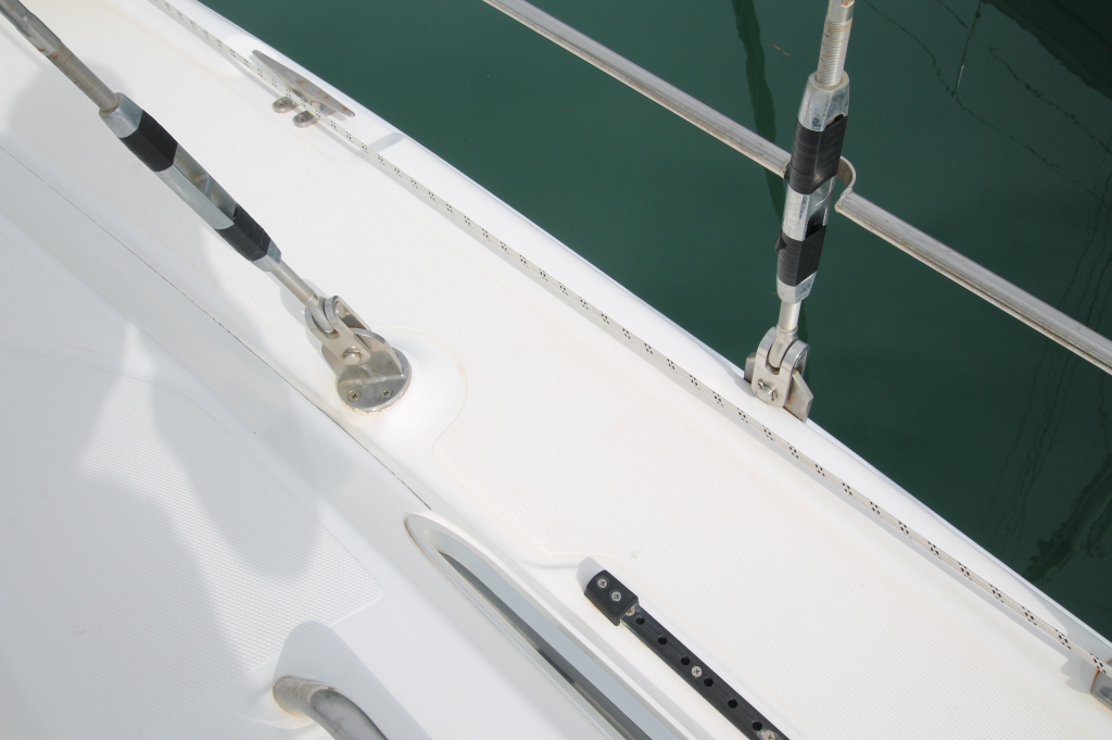 1x FastFind 210 GPS (packed inside Liferaft) – condition unkown. 1x VHF ICom Hand held radio’s IC-M23. 1x Ditch bag/Gear bag. 4x Smoke & Carbon Monoxide Detector: One in each cabin and saloon, new in 2022 with 10 year batteries. Lifelines: 2x 15m. Throw rope: 15 meter. Personal Flotation Devices: 2 Westmarine Offshore automatic PFD’s with tethers