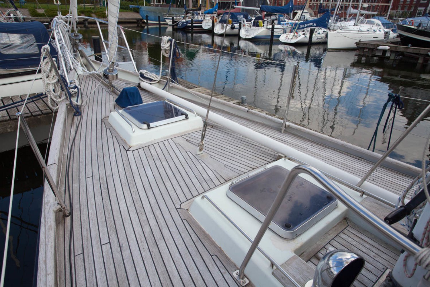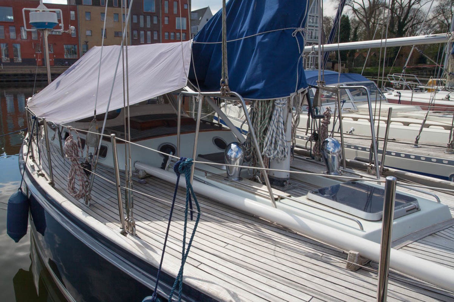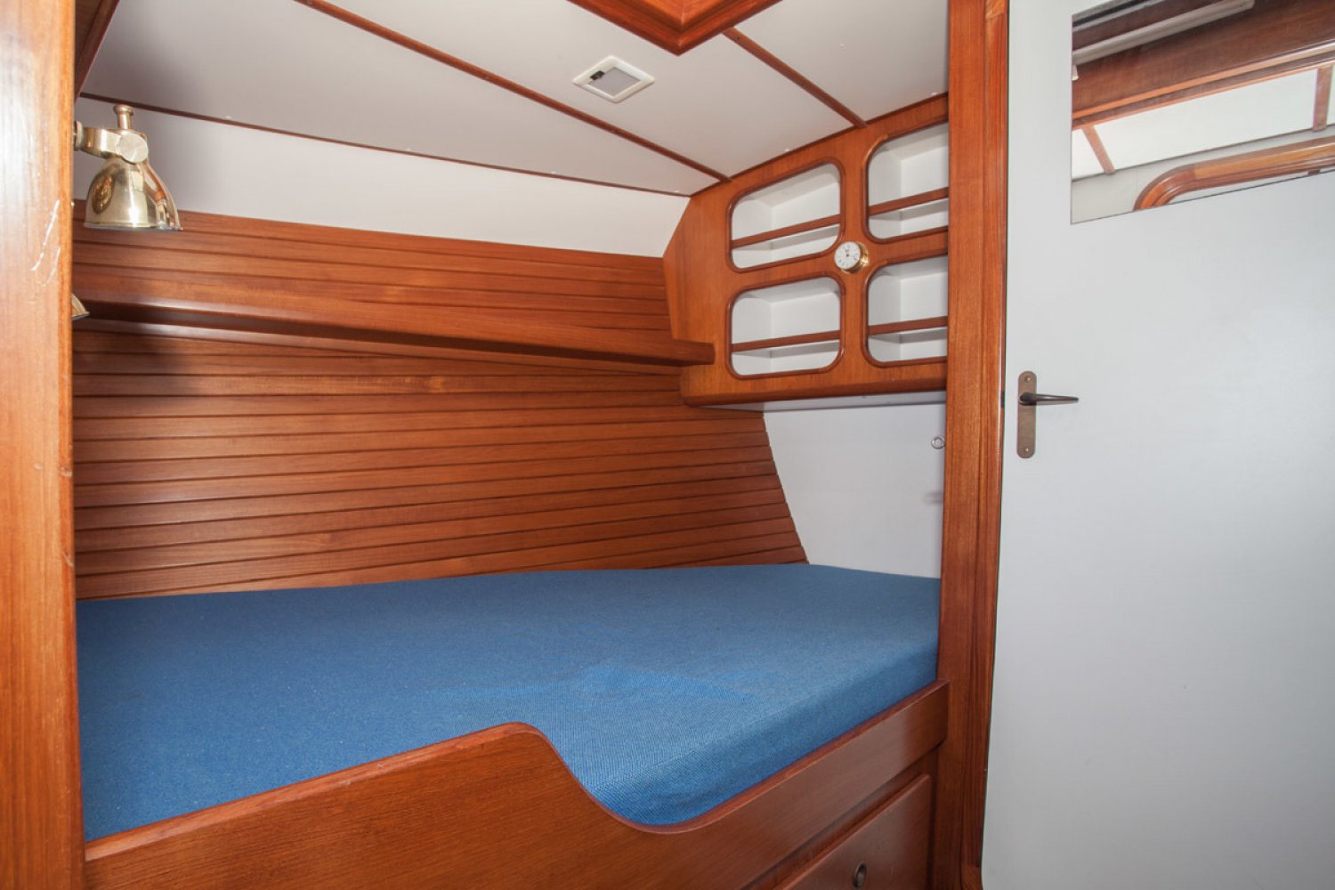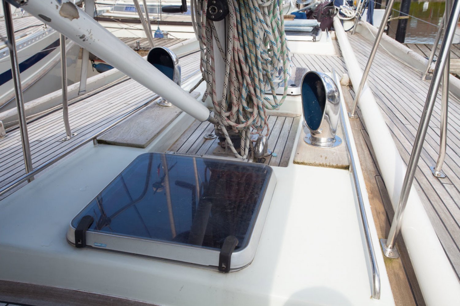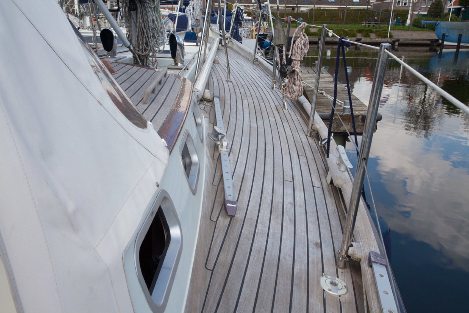 De Hutting 40 is een stoer jacht, geschikt voor lange reizen. Het ontwerp van D. Koopmans wordt gekenmerkt door een lange en betrekkelijk smalle romp met een S-spant. De boot is kotter getuigd en goed in stappen te reven zodat elke storm kan worden doorstaan. Winter 2013/2014 heeft de eigenaar fiks geïnvesteerd en de boot is weer helemaal klaar voor lange reizen. De boot is voor de ervaren zeiler vrij eenvoudig short-handend te varen. De kuip biedt goede beschutting, en navigeren gebeurt voornamelijk binnen bij de kaarten tafel. De navigatie apparatuur is geheel vernieuwd in 2014. Het interieur is netjes uit zijdeglans teak en kunststof platen vervaardigd. De stoffering is in 2013 geheel vernieuwd. De Mercedes scheepsdiesel heeft flink wat motoruren maar kan er na de grondige refit uitgevoerd in 2014 weer jaren tegenaan. Groot voordeel van dit merk is dat zowel onderdelen als kennis over de hele wereld voor handen zijn. De tanks voor diesel, water en vuilwater zijn in de constructie geïntegreerd met grote inspectieluiken. Voor wie een degelijk stalen jacht zoekt is deze Hutting 40 een goede keuze. Bent u geïnteresseerd, en wilt u de boot bezichtigen, maakt u dan een afspraak via [email protected]. Uw jachtmakelaar is Robert de Vries,+31(0)6 5020 1336.