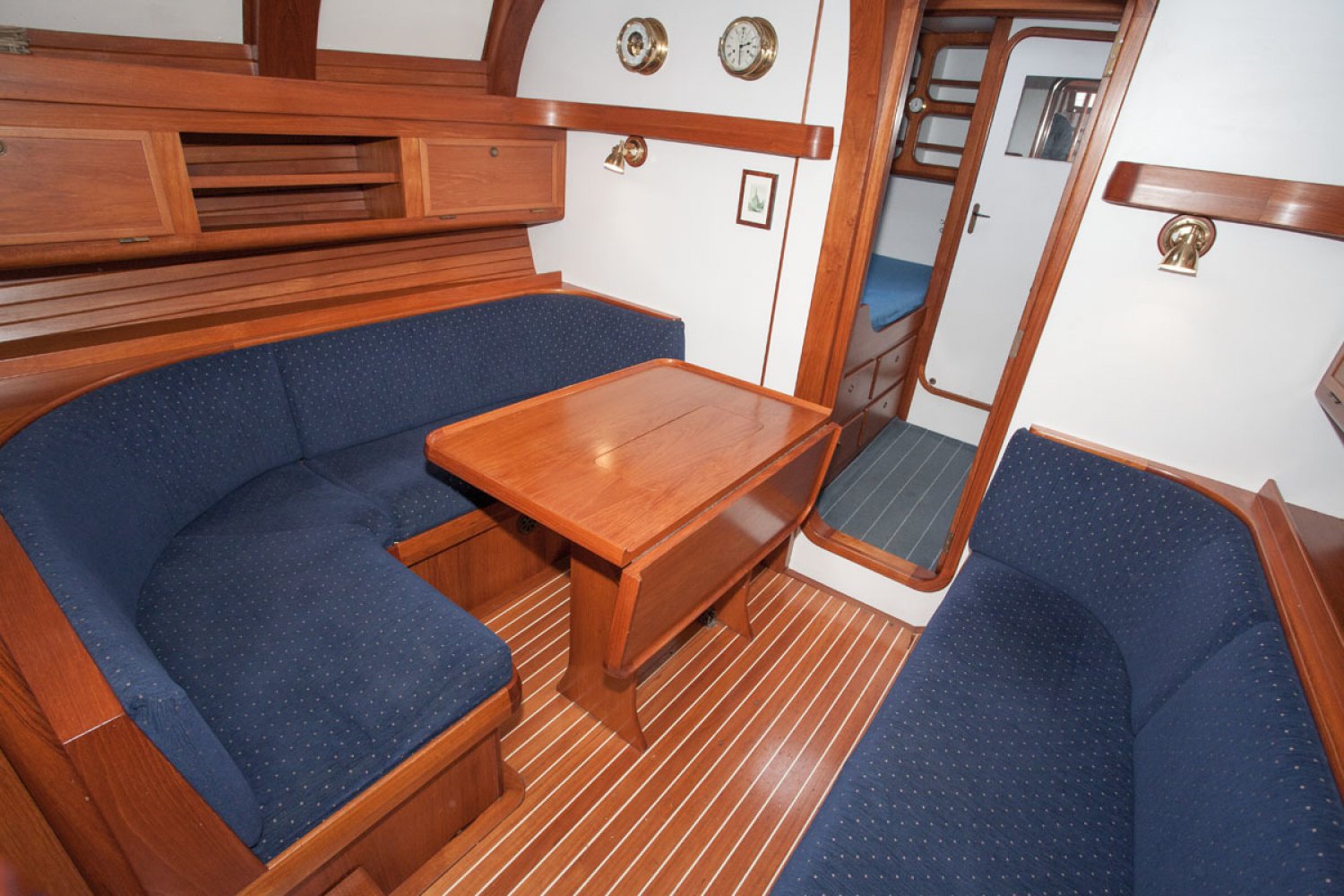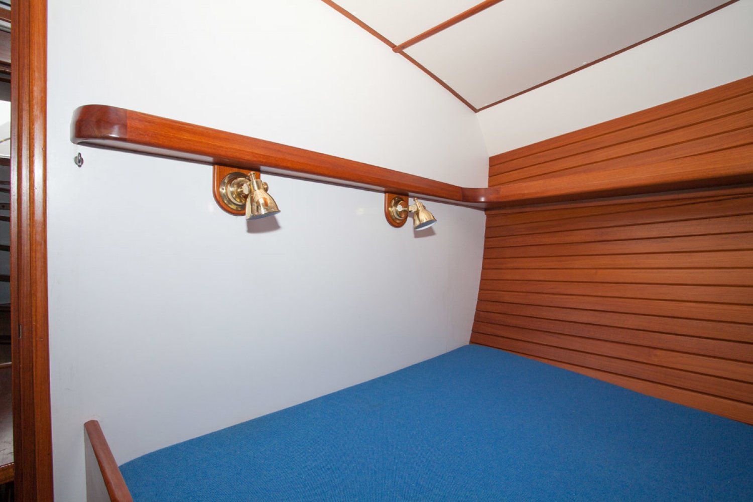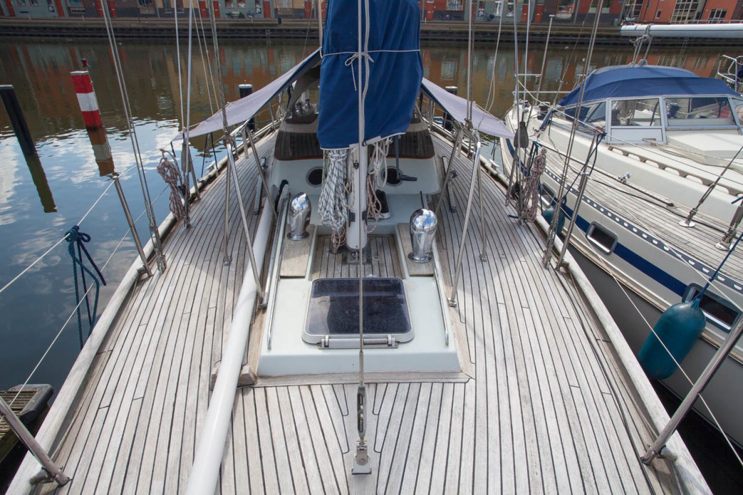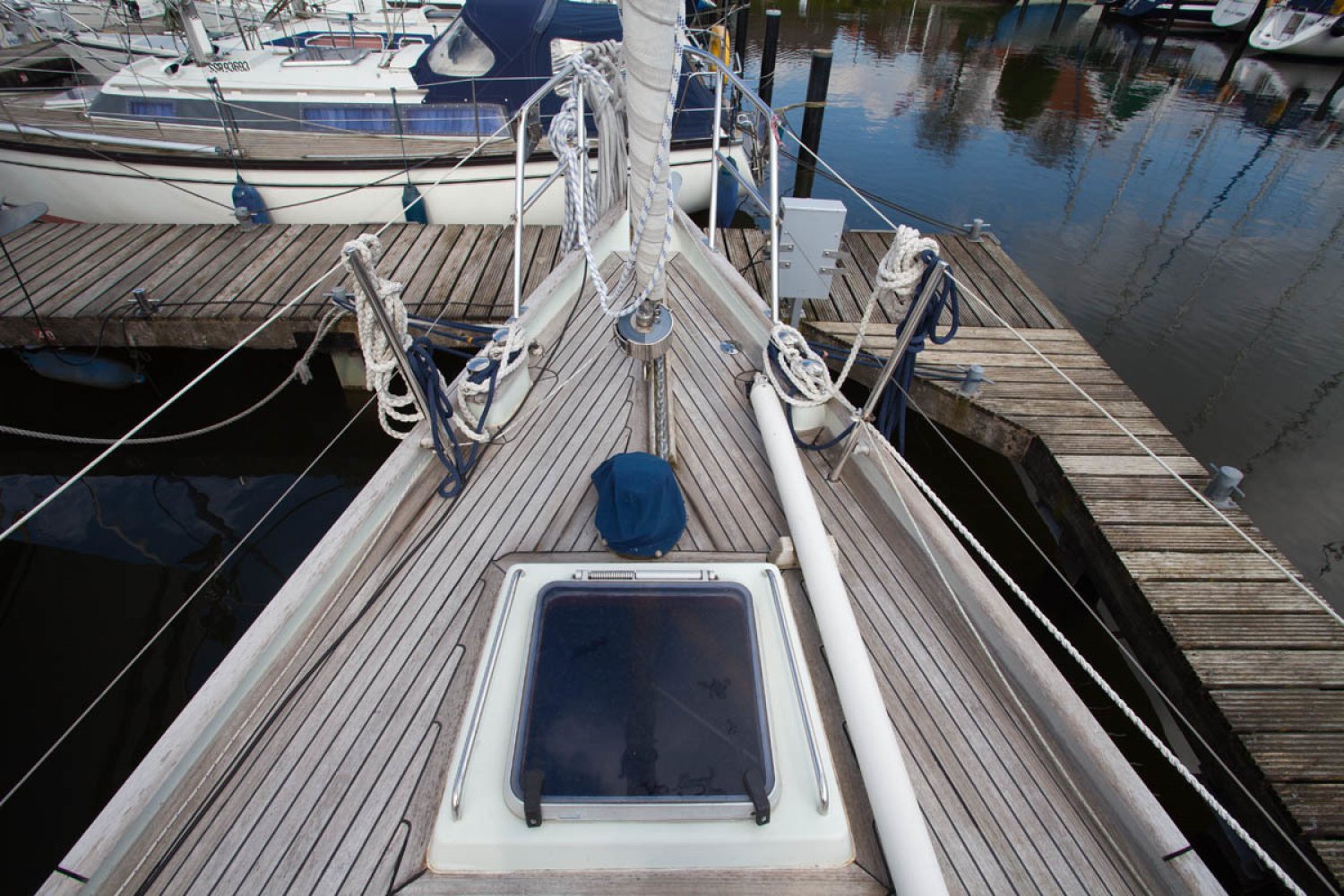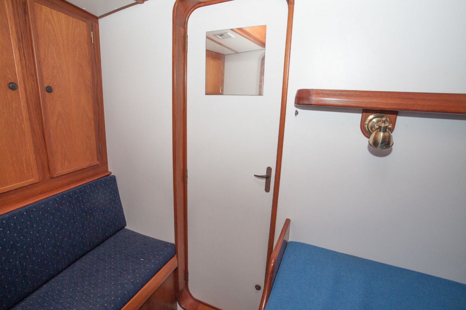 De Hutting 40 is een stoer jacht, geschikt voor lange reizen. Het ontwerp van D. Koopmans wordt gekenmerkt door een lange en betrekkelijk smalle romp met een S-spant. De boot is kotter getuigd en goed in stappen te reven zodat elke storm kan worden doorstaan. Winter 2013/2014 heeft de eigenaar fiks geïnvesteerd en de boot is weer helemaal klaar voor lange reizen. De boot is voor de ervaren zeiler vrij eenvoudig short-handend te varen. De kuip biedt goede beschutting, en navigeren gebeurt voornamelijk binnen bij de kaarten tafel. De navigatie apparatuur is geheel vernieuwd in 2014. Het interieur is netjes uit zijdeglans teak en kunststof platen vervaardigd. De stoffering is in 2013 geheel vernieuwd. De Mercedes scheepsdiesel heeft flink wat motoruren maar kan er na de grondige refit uitgevoerd in 2014 weer jaren tegenaan. Groot voordeel van dit merk is dat zowel onderdelen als kennis over de hele wereld voor handen zijn. De tanks voor diesel, water en vuilwater zijn in de constructie geïntegreerd met grote inspectieluiken. Voor wie een degelijk stalen jacht zoekt is deze Hutting 40 een goede keuze. Bent u geïnteresseerd, en wilt u de boot bezichtigen, maakt u dan een afspraak via [email protected]. Uw jachtmakelaar is Robert de Vries,+31(0)6 5020 1336.