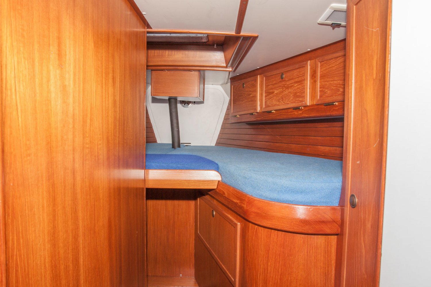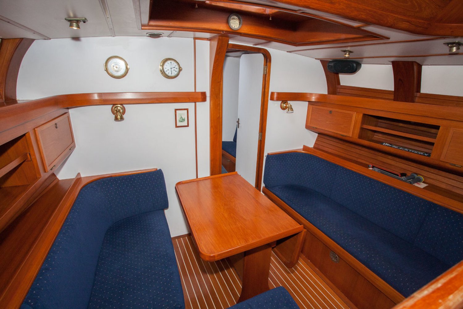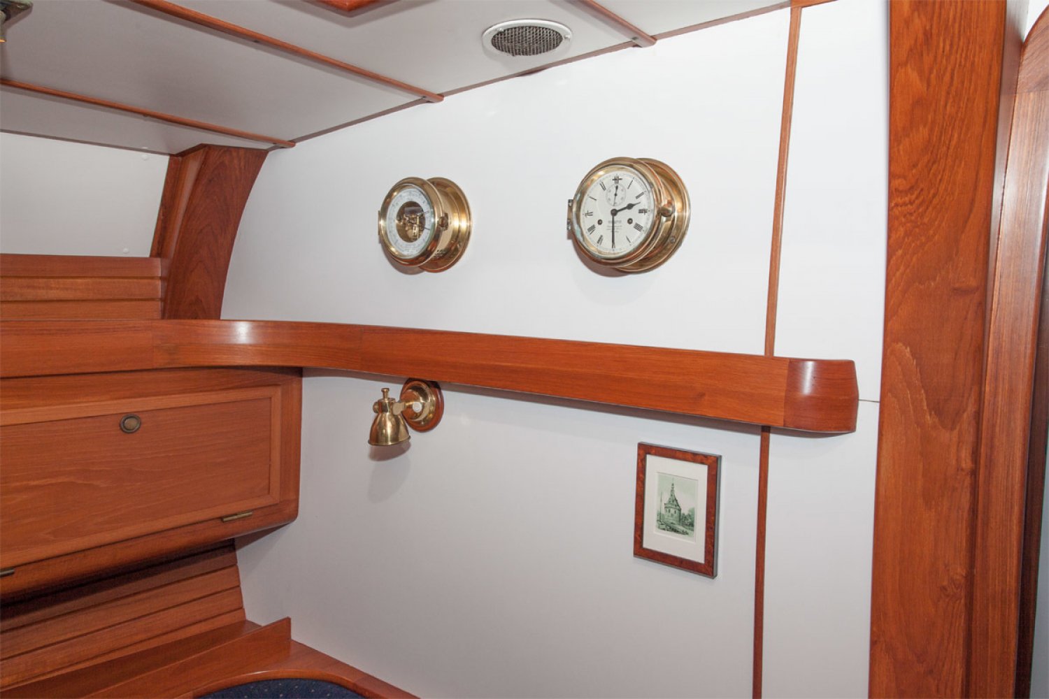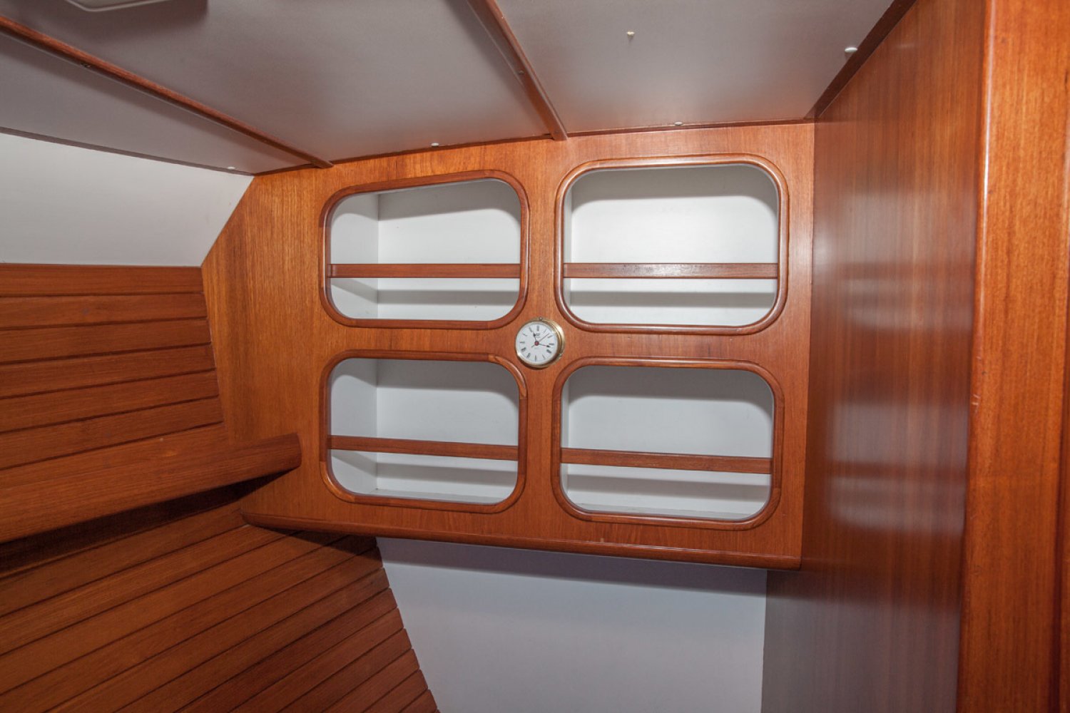 De Hutting 40 is een stoer jacht, geschikt voor lange reizen. Het ontwerp van D. Koopmans wordt gekenmerkt door een lange en betrekkelijk smalle romp met een S-spant. De boot is kotter getuigd en goed in stappen te reven zodat elke storm kan worden doorstaan. Winter 2013/2014 heeft de eigenaar fiks geïnvesteerd en de boot is weer helemaal klaar voor lange reizen. De boot is voor de ervaren zeiler vrij eenvoudig short-handend te varen. De kuip biedt goede beschutting, en navigeren gebeurt voornamelijk binnen bij de kaarten tafel. De navigatie apparatuur is geheel vernieuwd in 2014. Het interieur is netjes uit zijdeglans teak en kunststof platen vervaardigd. De stoffering is in 2013 geheel vernieuwd. De Mercedes scheepsdiesel heeft flink wat motoruren maar kan er na de grondige refit uitgevoerd in 2014 weer jaren tegenaan. Groot voordeel van dit merk is dat zowel onderdelen als kennis over de hele wereld voor handen zijn. De tanks voor diesel, water en vuilwater zijn in de constructie geïntegreerd met grote inspectieluiken. Voor wie een degelijk stalen jacht zoekt is deze Hutting 40 een goede keuze. Bent u geïnteresseerd, en wilt u de boot bezichtigen, maakt u dan een afspraak via [email protected]. Uw jachtmakelaar is Robert de Vries,+31(0)6 5020 1336.