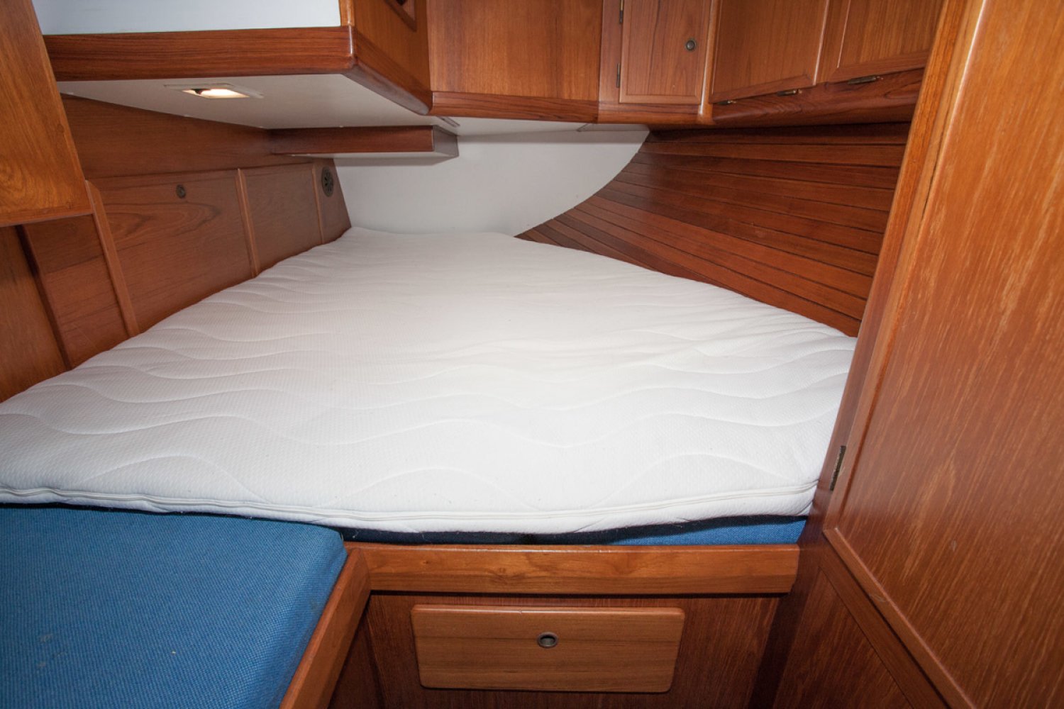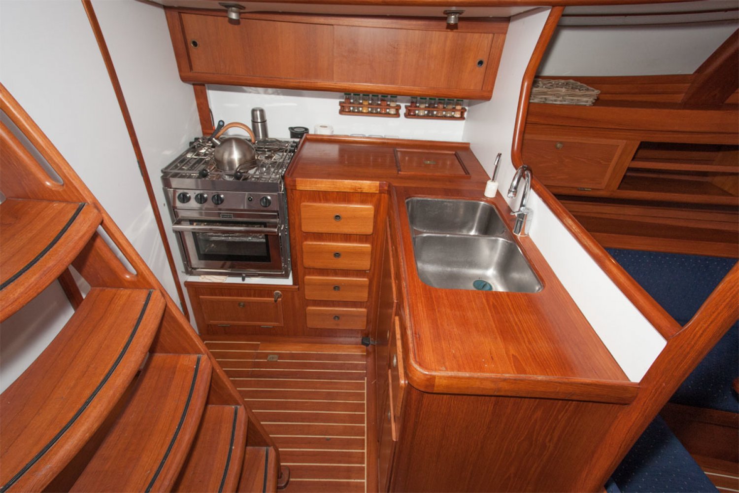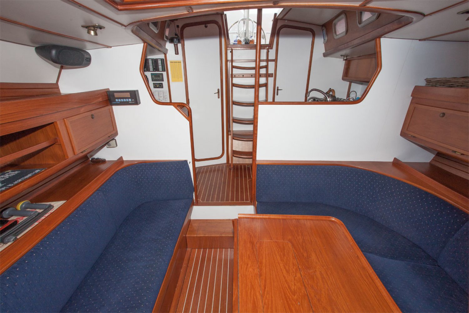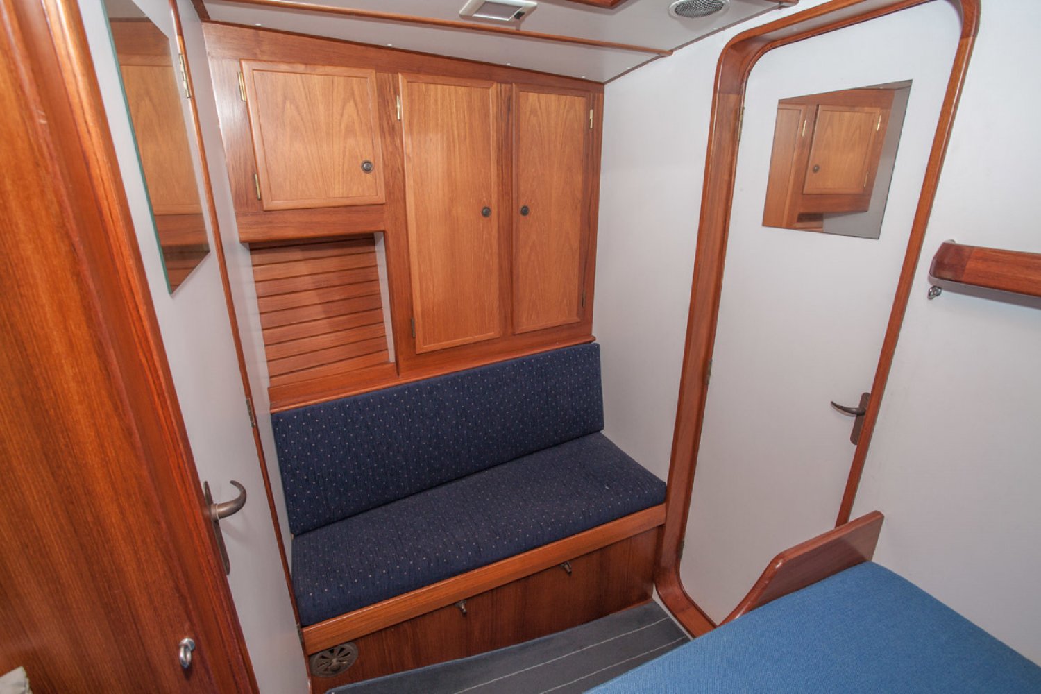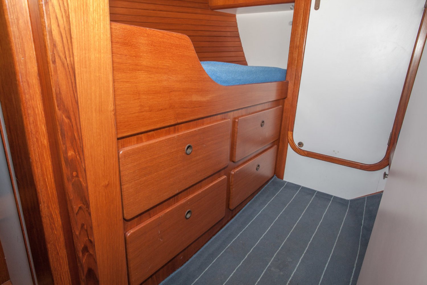 De Hutting 40 is een stoer jacht, geschikt voor lange reizen. Het ontwerp van D. Koopmans wordt gekenmerkt door een lange en betrekkelijk smalle romp met een S-spant. De boot is kotter getuigd en goed in stappen te reven zodat elke storm kan worden doorstaan. Winter 2013/2014 heeft de eigenaar fiks geïnvesteerd en de boot is weer helemaal klaar voor lange reizen. De boot is voor de ervaren zeiler vrij eenvoudig short-handend te varen. De kuip biedt goede beschutting, en navigeren gebeurt voornamelijk binnen bij de kaarten tafel. De navigatie apparatuur is geheel vernieuwd in 2014. Het interieur is netjes uit zijdeglans teak en kunststof platen vervaardigd. De stoffering is in 2013 geheel vernieuwd. De Mercedes scheepsdiesel heeft flink wat motoruren maar kan er na de grondige refit uitgevoerd in 2014 weer jaren tegenaan. Groot voordeel van dit merk is dat zowel onderdelen als kennis over de hele wereld voor handen zijn. De tanks voor diesel, water en vuilwater zijn in de constructie geïntegreerd met grote inspectieluiken. Voor wie een degelijk stalen jacht zoekt is deze Hutting 40 een goede keuze. Bent u geïnteresseerd, en wilt u de boot bezichtigen, maakt u dan een afspraak via [email protected]. Uw jachtmakelaar is Robert de Vries,+31(0)6 5020 1336.