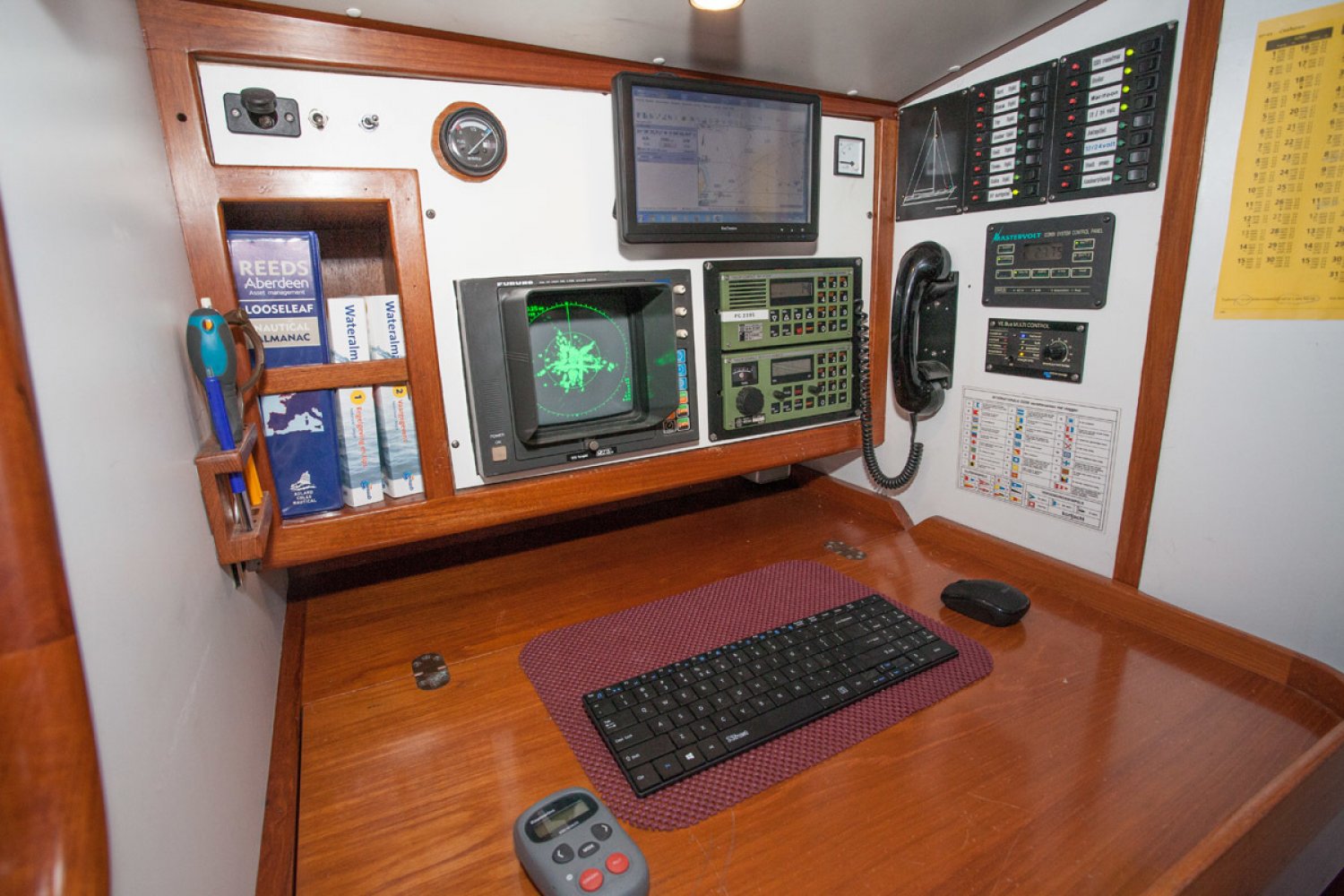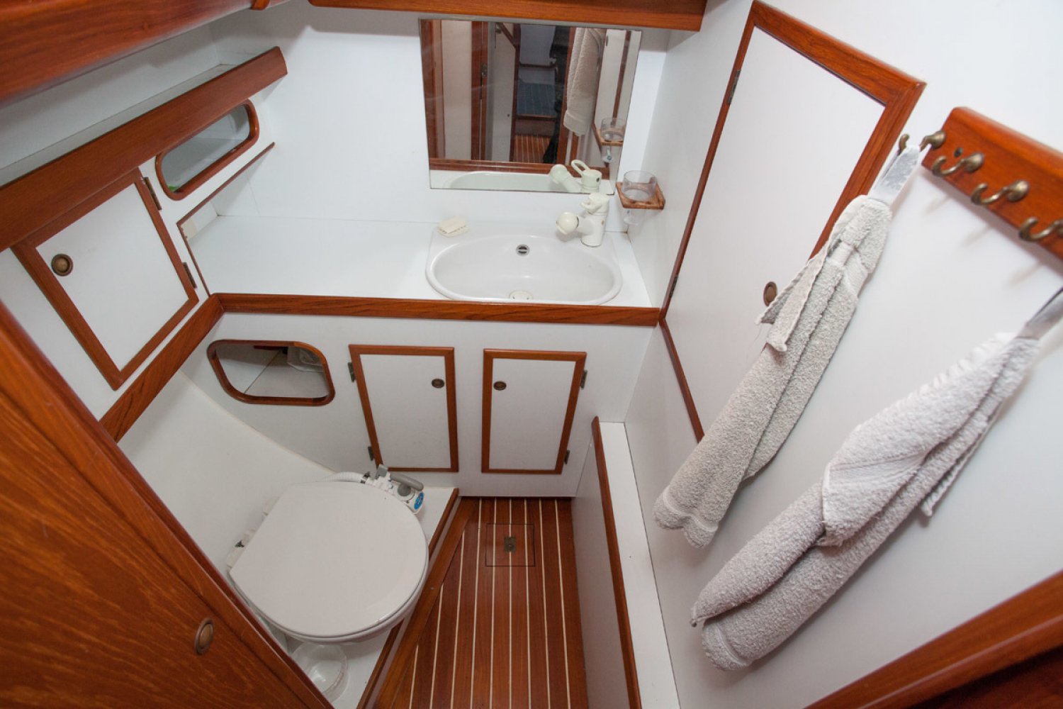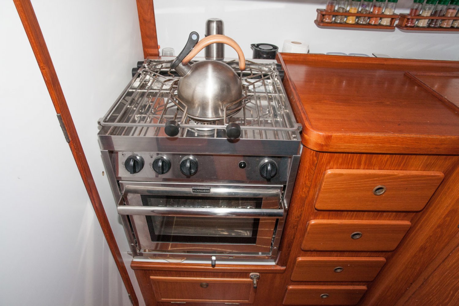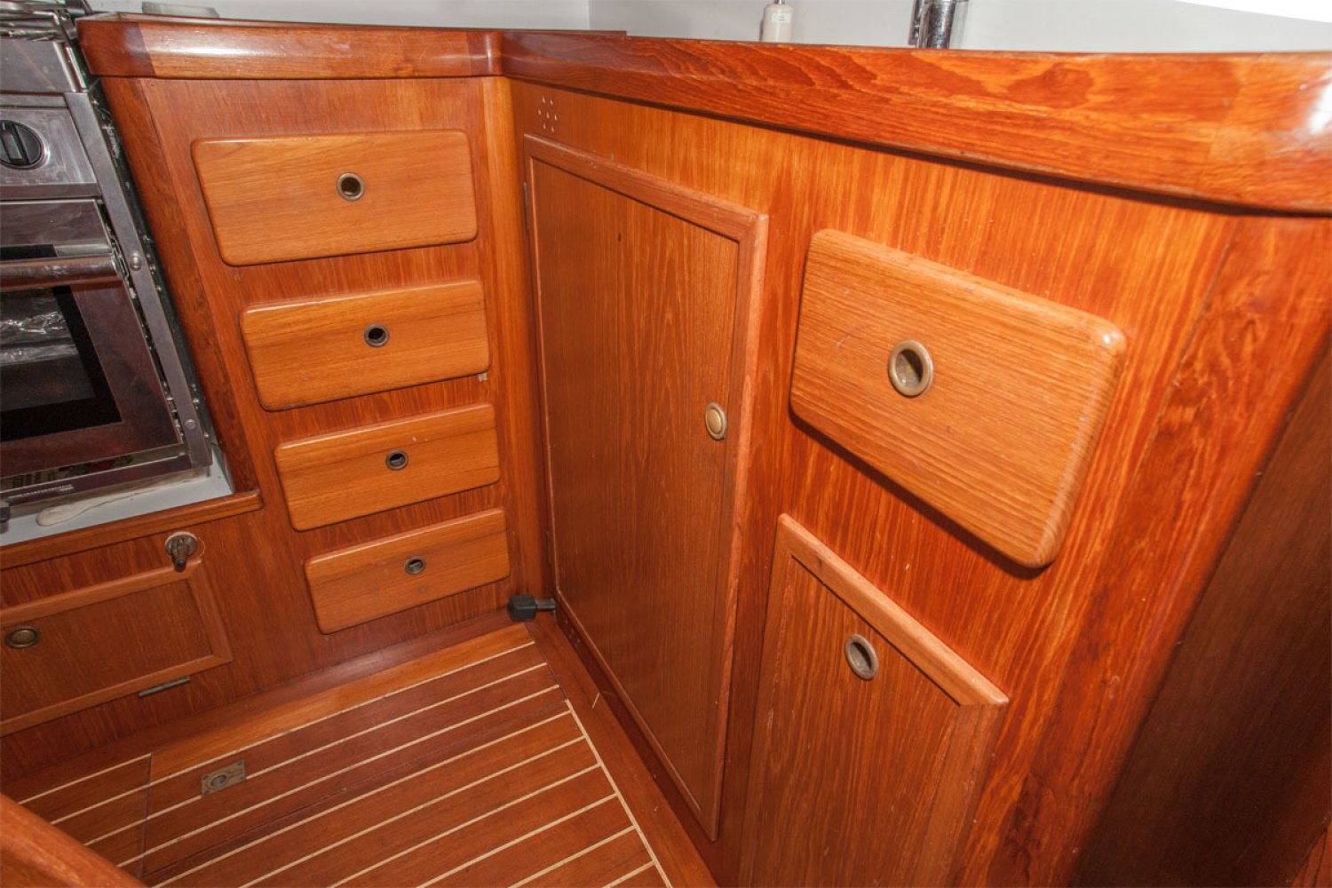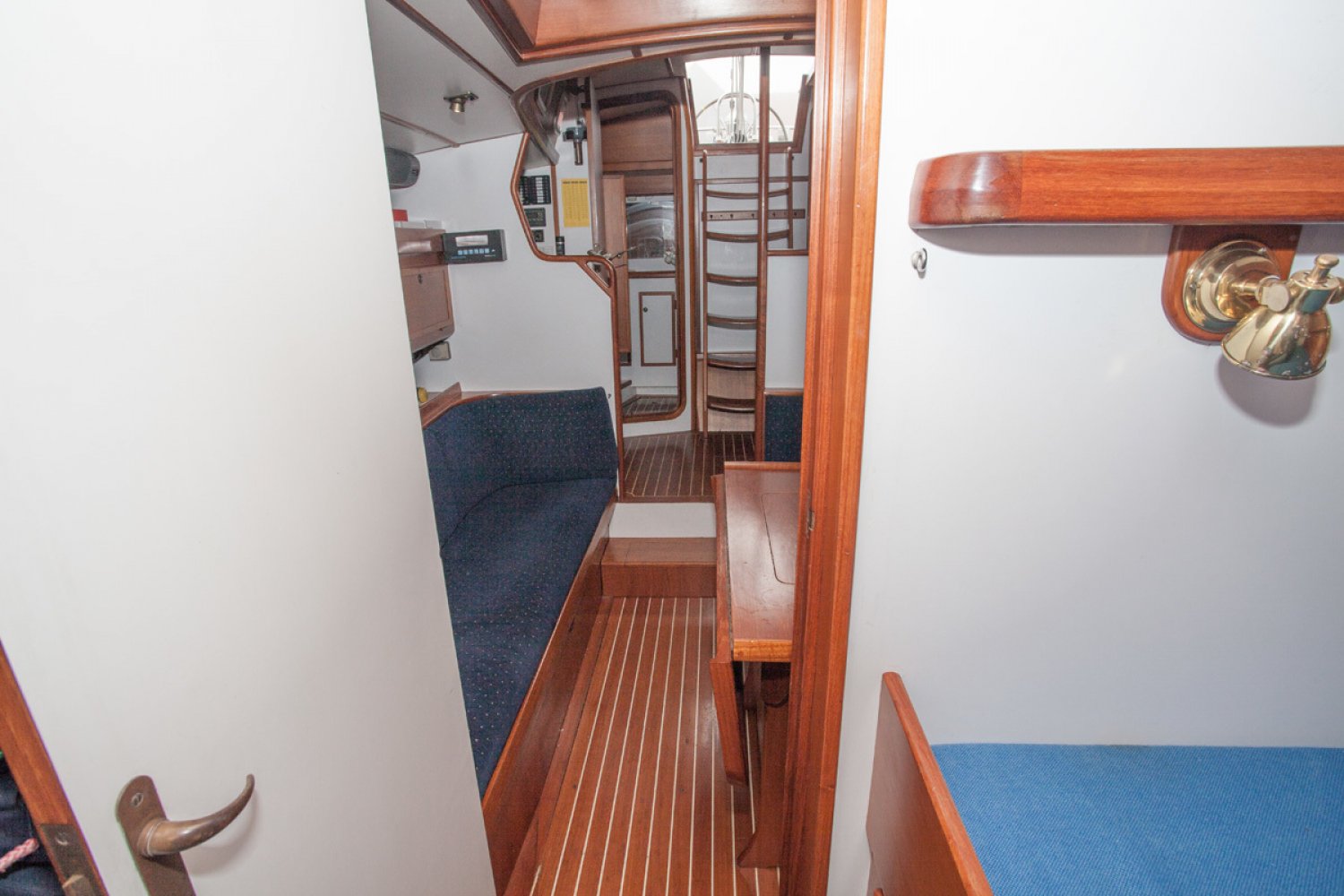 De Hutting 40 is een stoer jacht, geschikt voor lange reizen. Het ontwerp van D. Koopmans wordt gekenmerkt door een lange en betrekkelijk smalle romp met een S-spant. De boot is kotter getuigd en goed in stappen te reven zodat elke storm kan worden doorstaan. Winter 2013/2014 heeft de eigenaar fiks geïnvesteerd en de boot is weer helemaal klaar voor lange reizen. De boot is voor de ervaren zeiler vrij eenvoudig short-handend te varen. De kuip biedt goede beschutting, en navigeren gebeurt voornamelijk binnen bij de kaarten tafel. De navigatie apparatuur is geheel vernieuwd in 2014. Het interieur is netjes uit zijdeglans teak en kunststof platen vervaardigd. De stoffering is in 2013 geheel vernieuwd. De Mercedes scheepsdiesel heeft flink wat motoruren maar kan er na de grondige refit uitgevoerd in 2014 weer jaren tegenaan. Groot voordeel van dit merk is dat zowel onderdelen als kennis over de hele wereld voor handen zijn. De tanks voor diesel, water en vuilwater zijn in de constructie geïntegreerd met grote inspectieluiken. Voor wie een degelijk stalen jacht zoekt is deze Hutting 40 een goede keuze. Bent u geïnteresseerd, en wilt u de boot bezichtigen, maakt u dan een afspraak via [email protected]. Uw jachtmakelaar is Robert de Vries,+31(0)6 5020 1336.