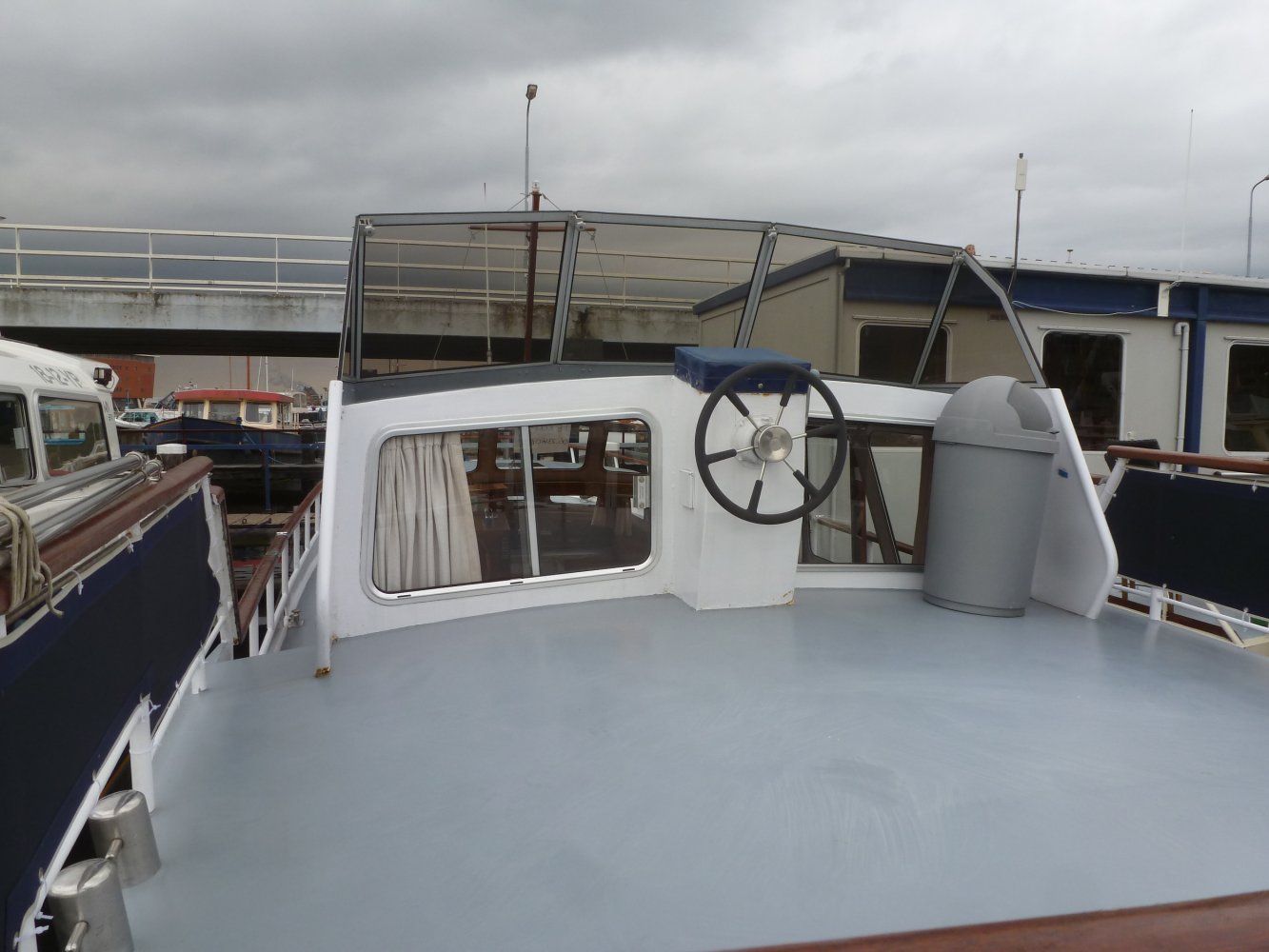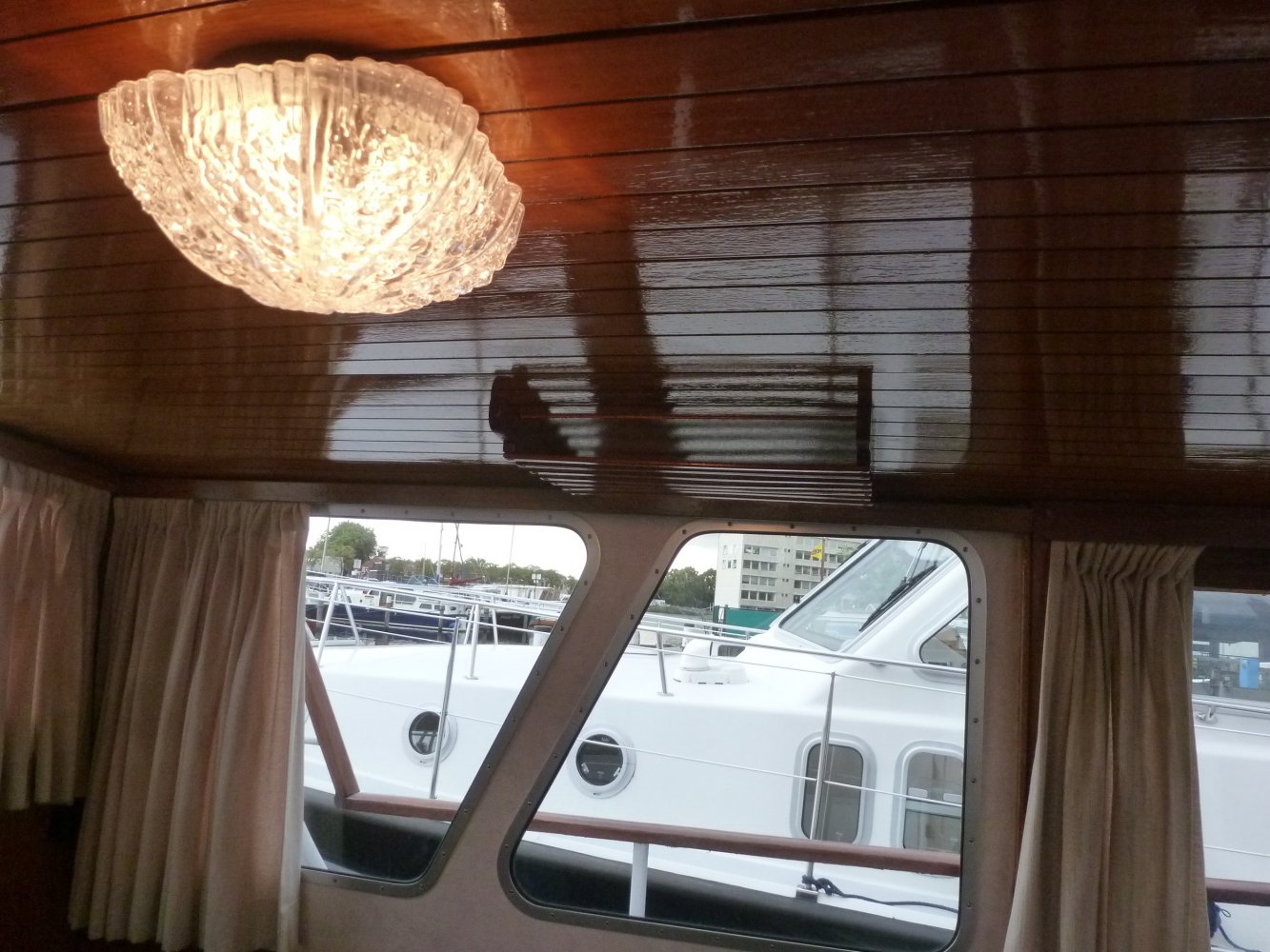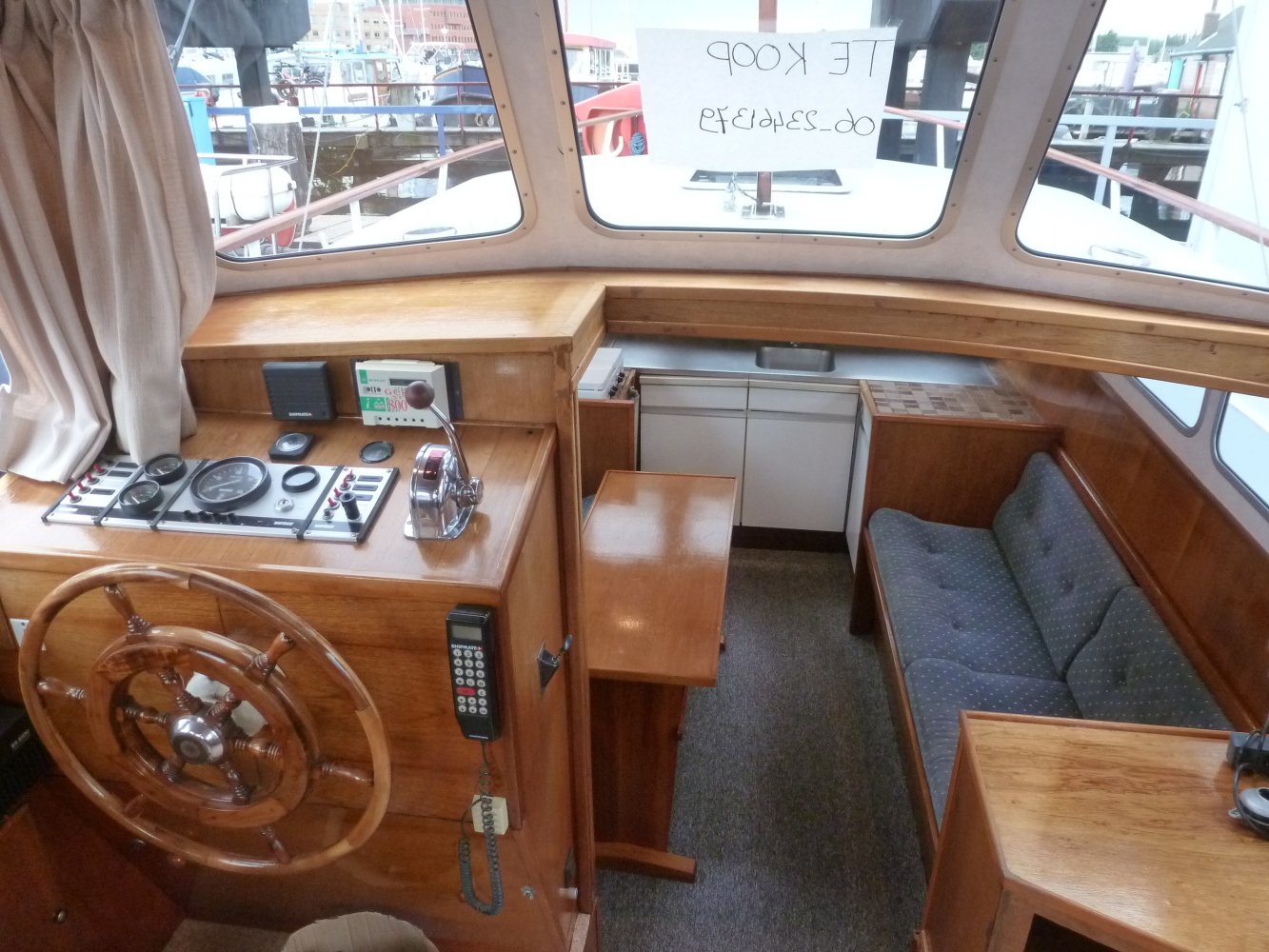 Vanaf de boven stuurstand heeft u een heerlijk overzicht over het gehele schip en voelt u zich de koning van het meer. De krachtige Vetus boegschroef werkt perfect en het is tijdens het aan en afmeren kinderspel om uw schip te besturen. De binnen stuurstand is voorzien van een heel mooi luxe en professioneel houten stuur en marifoonhoorn.
