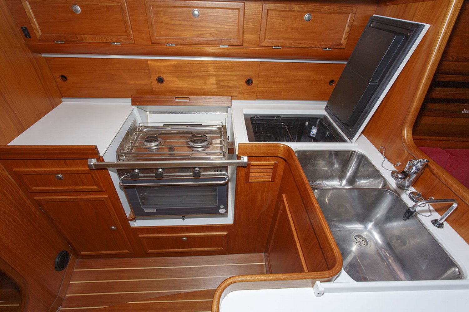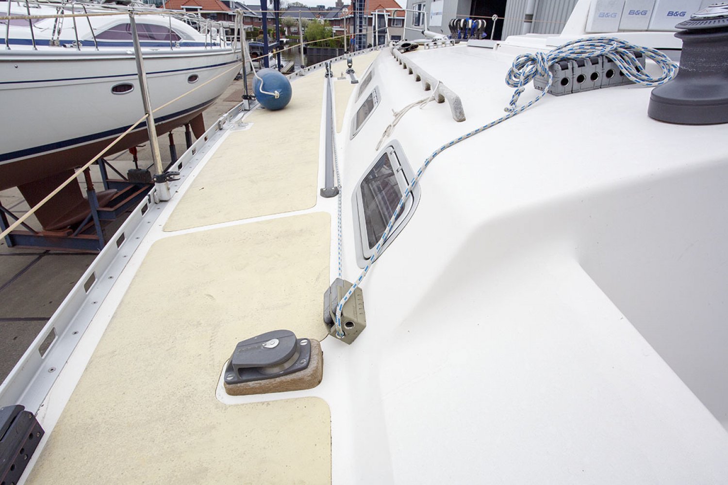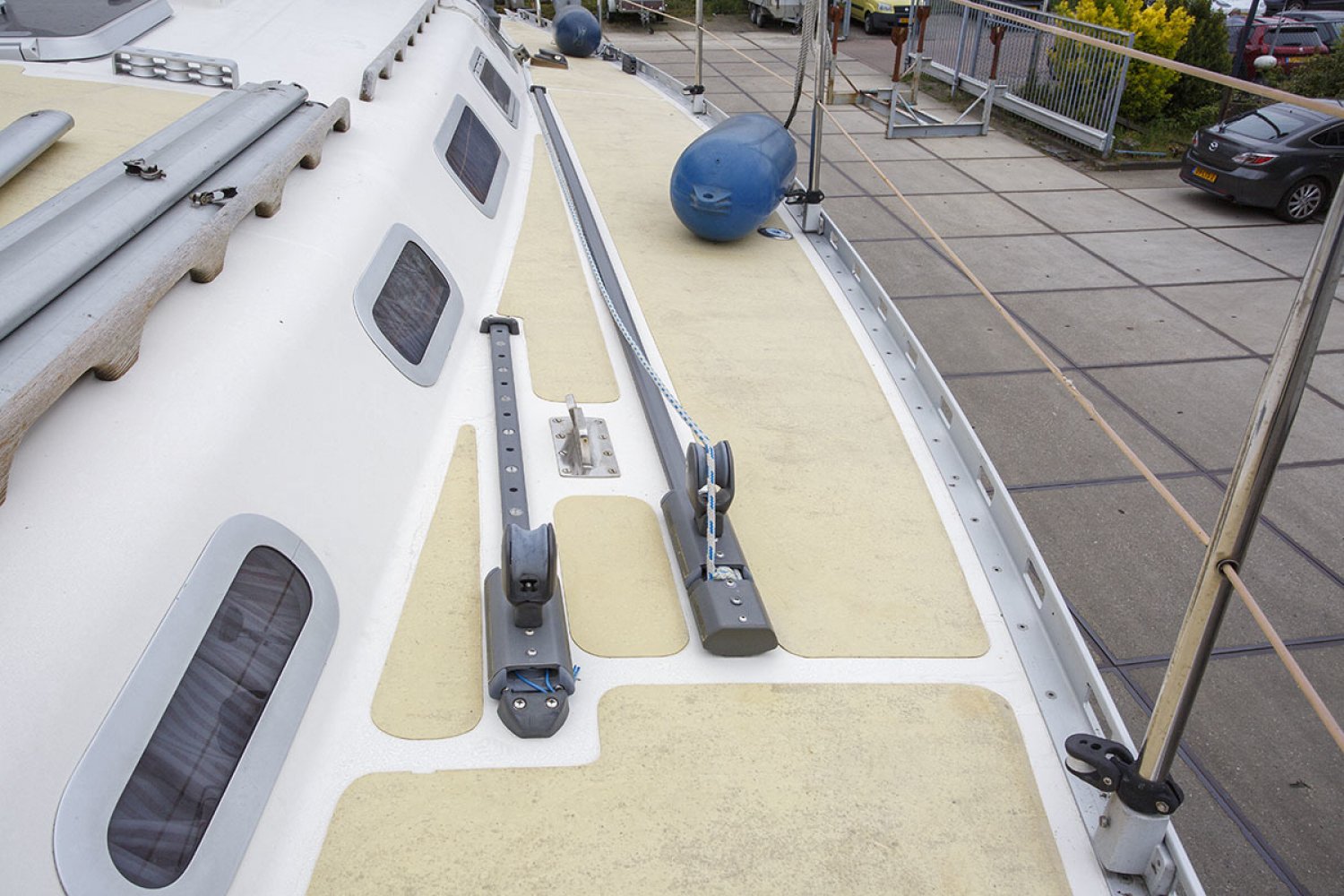 De Spirit 41 die wij u namens de 1e eigenaar aanbieden is een snel en zeewaardig jacht, ontworpen door de Ridder en gebouwd bij van Heijgen in Boom, België. Deze Spirit 41 is een fraai en zeewaardige jacht. Het dek is voorzien van antislip matten en is overal goed begaanbaar . Een degelijke en praktische tuigage maakt haar hanteerbaar voor kleine bemanningen. Er is een zeer uitgebreide zeilgarderobe bestaande uit een set toerzeilen (4), nog in goede staat en een set wedstrijdzeilen(6) die nauwelijks zijn gebruikt. De kuip is ruim en bied een beschutte plaats aan een grote bemanning. Binnen ademt de salon een gezellige sfeer, het met teak afgetimmerde interieur is ruim en licht en er is voldoende stahoogte. Door de grote dekluiken en ramen komt veel daglicht naar binnen. De 2 langsbanken en uitklapbare salontafell biedt plaats aan een groot gezelschap. Aan bakboord is een L-vormige kombuis met dubbele spoelbak, oven en koelkast. Er is veel bergruimte voor proviand. Aan stuurboord treft u de navigatiehoek met de benodigde apparatuur. Er zijn 3 hutten, een grote hut in de boeg en 2 hutten in het achterschip. Aan stuurboord is een natte cel met toilet en wastafel.  De 55 pk sterke VolvoPenta motor is zeer goed geisoleerd en rondom goed bereikbaar voor service. Deze Spirit 41 is zeer geschikt voor lange reizen op groot open water. Doordat de boot zo stevig is gebouwd vaart zij ook in zwaar weer uiterst comfortabel. De jachten van het merk Spirit staan bekend als snelle en zeer goed zeilende toer/wedstrijd-jachten. De bemiddeling verloopt via kantoor White Whale Yachtbrokers Enkhuizen. Heeft u belangstelling neem dan contact op via [email protected] of +31(0)228 855 380 voor meer informatie of het maken van een afspraak voor bezichtiging aan boord. Bezichtigingen zijn mogelijk van maandag t/m zaterdag, alleen op afspraak.