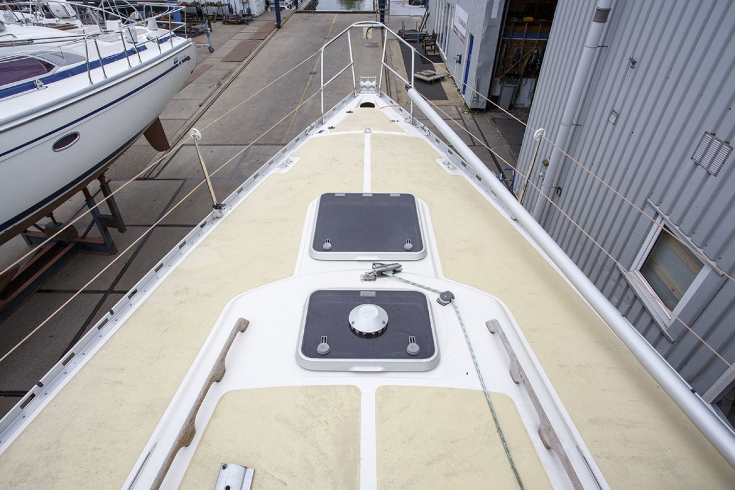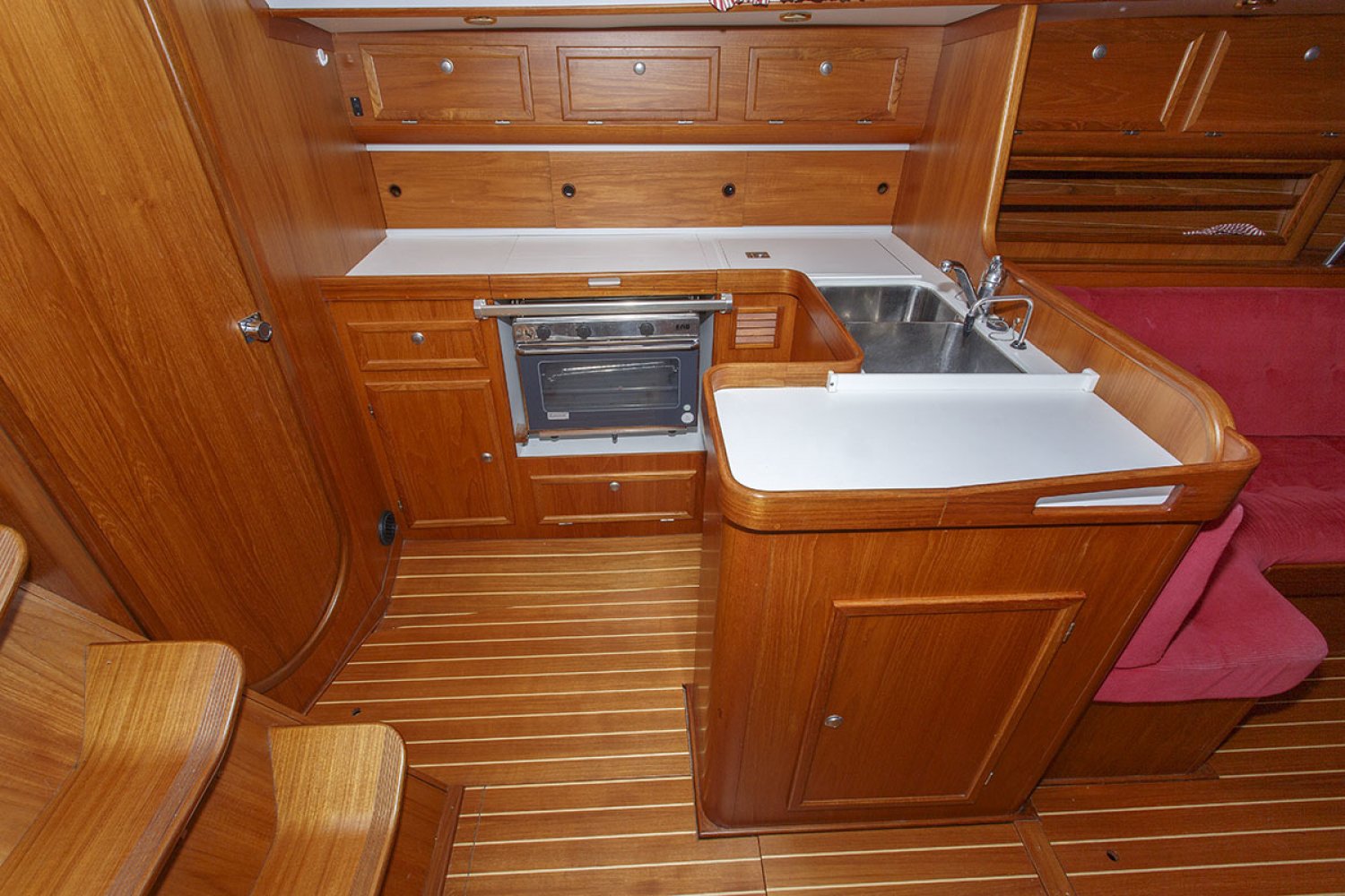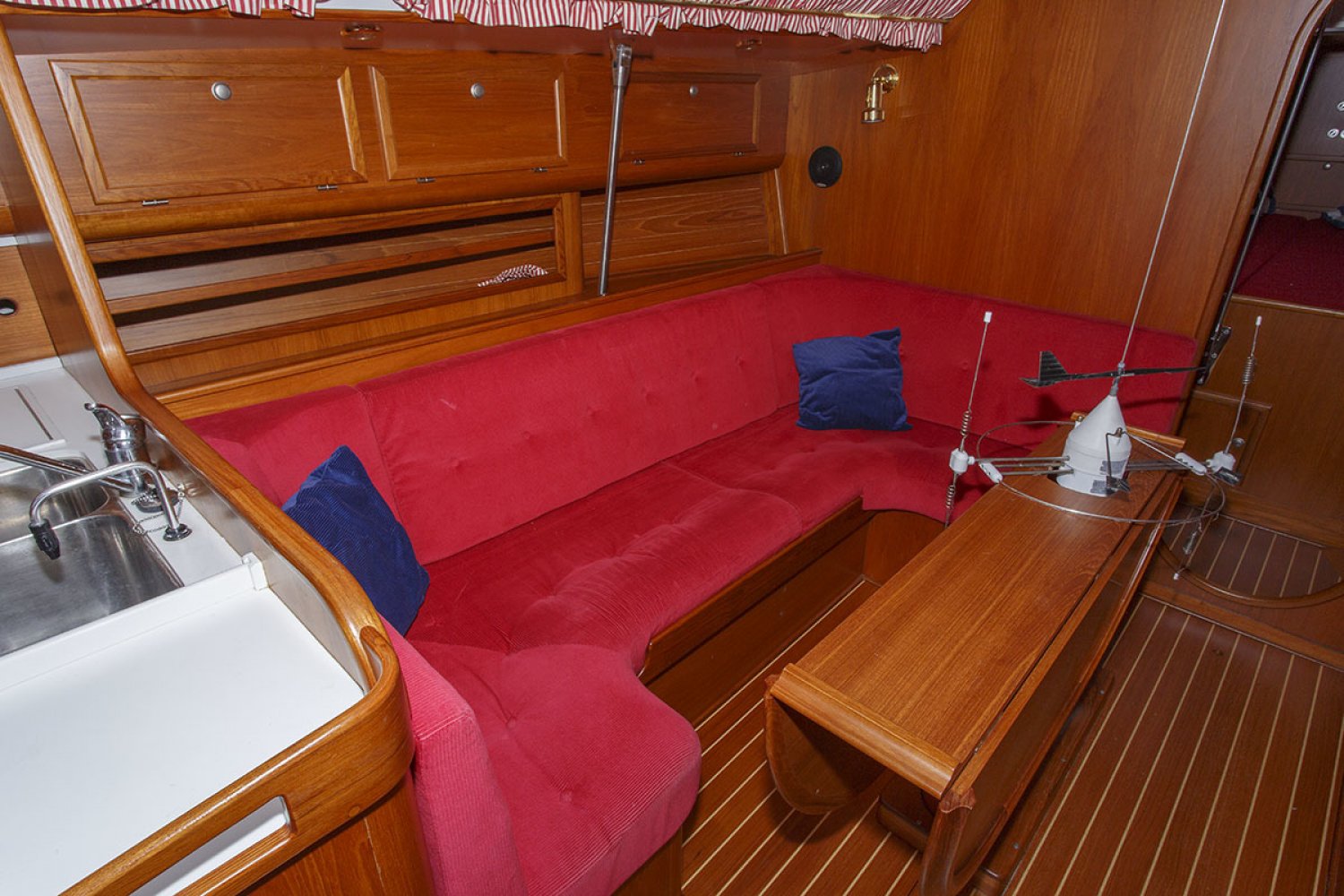 De Spirit 41 die wij u namens de 1e eigenaar aanbieden is een snel en zeewaardig jacht, ontworpen door de Ridder en gebouwd bij van Heijgen in Boom, België. Deze Spirit 41 is een fraai en zeewaardige jacht. Het dek is voorzien van antislip matten en is overal goed begaanbaar . Een degelijke en praktische tuigage maakt haar hanteerbaar voor kleine bemanningen. Er is een zeer uitgebreide zeilgarderobe bestaande uit een set toerzeilen (4), nog in goede staat en een set wedstrijdzeilen(6) die nauwelijks zijn gebruikt. De kuip is ruim en bied een beschutte plaats aan een grote bemanning. Binnen ademt de salon een gezellige sfeer, het met teak afgetimmerde interieur is ruim en licht en er is voldoende stahoogte. Door de grote dekluiken en ramen komt veel daglicht naar binnen. De 2 langsbanken en uitklapbare salontafell biedt plaats aan een groot gezelschap. Aan bakboord is een L-vormige kombuis met dubbele spoelbak, oven en koelkast. Er is veel bergruimte voor proviand. Aan stuurboord treft u de navigatiehoek met de benodigde apparatuur. Er zijn 3 hutten, een grote hut in de boeg en 2 hutten in het achterschip. Aan stuurboord is een natte cel met toilet en wastafel.  De 55 pk sterke VolvoPenta motor is zeer goed geisoleerd en rondom goed bereikbaar voor service. Deze Spirit 41 is zeer geschikt voor lange reizen op groot open water. Doordat de boot zo stevig is gebouwd vaart zij ook in zwaar weer uiterst comfortabel. De jachten van het merk Spirit staan bekend als snelle en zeer goed zeilende toer/wedstrijd-jachten. De bemiddeling verloopt via kantoor White Whale Yachtbrokers Enkhuizen. Heeft u belangstelling neem dan contact op via [email protected] of +31(0)228 855 380 voor meer informatie of het maken van een afspraak voor bezichtiging aan boord. Bezichtigingen zijn mogelijk van maandag t/m zaterdag, alleen op afspraak.