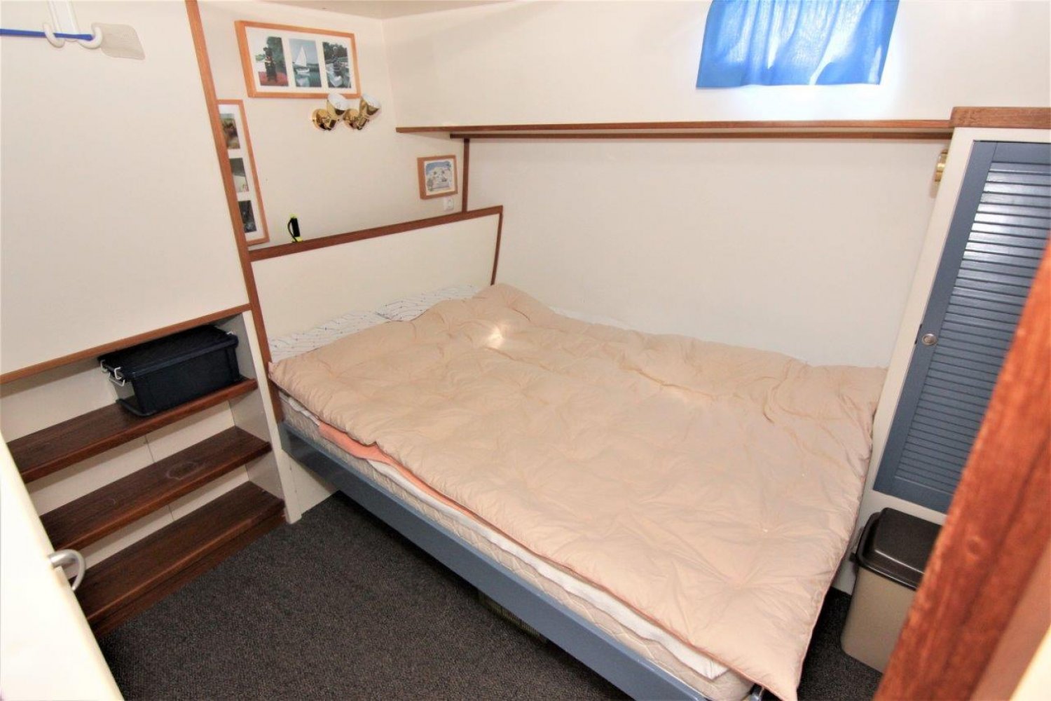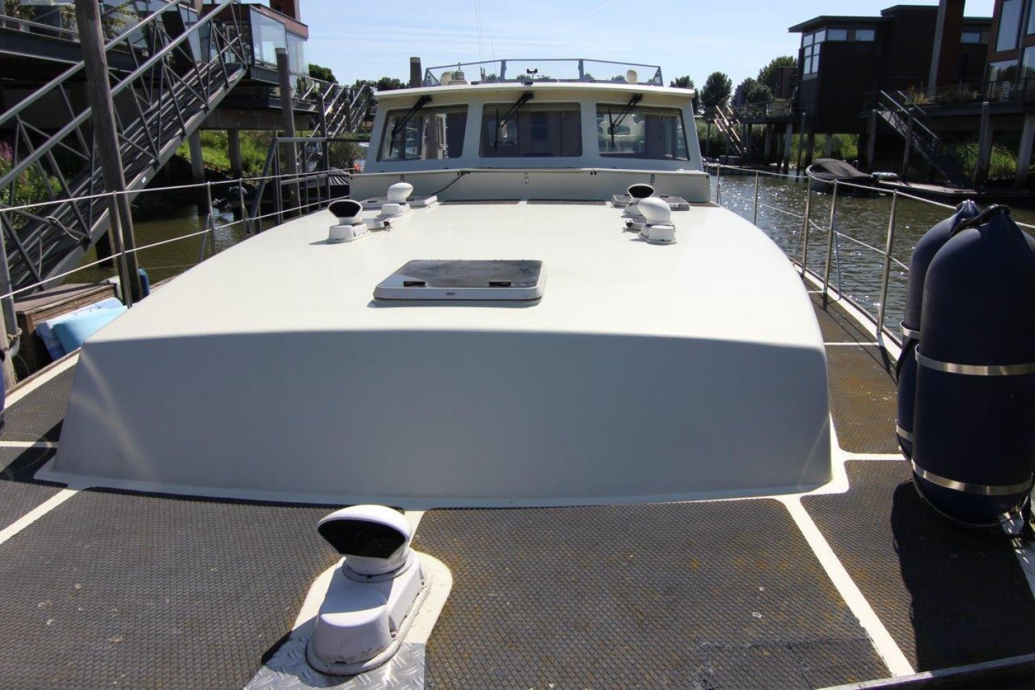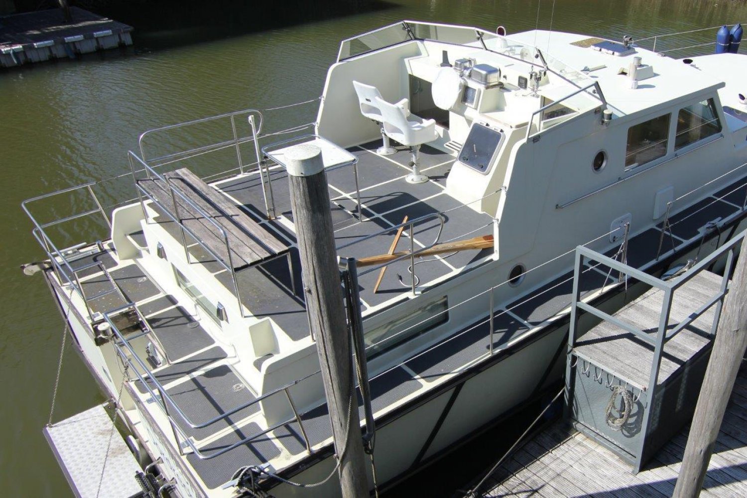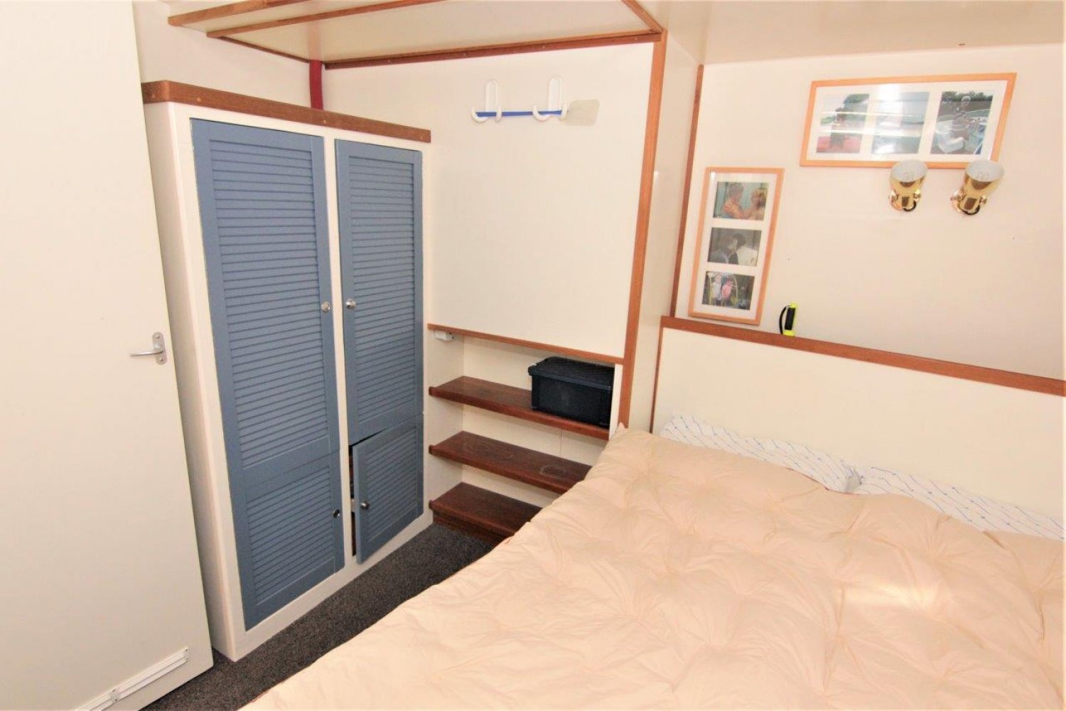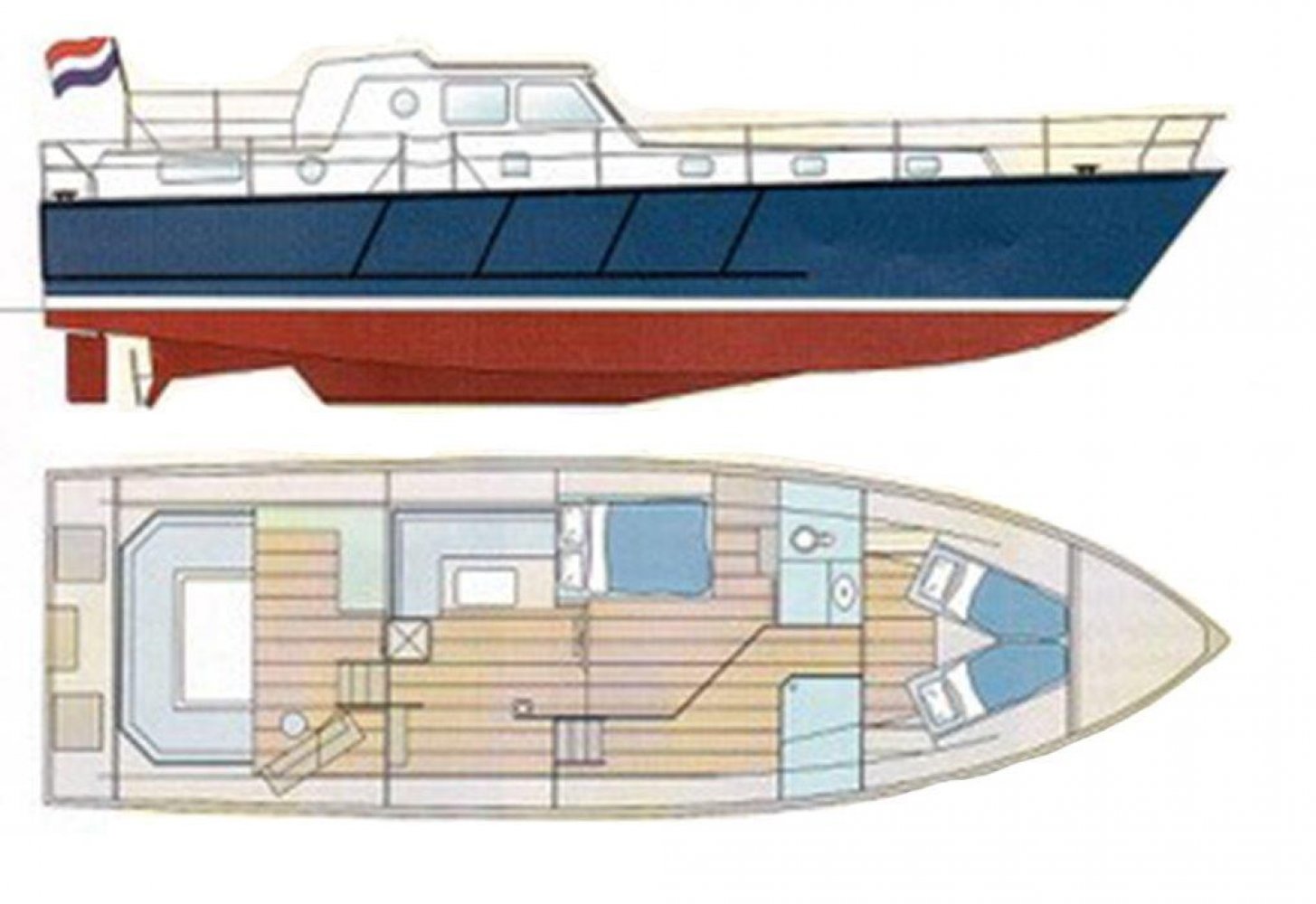 Uniek en zeer stoer motorschip naar ontwerp van Van de Stadt: de Van de Stadt 50 / Modus 1500 motorboot. Hoogwaardig gebouwd door Modus in Lelystad in 2 lagen hout/epoxy met een kern van schuim. De dikte van de romp is ca. 11 cm. Daardoor in theorie onzinkbaar (7 ton drijvend vermogen door de romp) maar vooral exreem isolerend. Voorzien van groot achterdek met brede gangboorden. Het stuurhuis biedt mooi zicht rondom. In het achterschip is de zeer royale salon met bureau en keuken. Voorin zijn de 2 dubbele hutten, aparte douchecel en de toilet. Alles is ruim, licht en geschikt voor langere bewoning en/of reizen.