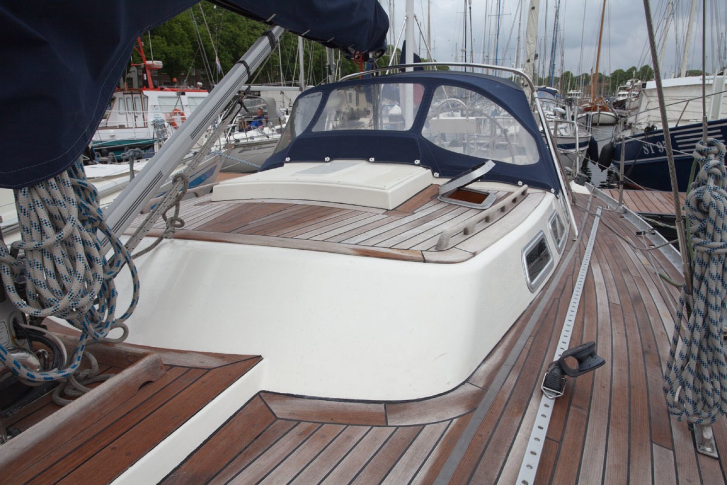 Een Nederlands kwaliteitsjacht van internationale allure in uitstekende staat van onderhoud. Bijzonder fraai houtwerk zowel binnen als buiten geven deze boot een echte scheepse uitstraling en zij is dan ook een blikvanger in elke haven of sluis. Deze Victoire is uitgevoerd met een 1.85 kiel zodat een groot vaargebied bereikbaar is. Dit jacht is ontworpen voor “blue water cruising” en mag dan ook zeker oceaan waardig genoemd worden. De prachtige klassieke lijnen van de romp worden versterkt door het fraaie teakdek. Ook opvallend zijn de fraaie dorade luchthappers met rvs beschermbeugels. Vanuit de beschutte kuip met groot stuurwiel heeft u goed overzicht over de boot. Alle apparatuur is vanaf de stuurstand goed afleesbaar en de stuurautomaat is op de console te bedienen. De zeilgardarobe is grotendeels nieuw en van zware kwaliteit doek. Voor goede aan de windse prestaties izijn er een high aspect en kotterfok en op ruimere koersen kunt u kiezen voor de grote genua en spinnaker. De boot heeft een winterkleed tot op de waterlijn wat slechts 1x is gebruikt. Zij heeft 's winters namelijk meestal binnen in de loods gestaan. Het interieur is ruim met ook voor lange mensen voldoende stahoogte. Aan bakboord is een L-vormige kombuis met dubbele spoelbak, oven en koelbox. Er is veel bergruimte voor proviand. Aan stuurboord treft u de navigatiehoek met de nodige apparatuur en radar voor de navigatie. Midscheeps is een ruime zithoek. In het vooronder is een ruime tweepersoons hut en de natte cel. Deze is voorzien van de nodige kastruimte en een spoelbakje. In het achterschip is een zeer ruime tweepersoonshut. Aan stuurboord in het achterschip is een tweepersoons kooi met stapelbed. De Victoire 1200 is een zeewaardig jacht voorzien van alle gemakken voor een lang verblijf aan boord. Wanneer u hoge eisen stelt aan vaareigenschappen en afwerking vergelijkbaar met Scandinavische jachten dan is deze boot een bezoek zeker de moeite waard. Wij nodigen u dan ook van harte uit voor een bezichtiging in Medemblik (NL). Neemt u contact op via [email protected], of nummer +31(0)6 5020 1336.