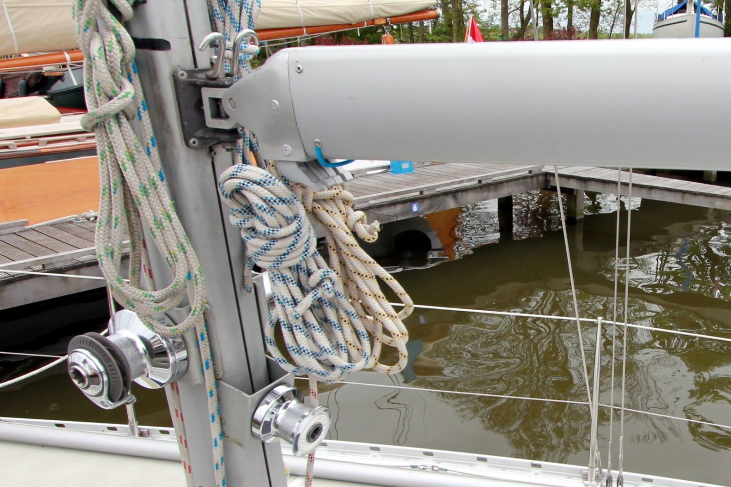 2x Lewmar 30ST genualier, 1 x vallier op kajuitdak, 3 x lier op mast