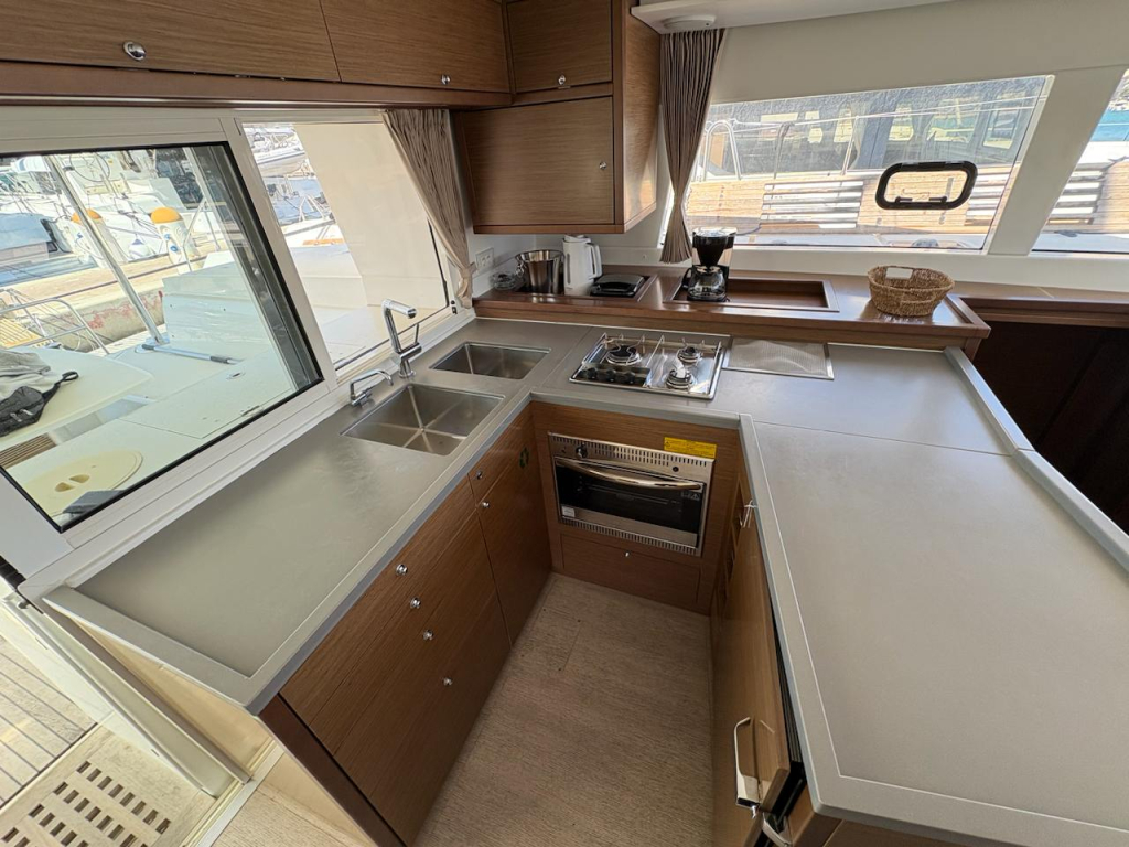 We surely offer you one of the best maintained and upgraded Lagoon 450 on the market. This Lagoon model is a the most produced catamaran and the biggest hit in the catamaran market. A beautifully shaped boat. Very suitable for cruising and relaxed living on board, in marinas or anchoring in beautiful places, but also perfectly equipped and fitted for some real sailing. She is built with the beautiful, classic interior design of four cabins and four heads. This provides a lot of comfort to all the crew.