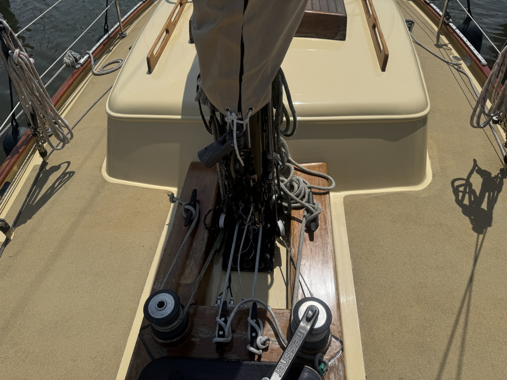 Authentic craftsmanship in every detail. Look at the finish of the cockpit coaming, the septers of stainless steel in style, the winches are even overhauled, beautifully painted, no rust, stainless steel bumpers, super heavy Volvo Penta clean and strong and reliable.