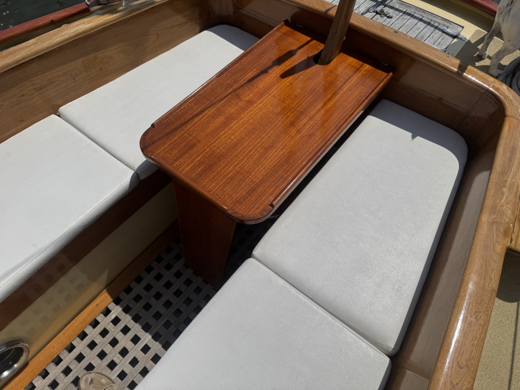 Outside: Teak cockpit with teak benches, teak grating, tiller