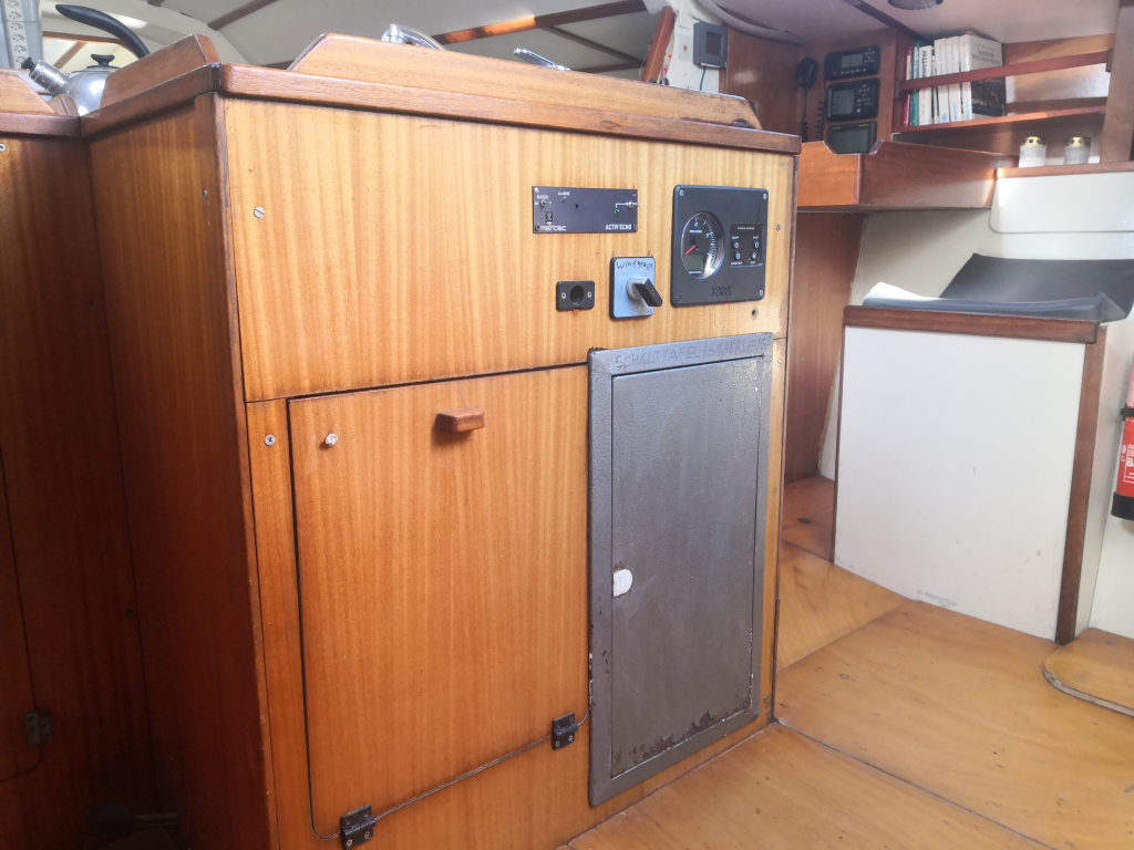 ACCOMODATION: Sleeps 6 in 2 cabins and saloon. Interior balsa mahagoni wood. Partial insulation. Saloon with U shaped seating for 6 to starboard, additional sofa seating to port. Nav station to port aft and galley to starboard aft. Galley with U shaped stainless steel worktops with built in single stainless steel sink with mixer tap. 2 Burner stove with oven. 80L Top loading refrigerator (convertible into freezer). Full kitchen inventory. Aft cabins: double bed with hanging locker and cupboard storage. Head: Jabsco toilet, washbasin with mixer tap. Shower with shower pump. Lots of storage. Water 2x175L. Holding tank 60L. Electric and manual bilge pump. Additional moveable electric bilge pump.