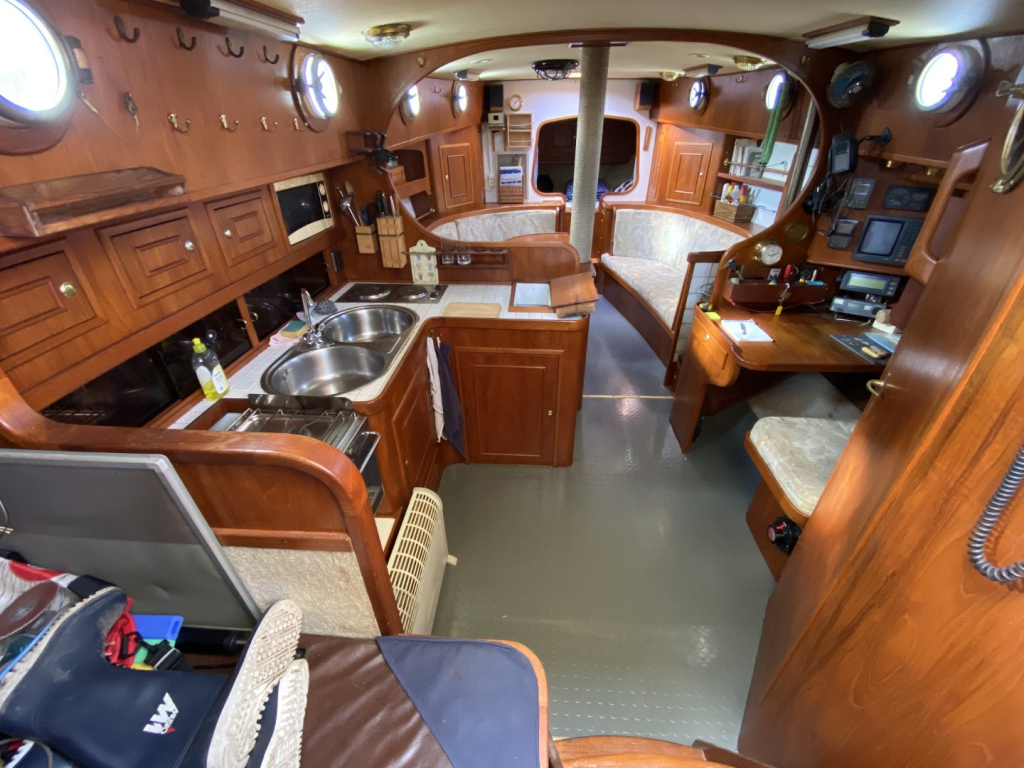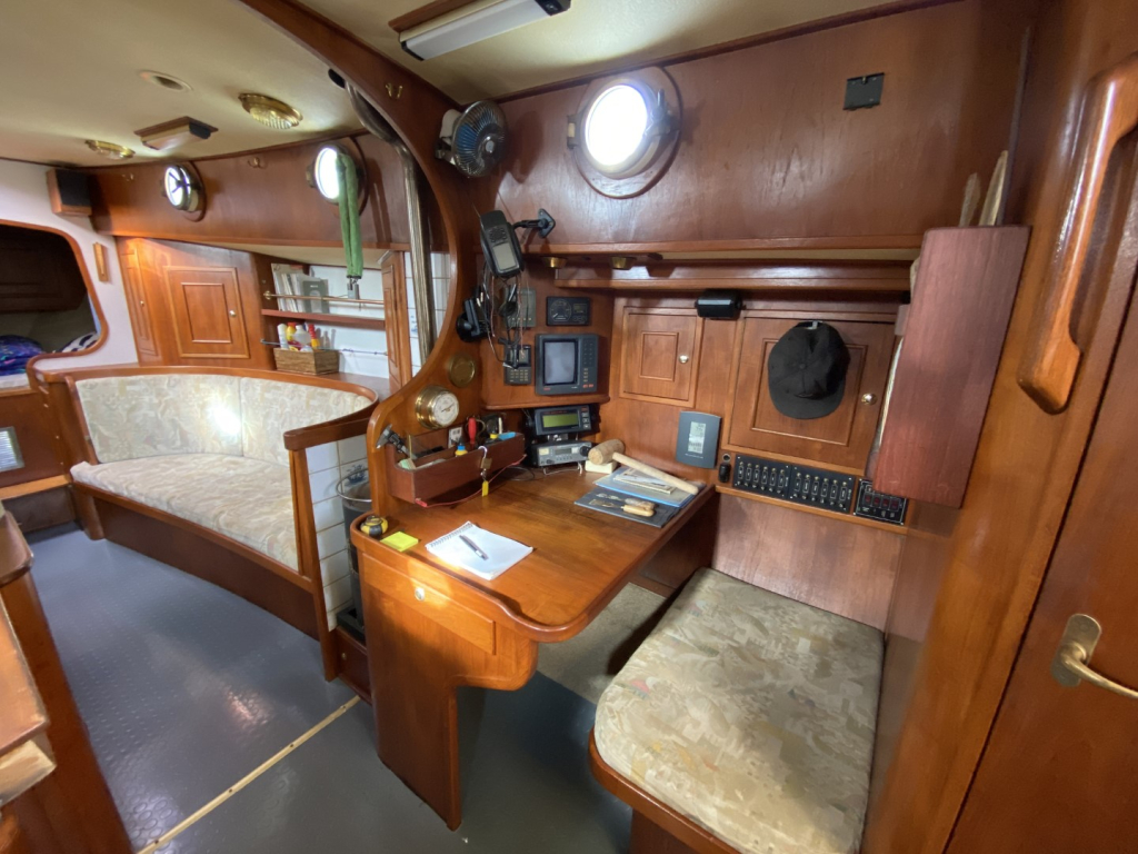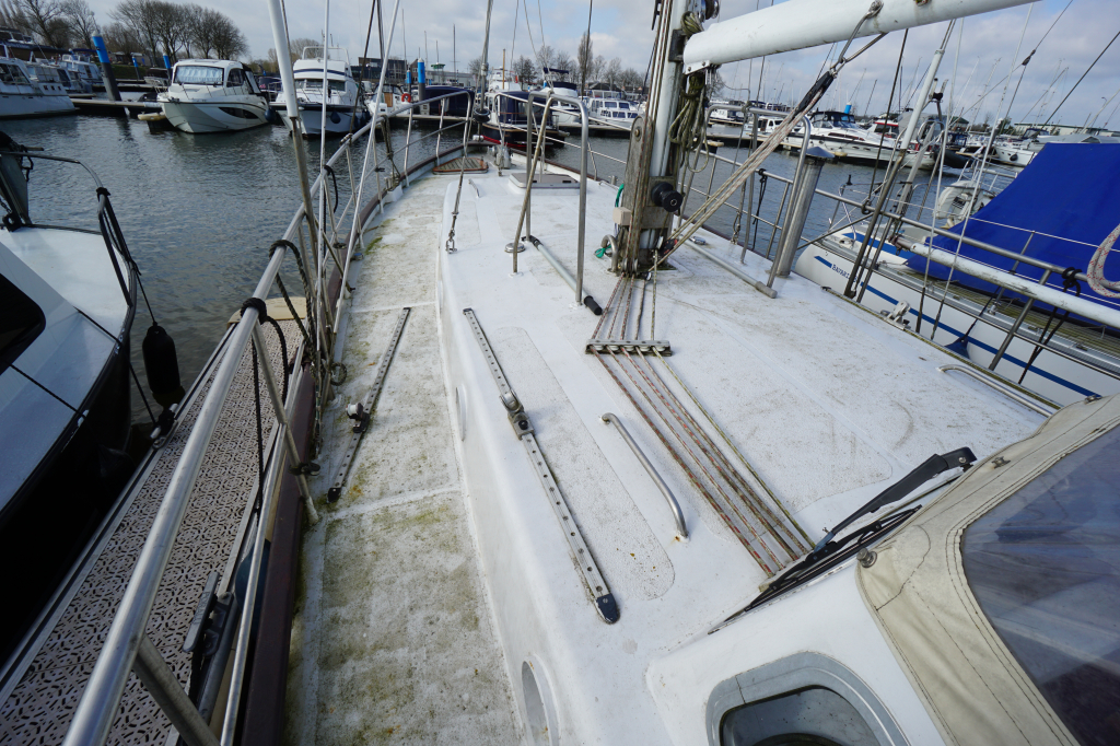 Sturdy Colin Archer offered by the second private owner. In the past, the ship has been taken out of the water every 3 years for a paint job all around and renewal of the anodes (last time 2021). The ship weighs over 12 tons, of which 3800kg lead ballast. This is a seriously solid ship with a comfortable interior. The ship has a clearance height of 16 meters but is also equipped with a mast lowering device.