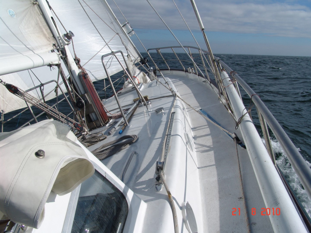 Dacron mainsail, roller furling genoa, babystay jib and storm jib