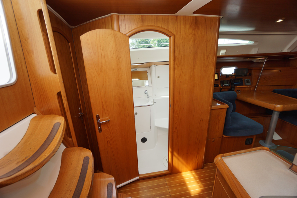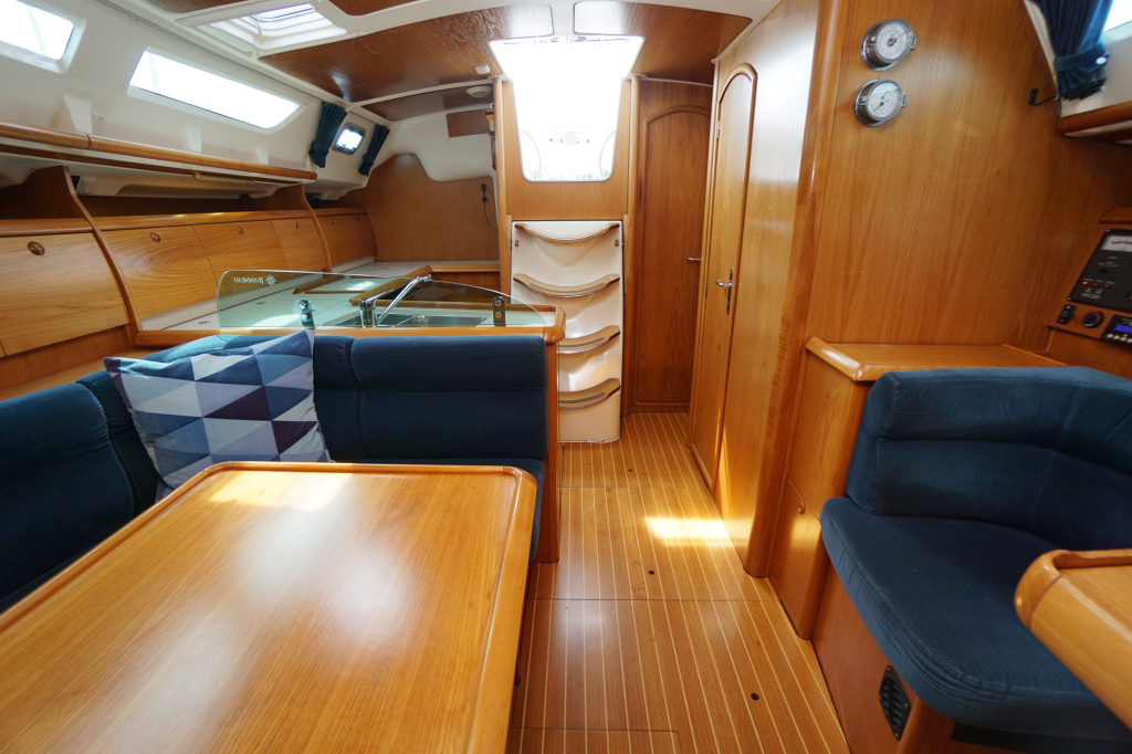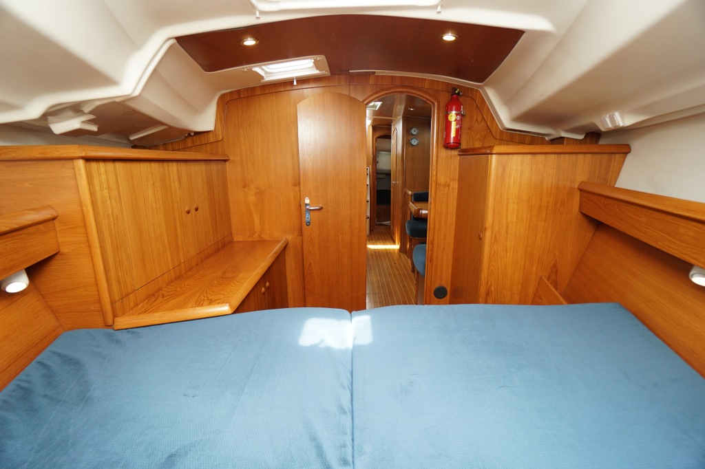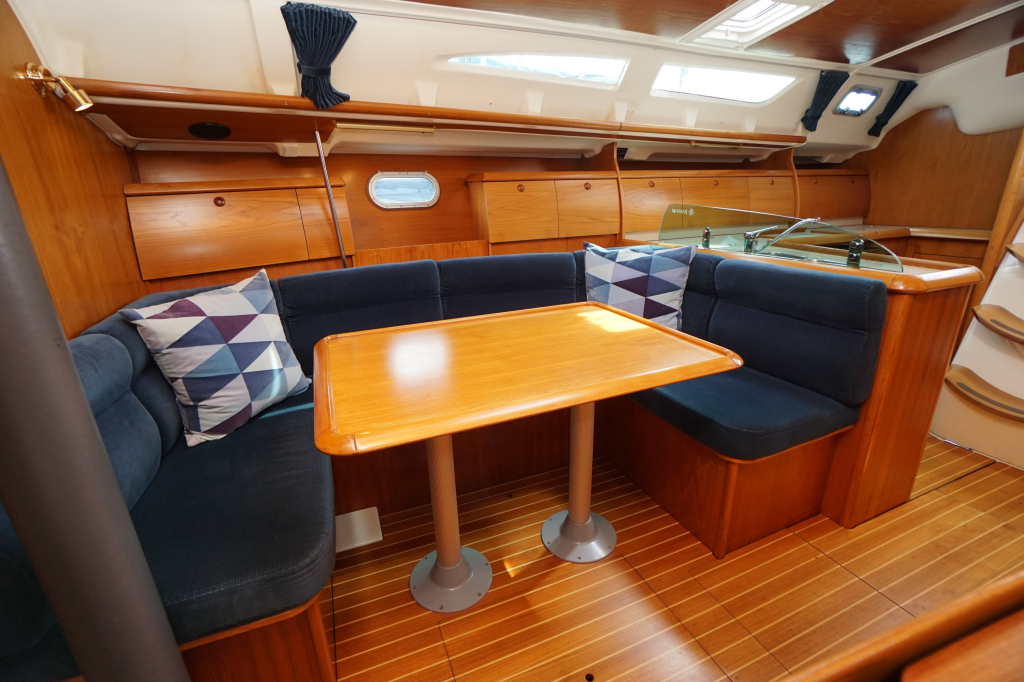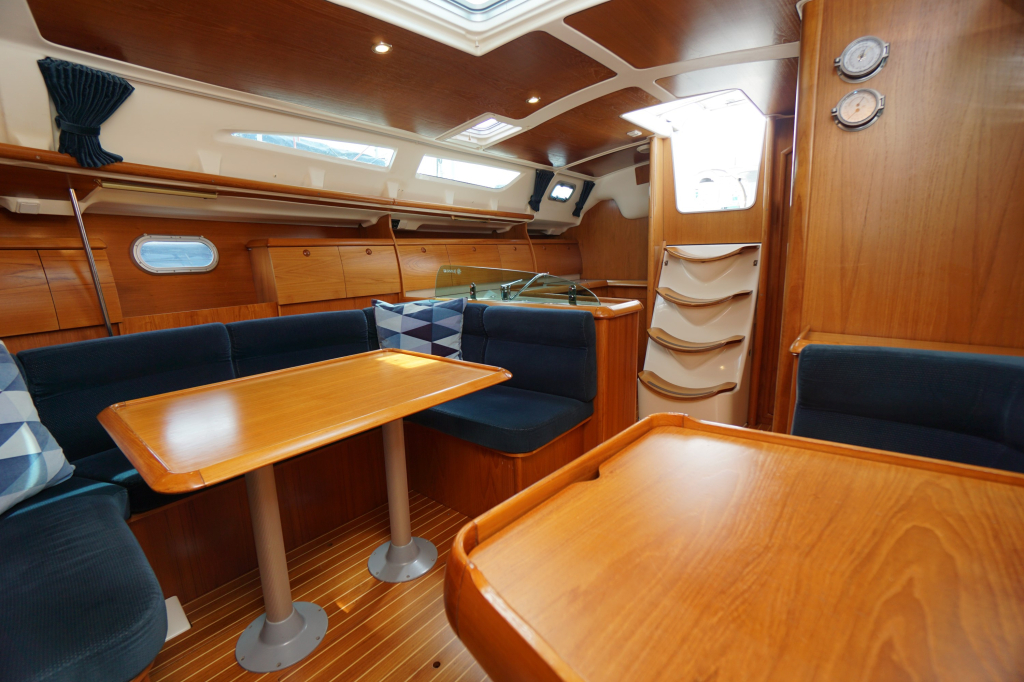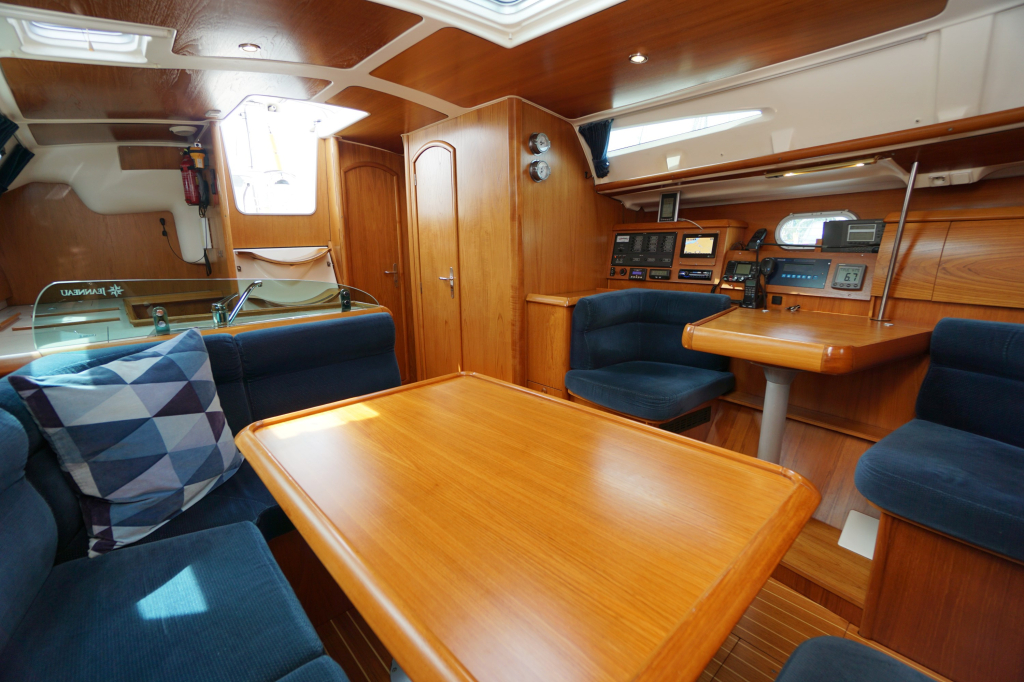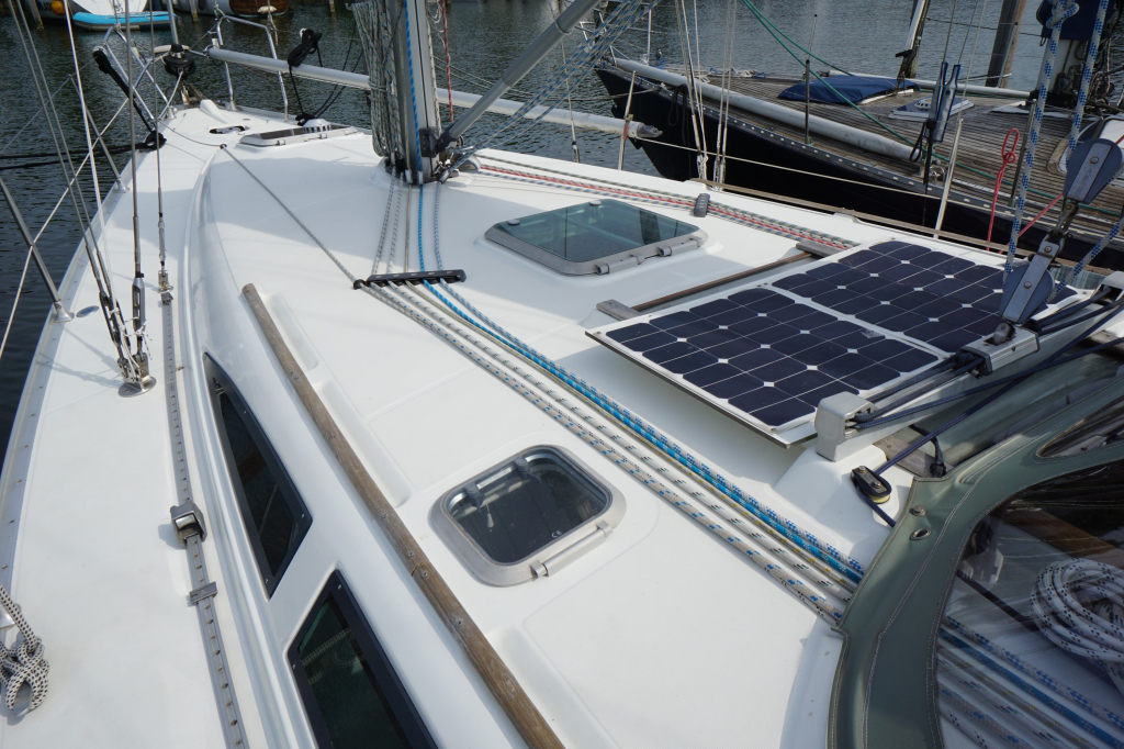 This Jeanneau SO 40 features a spacious cockpit, two comfortable double cabins, a generous saloon, and a large head. Everything on board is provided to make your stay as comfortable as possible, including heating, a boiler, autopilot, radar, AIS, chartplotter(s), a cockpit tent, a bimini, solar panels, and much more.