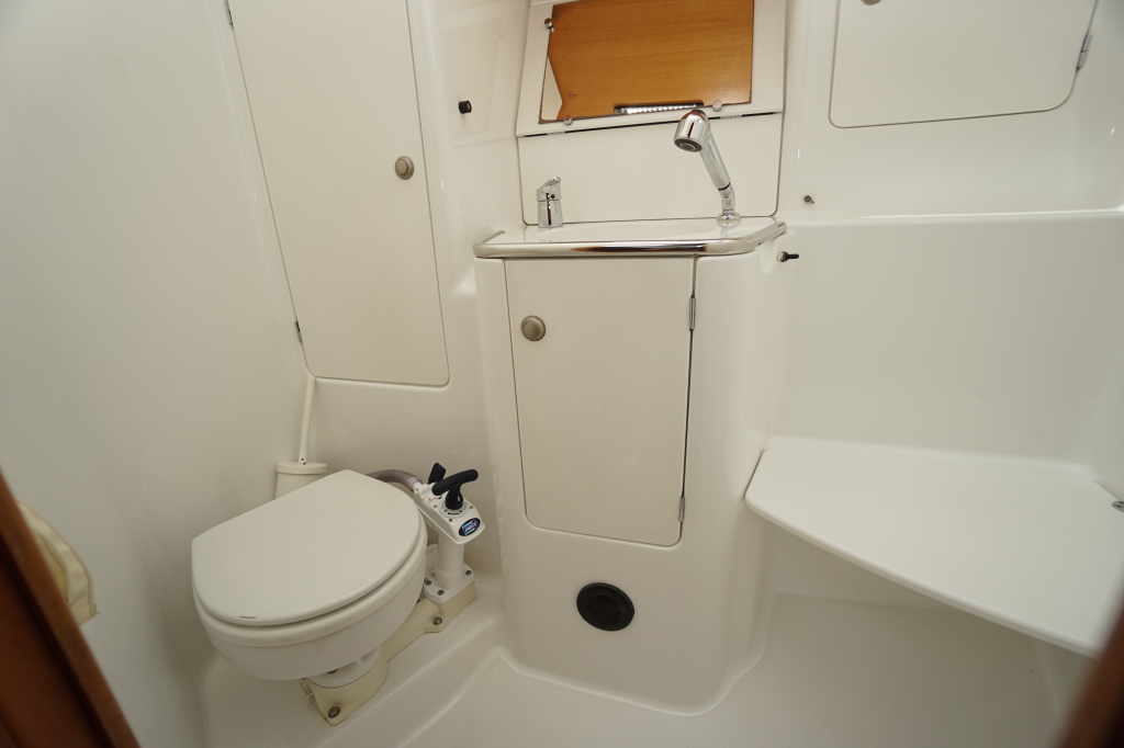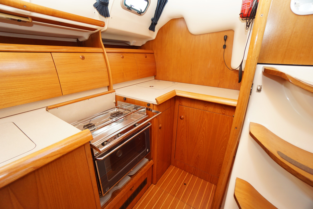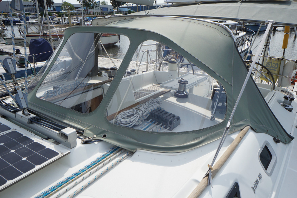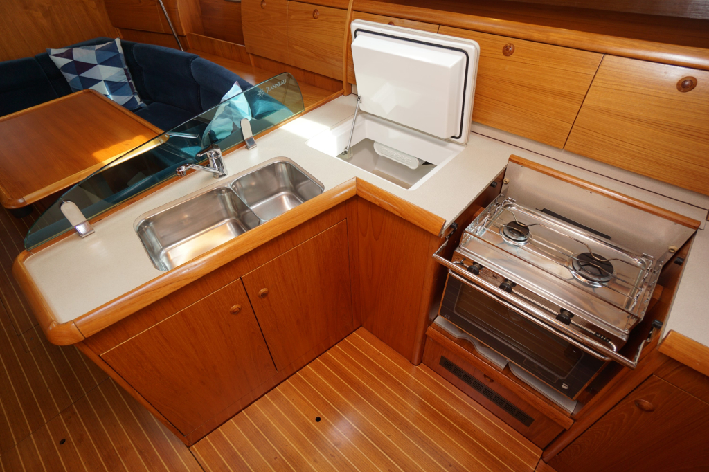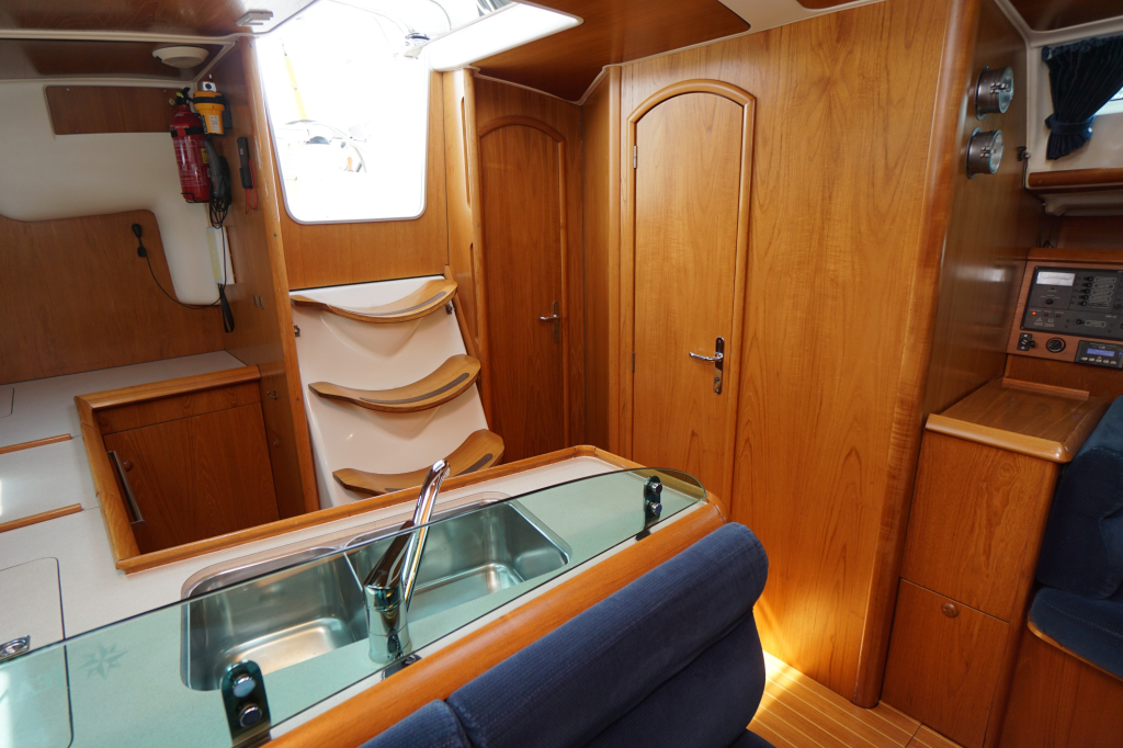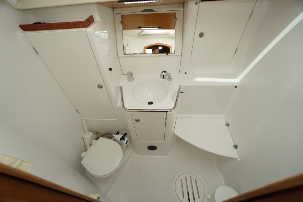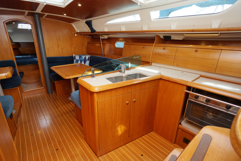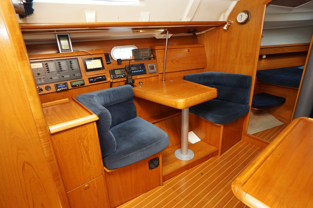 This Jeanneau SO 40 features a spacious cockpit, two comfortable double cabins, a generous saloon, and a large head. Everything on board is provided to make your stay as comfortable as possible, including heating, a boiler, autopilot, radar, AIS, chartplotter(s), a cockpit tent, a bimini, solar panels, and much more.