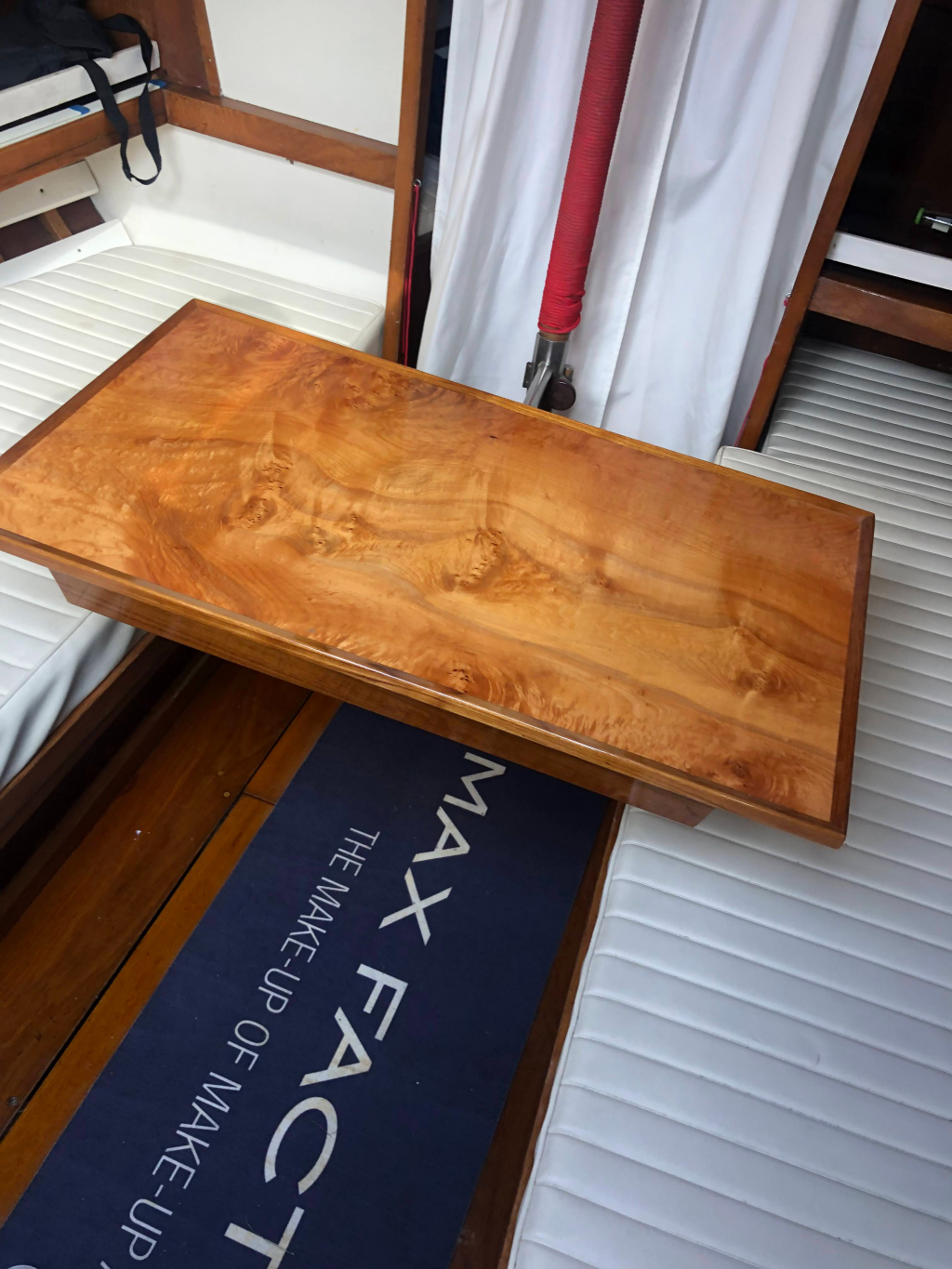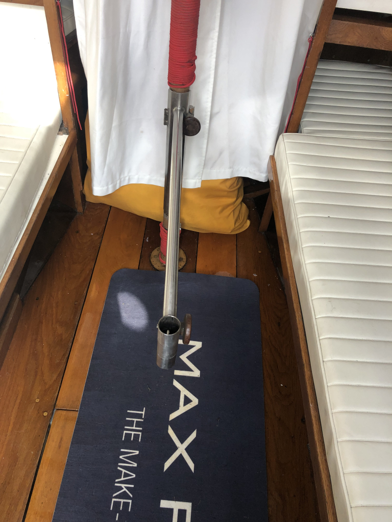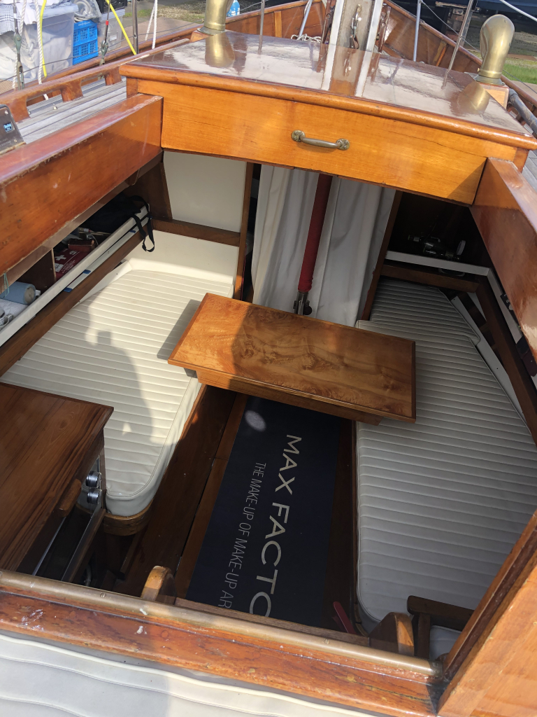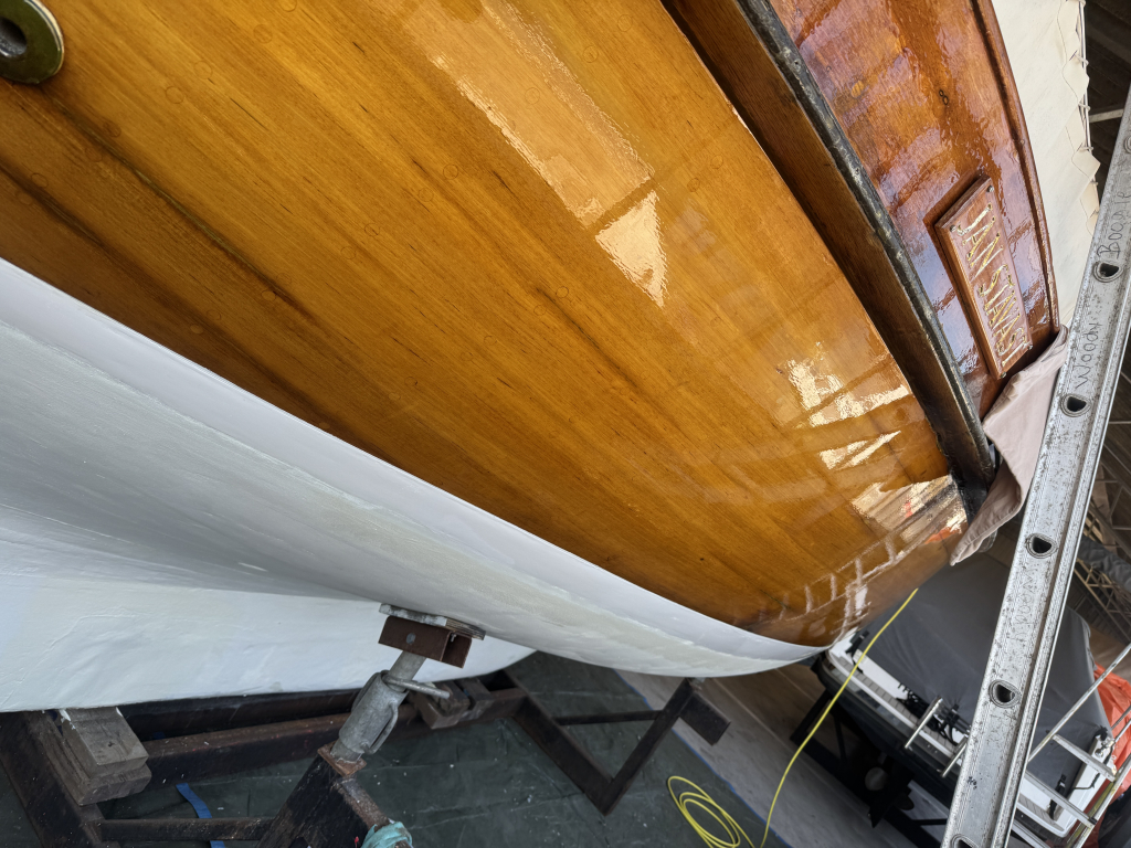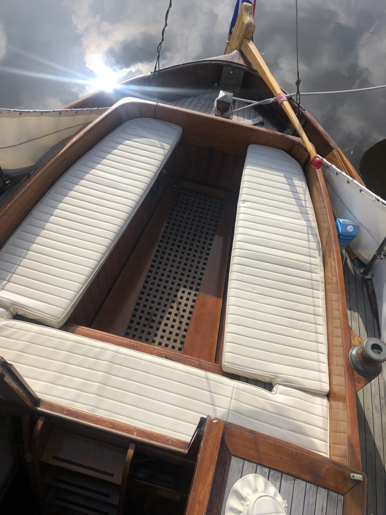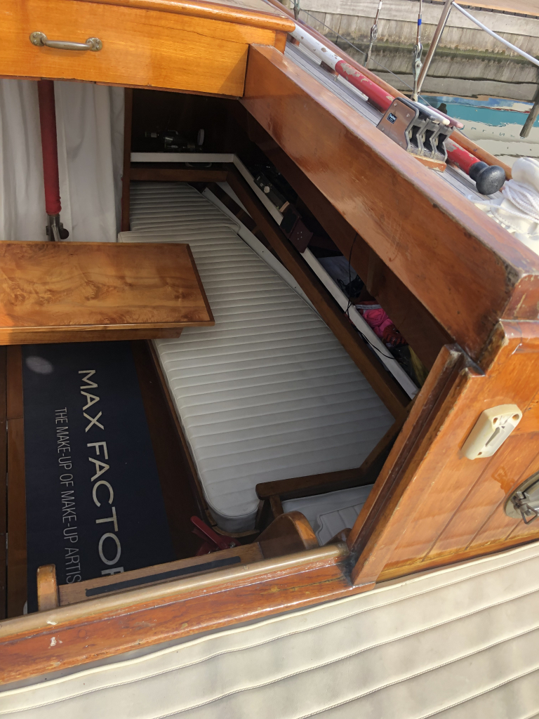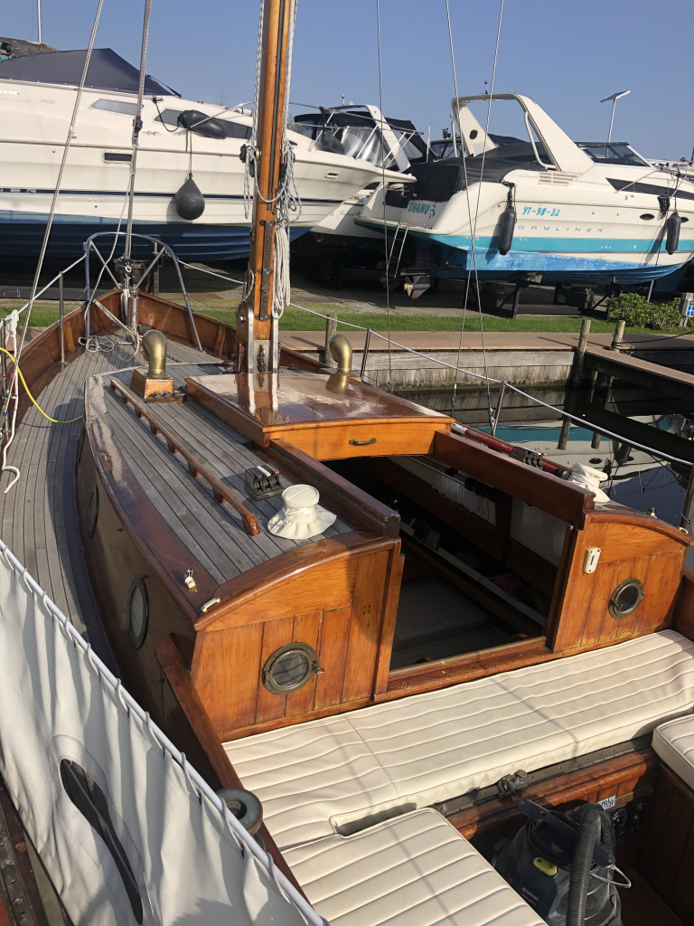 De originele mast is in 2025 volledig gerenoveerd, waarbij al het beslag eraf is gehaald om de mast volledig op te knappen. De stagen zijn nieuw (de stag-spanners zijn van brons, evenals de pinnen); de boot heeft ook een mooie schippers’ dakroef met een rond raam voor daglicht. Rondom is een stootrand, eveneens met een sierstrip van brons. Op de kajuit bevinden zich enkele veiligheidshandgrepen. Er is ook een grote bakkist beschikbaar in de kuip, met veel opbergruimte.