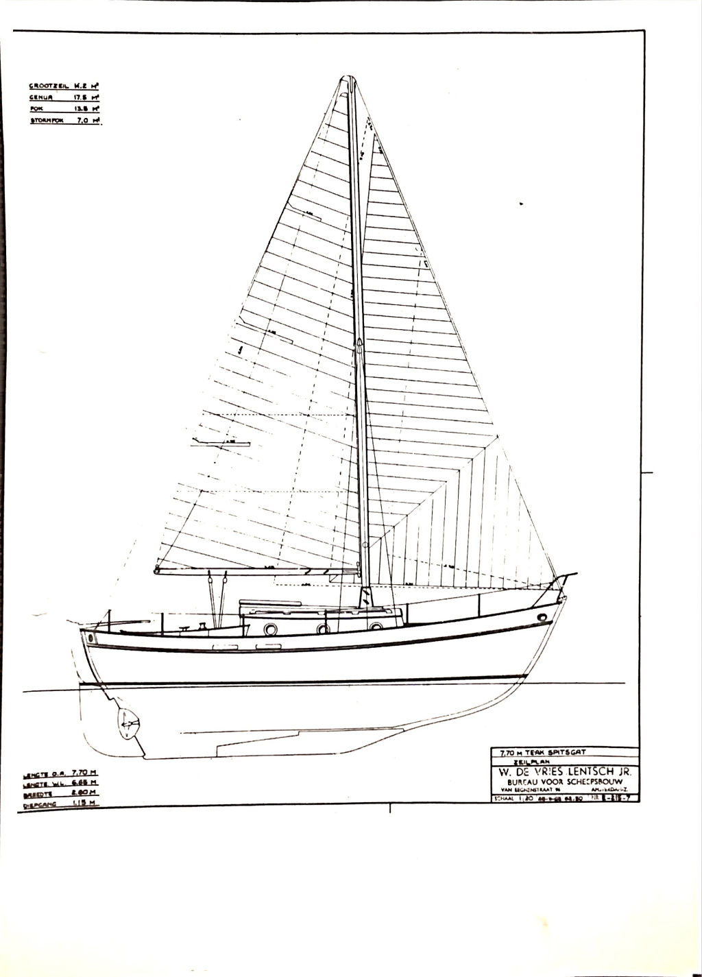 De langkieler is bijna 60 jaar oud maar zichtbaar zeer goed onderhouden (houtwerk, mast, lakwerk, zeilen, beslag). Ze is volledig van teakhout, inclusief een origineel teakdek in uiterst goede staat, en acht meter lang. Alle originele details (origineel brons beslag) zijn behouden gebleven, in goede staat bewaard gebleven of in originele uitvoering vervangen. Van het gegalvaniseerde anker, met gegalvaniseerde ankerketting (en ankerbak), tot de patrijspoorten en de luchthappers (nieuw) van brons.