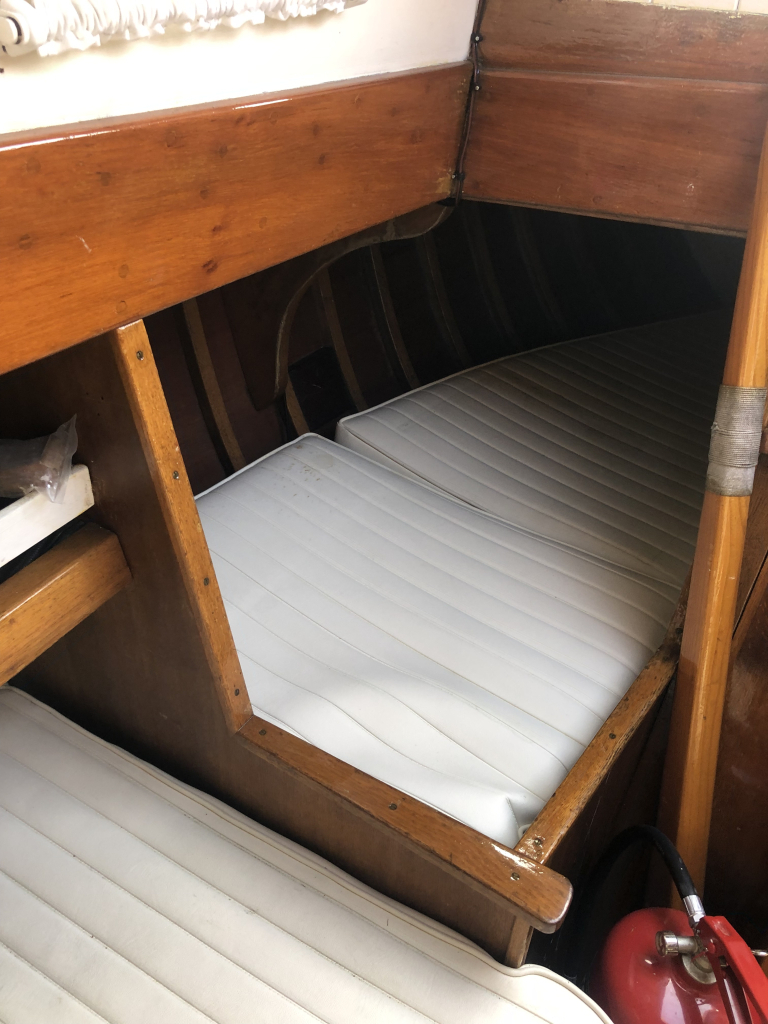 Deze de Vries Lentsch is niet alleen een pronkstuk maar ook een praktisch zeilschip, om plezierig, van alle gemakken voorzien, mooie tochten te gaan maken en langdurig op de boot te verblijven. Er zijn vier slaapplekken beschikbaar, zowel in de kajuit als in de voorpunt als achterin, maar wat deze klassieker uit 1967 zeker zo uniek maakt zijn de moderne faciliteiten. Er is een nieuwe elektrische wc aan boord; een nieuwe televisie; het elektra systeem is in 2022 volledig vervangen (waaronder vier AGM accu’s (2024), een Victron oplader en omvormer. Onderweg, zonder walstroom, kunt u gerust koffie zetten, koken (tweepits keramische plaat) of televisiekijken; alle kussen zijn volledig vernieuwd, van elegant crèmewit (sky)leder, gemaakt door een professionele scheepsinterieurbekleder (Astrid van den Berg, Vinkeveen), waaronder ook de gordijnen; er is een Silvercrest magnetron, kookplaat (waarop u kunt zien hoeveel Wattage er gebruikt wordt) en een Nespresso koffieapparaat aan boord (inbegrepen).