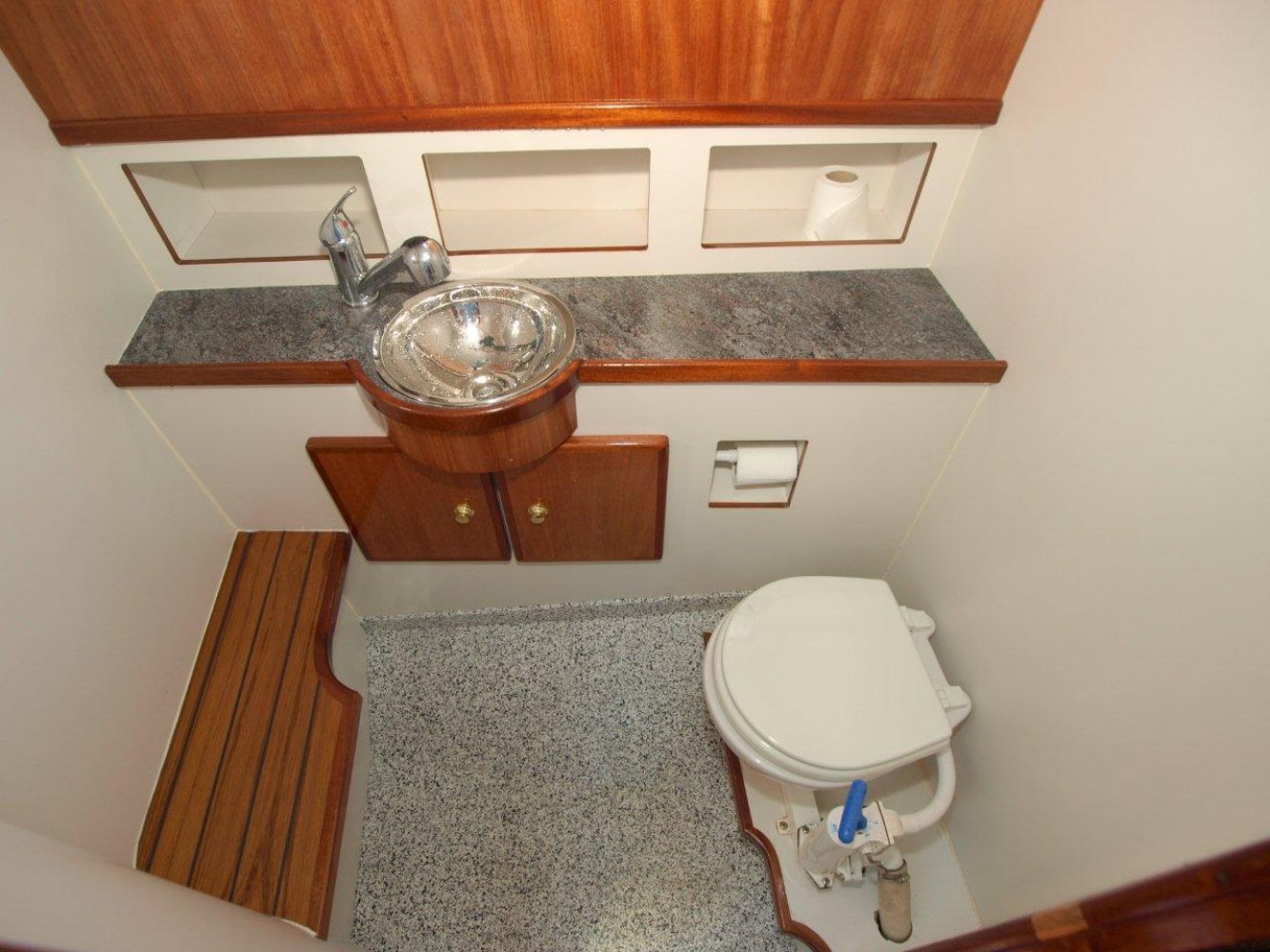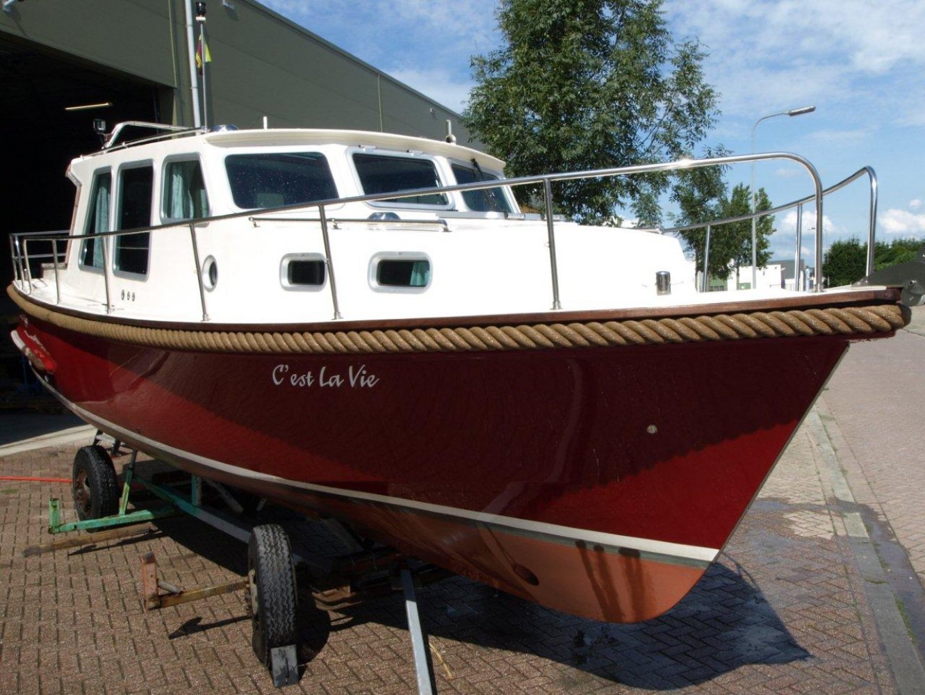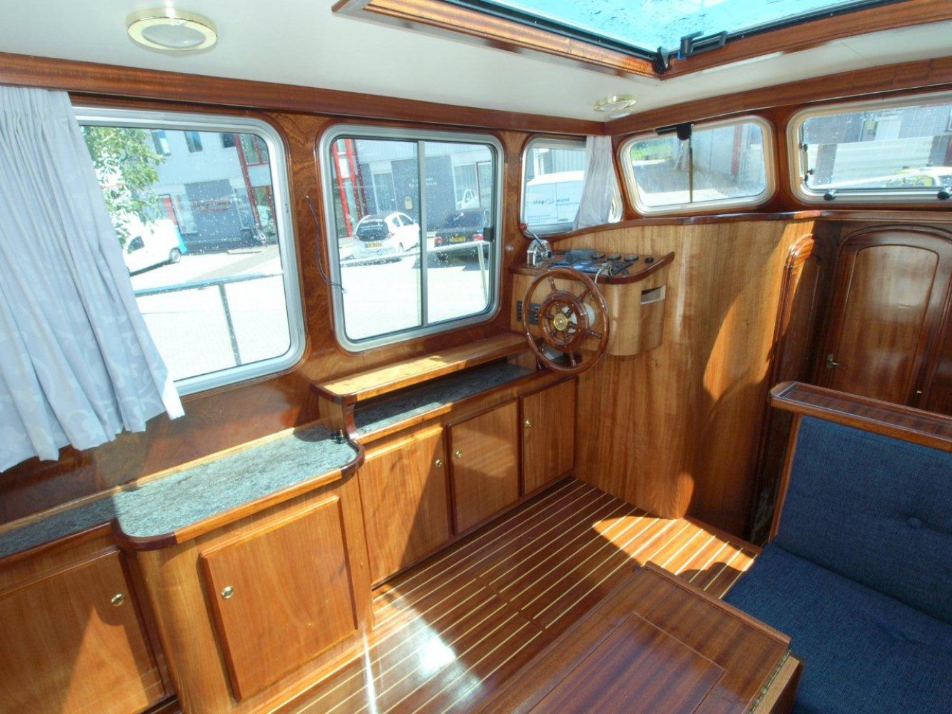 De Drammer 935 is een tijdloos schip met uitstekende vaareigenschappen. Het ontwerp en de indeling bieden de opvarenden veel comfort en bewegingsvrijheid. De ruime kuip is voorzien van de nodige bergluiken en een royale bank over de volle breedte van het schip. De gangboorden zijn goed begaanbaar, evenals het voordek. Varen met dit schip is door de krachtige Yanmar diesel in combinatie met de Vetus boegschroef erg eenvoudig. Gaat het toch verkeerd: de brede stootrand voorkomt schade. Het interieur is luxe afgewerkt in mahonie. Er zijn diverse kasten door het hele schip. Vanaf de binnenstuurstand heeft de schipper prima uitzicht rondom. Een enorm glazen dakraam zorgt voor extra licht en ventilatie. In het midden is een ruime natte cel met douchegelegenheid. Hier tegenover is de keuken geplaatst welke ook de nodige ruimte en veel licht biedt. In het voorschip is de slaaphut geplaatst met een ruim 2-persoons bed in V-vorm. Dit schip is in mooie staat, voorzien van verwarming, boegschroef, boiler, teak op de kuipvloer, zwemplatform, etc. en klaar om weg te varen. De ligplaats is binnen in een loods, waar wij alleen op afspraak terecht kunnen. Wilt u een keer komen kijken, dan horen wij dat graag.