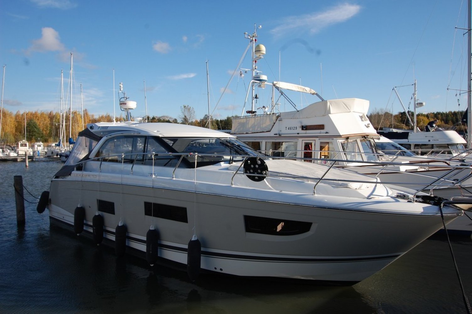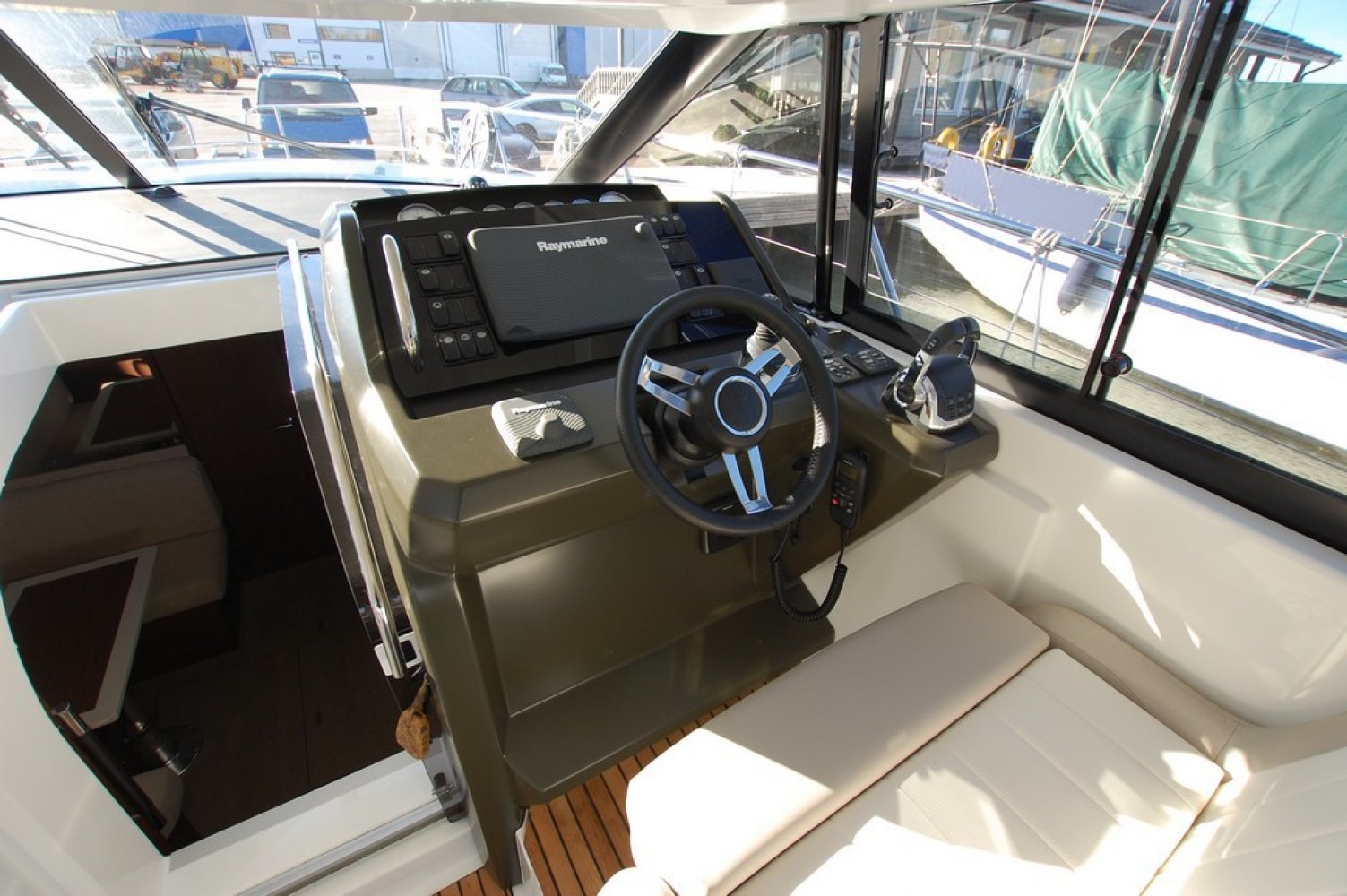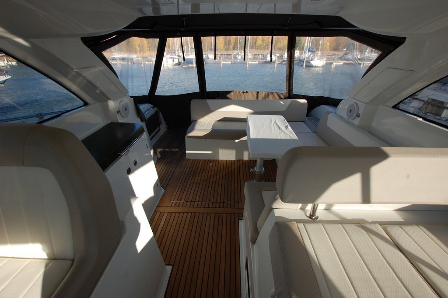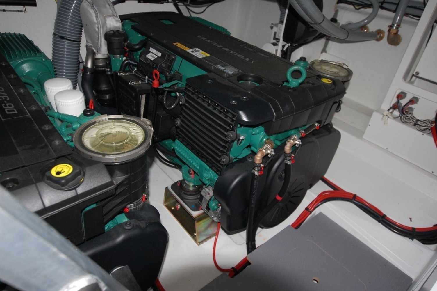 Volvo Penta 2x D6-370 DP (2x370hv) Diesel + Joystick Walnut interior Sportop -version (Electric sunroof) Trim Level Premiere 2016 - Teak in cockpit, swim platform and side decks - Ventilation pack (additional portholes) - Ambiance pack (additional LED and Spot -lightning - Foldable teak table + cover to cockpit - White Lacquered finish on the high doors of galley Upholstery "White Gold / Linen" Comfort pack - Electric toilet - Storage in cockpit galley - Bigger130l fridge - Additional mooring cleats for cross docking - Drawers in storage under floor Electronic pack 2016 - Plotter Raymarine E127 + map - Depth - Raymarine Wi-Fi module Mooring kit Anchoring kit Cockpit enclosure "Dark Smoke" Bow sunbed "Macadamia" Bow thruster Shore water system Cockpit fridge Micro Cockpit BBQ Ceramic stove Diesel heating Double berth to salon Additional storage in mid cabin Additional battery Invertter 2000W Volvo Auto trim tabs TV Antenna Fusion Audio 24" LED-TV in salon Radar AIS 650 VHF Mosquito nets Bow platfom