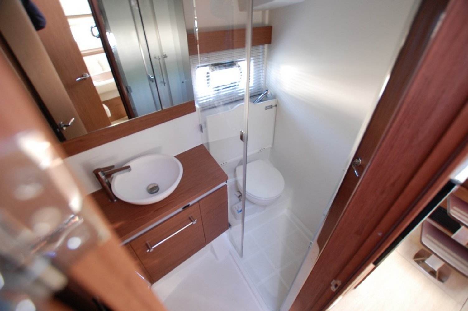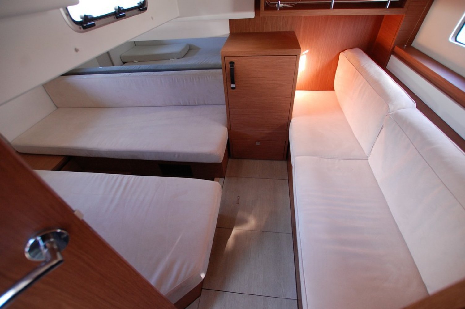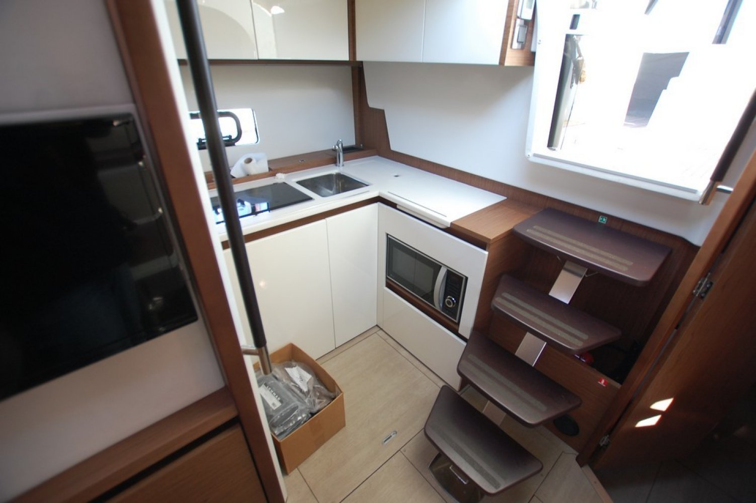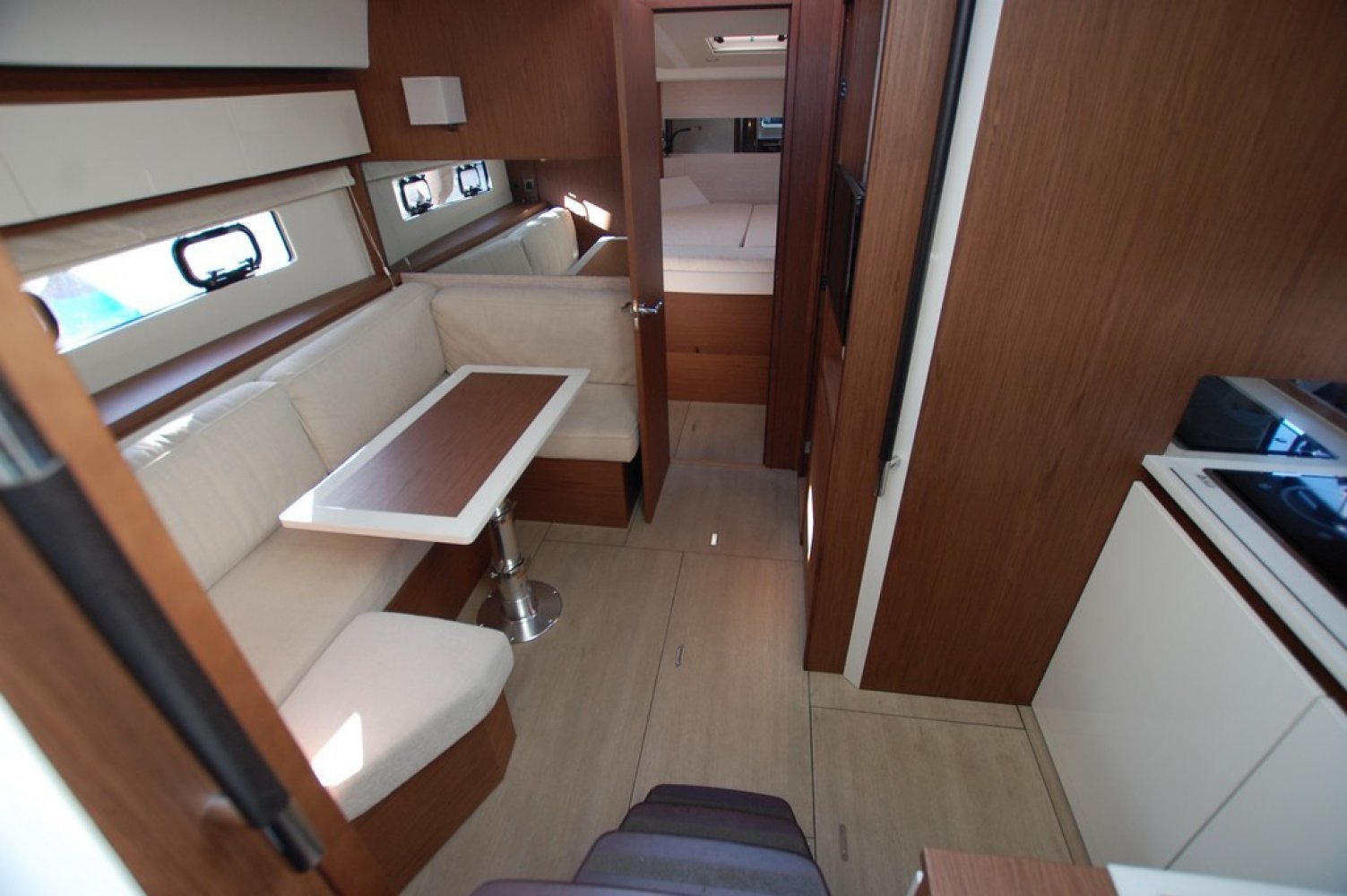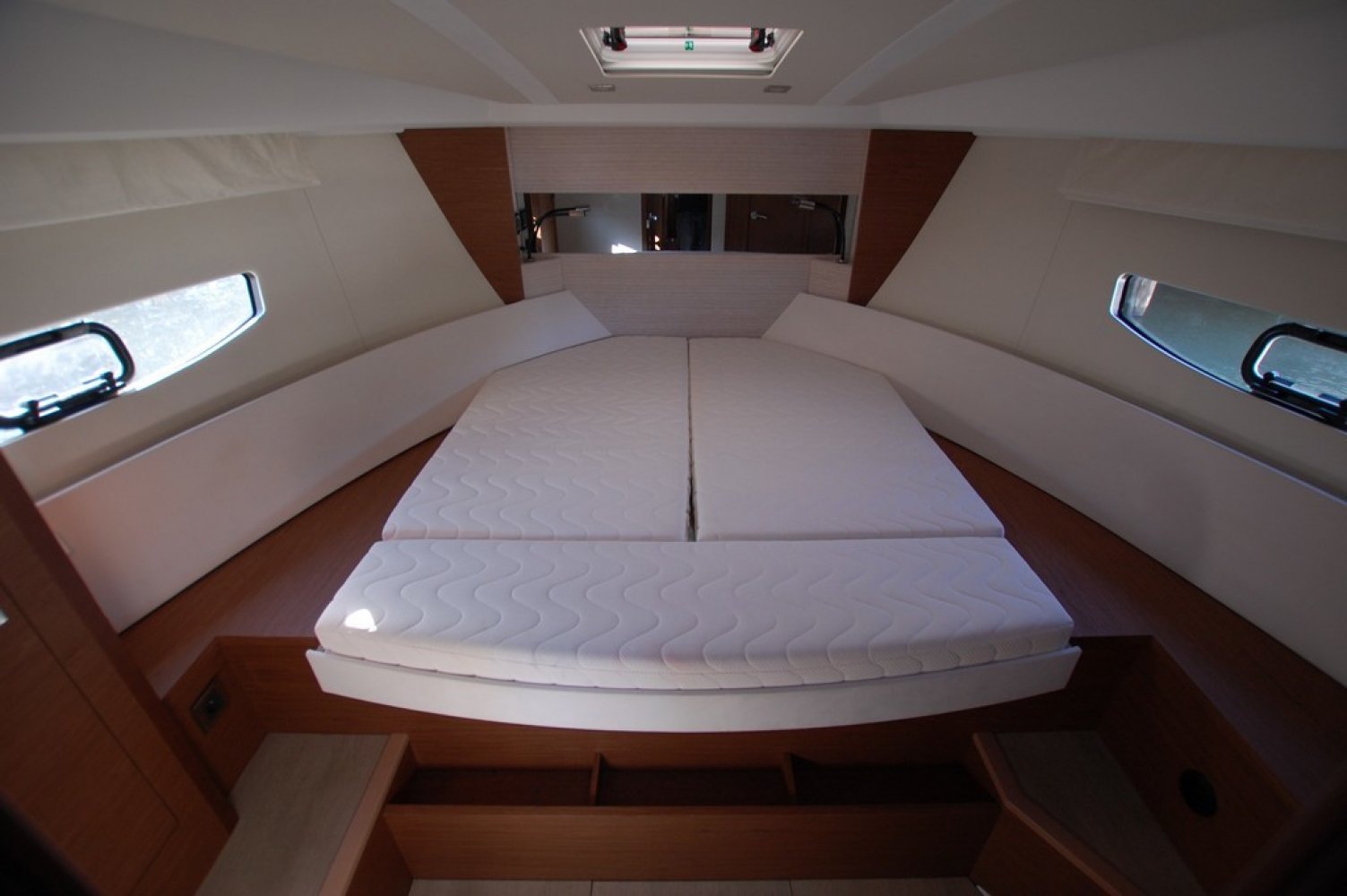 Volvo Penta 2x D6-370 DP (2x370hv) Diesel + Joystick Walnut interior Sportop -version (Electric sunroof) Trim Level Premiere 2016 - Teak in cockpit, swim platform and side decks - Ventilation pack (additional portholes) - Ambiance pack (additional LED and Spot -lightning - Foldable teak table + cover to cockpit - White Lacquered finish on the high doors of galley Upholstery "White Gold / Linen" Comfort pack - Electric toilet - Storage in cockpit galley - Bigger130l fridge - Additional mooring cleats for cross docking - Drawers in storage under floor Electronic pack 2016 - Plotter Raymarine E127 + map - Depth - Raymarine Wi-Fi module Mooring kit Anchoring kit Cockpit enclosure "Dark Smoke" Bow sunbed "Macadamia" Bow thruster Shore water system Cockpit fridge Micro Cockpit BBQ Ceramic stove Diesel heating Double berth to salon Additional storage in mid cabin Additional battery Invertter 2000W Volvo Auto trim tabs TV Antenna Fusion Audio 24" LED-TV in salon Radar AIS 650 VHF Mosquito nets Bow platfom