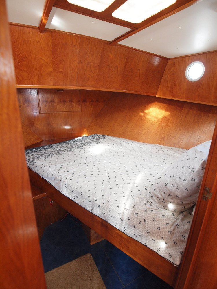 In het vooronder is een ruim kombuis geplaatst en de toilet ruimte. In de voorpiek is een hut met dubbel bed en ook hier de nodige opbergruimte.