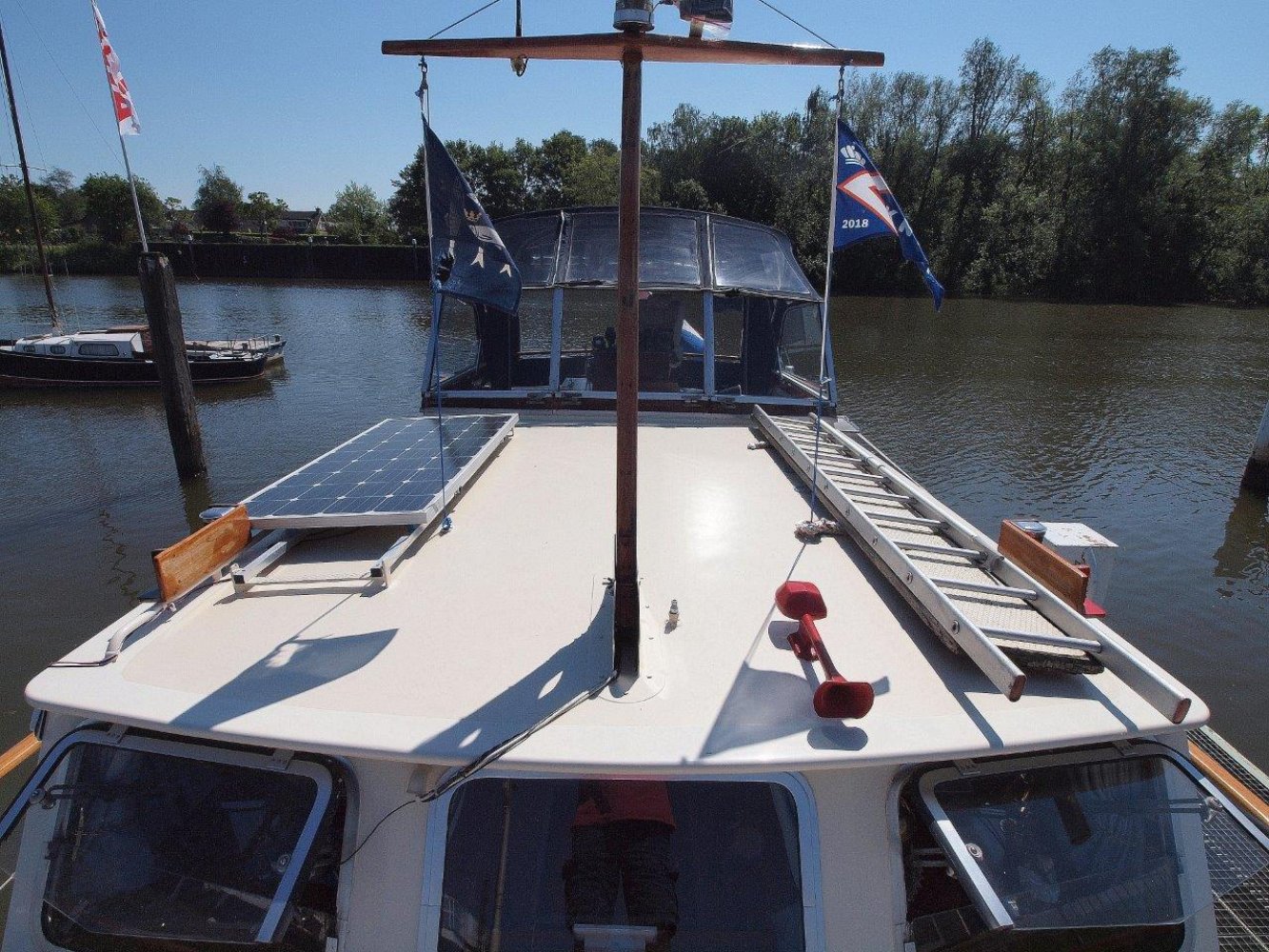 Dit klassiek en tijdloze ontwerp is niet alleen fraai om te zien maar ook praktisch. De rondspant romp garandeerd fijne vaareigenschappen en de ruimte aan boord maakt het een erg plezierig schip om op te vertoeven. Een mooie dag om het water maar langere reizen zijn zeker ook geen probleem. Het zonnepaneel en de aanwezige generator maakt het voor een groot deel een zelfvoorzienend schip. Het achterdek is ruim en u kunt beschutting vinden onder een mooie kuiptent. Hier is ook de buitenbesturing te vinden vanwaar u een uitstekend zicht heeft op het schip en de omgeving.