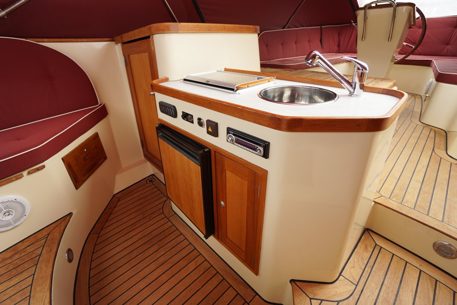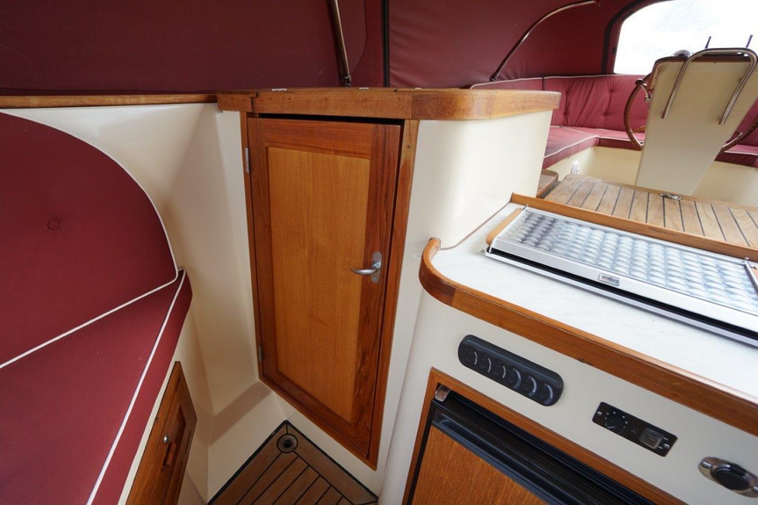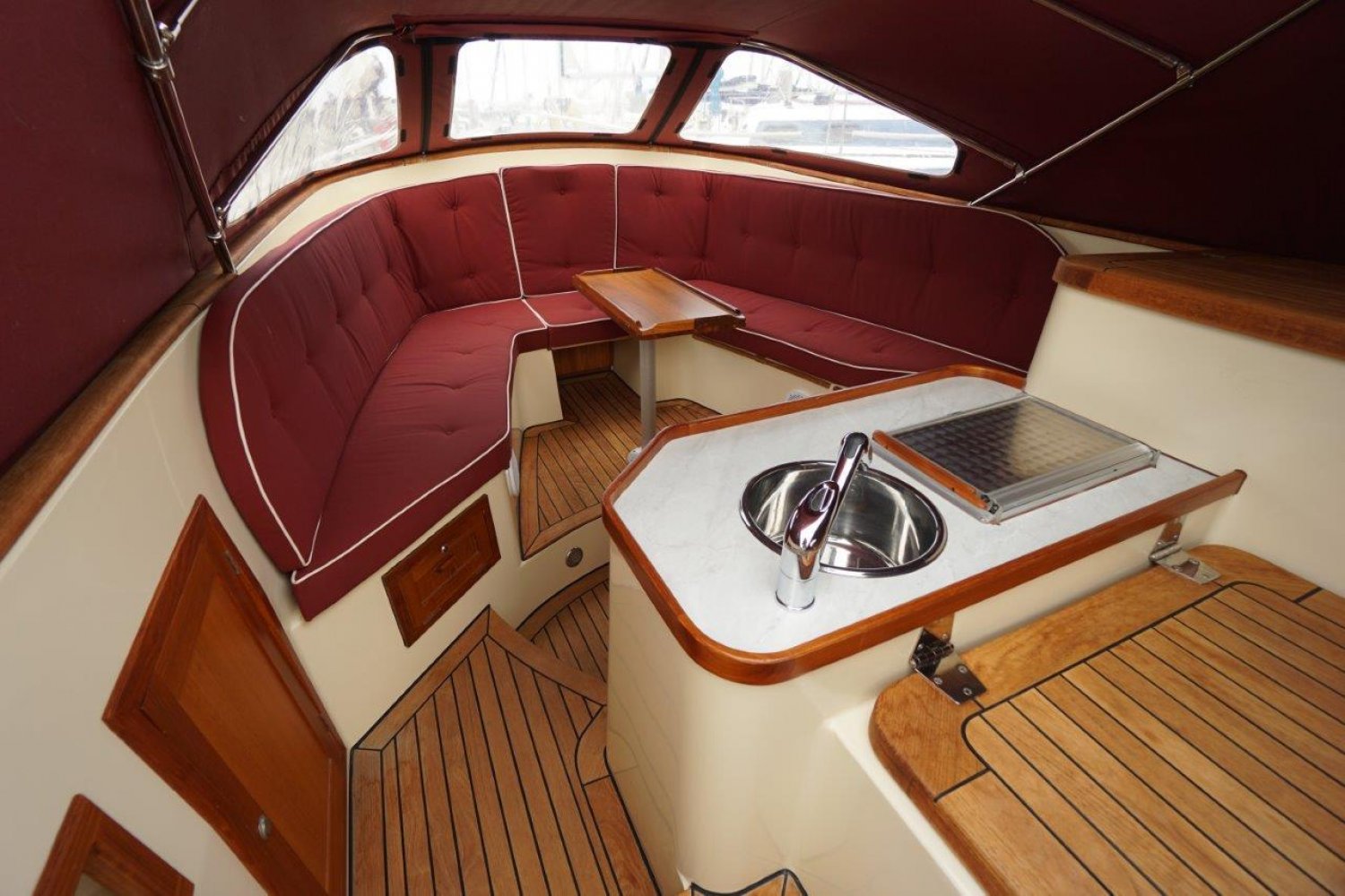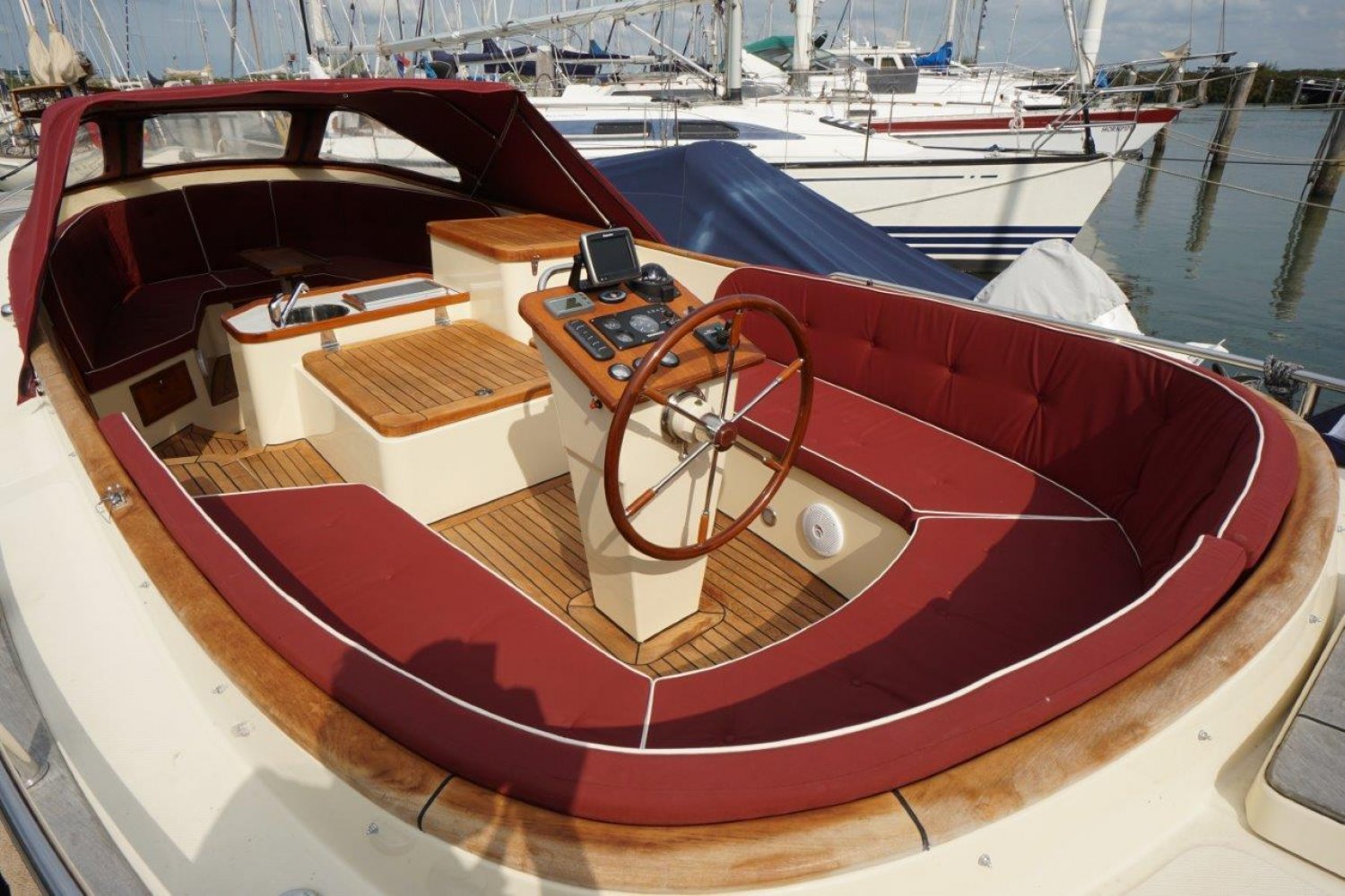 Een comfortabele sloep met veel bergruimte. De rondzit voor in het schip is gemakkelijk om te bouwen tot een ligbed, tevens vindt u bij deze rondzit de ingang naar een onderdekse ruimte. Deze ruimte is te gebruiken als slaapgelegenheid voor twee personen, of is te gebruiken als grote bergruimte.