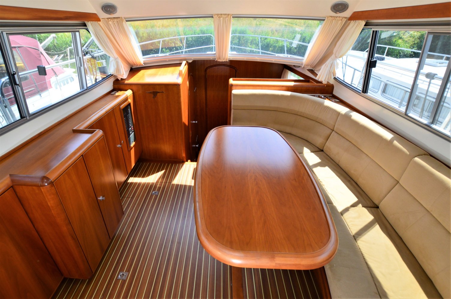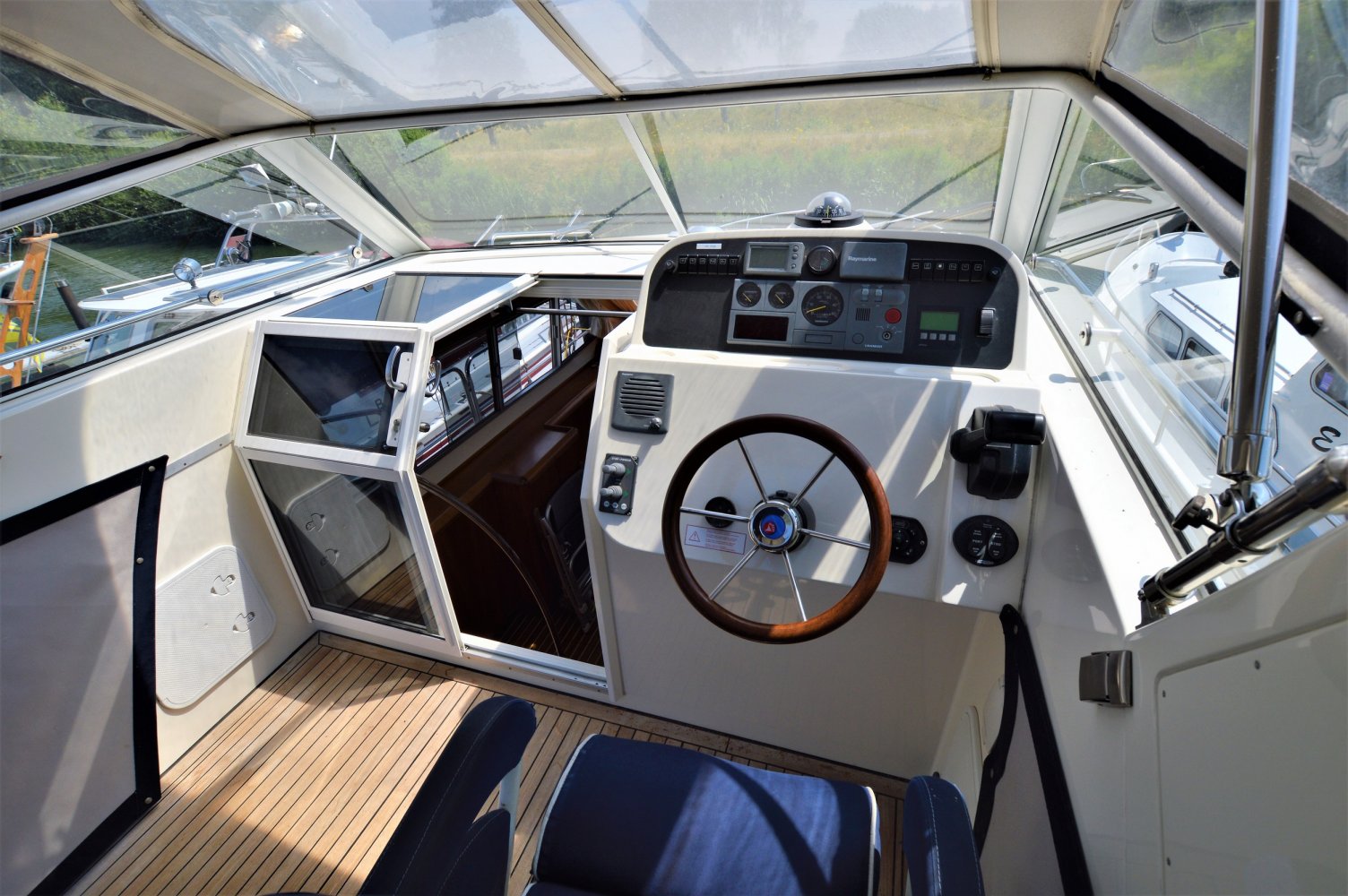 Etap 1100 AC motorboot met elegant houten interieur. Twee kajuiten met eigen douche en wc.