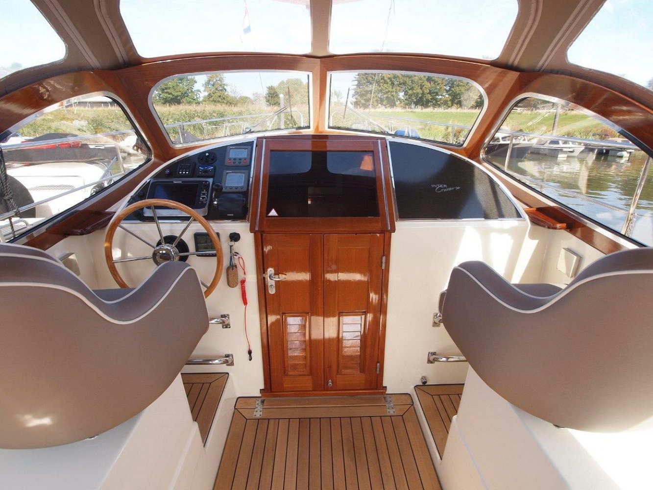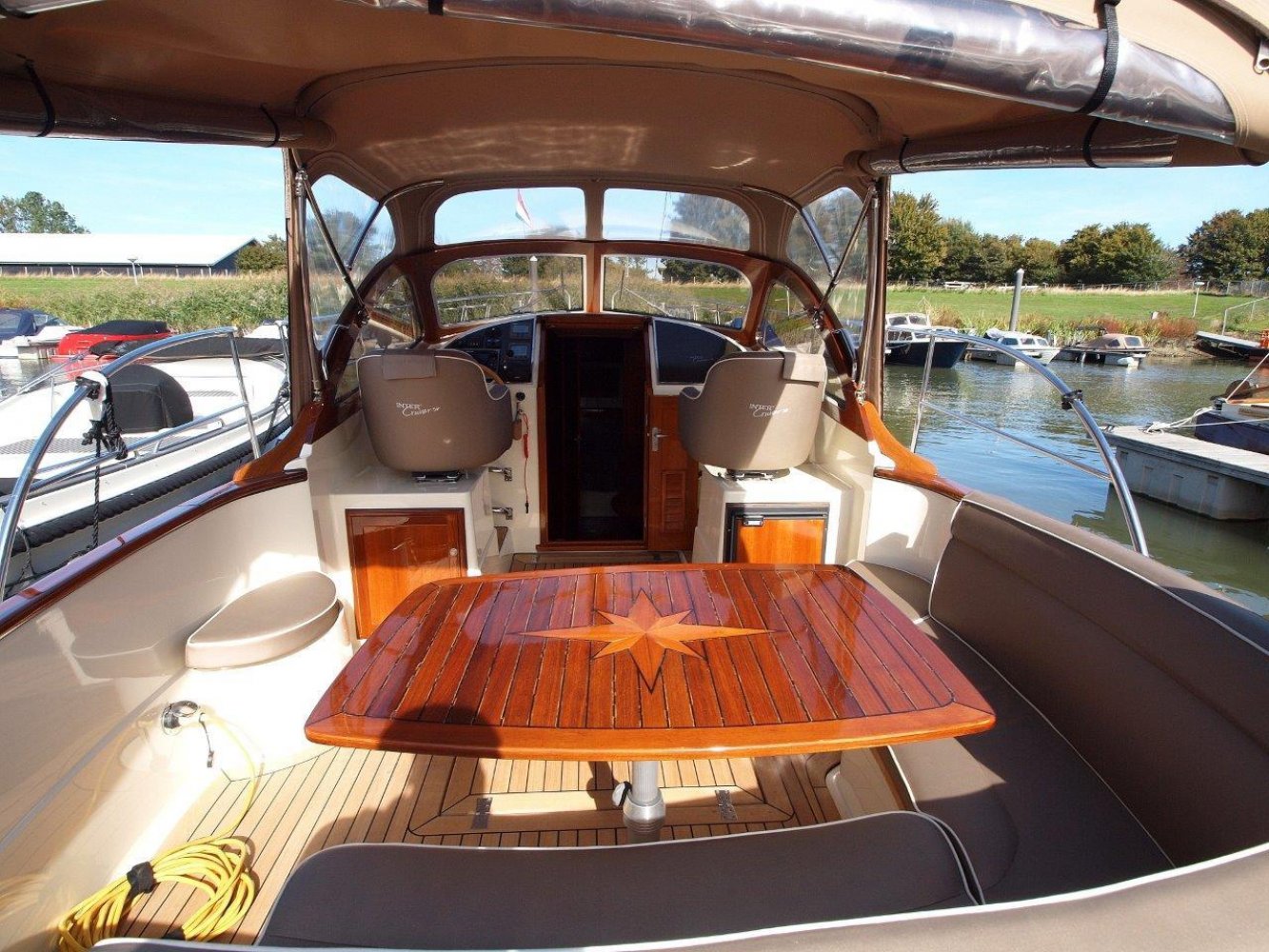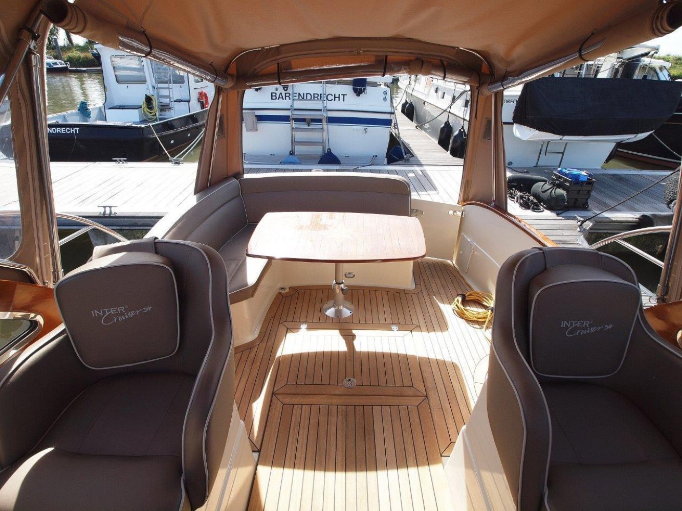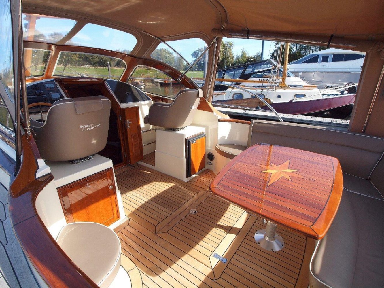 Bijzonder fraaie Intercruiser 34 aangeboden voor een interessante prijs. Het schip is meer dan uitstekend onderhouden, wordt elke winter in een verwarmde loods gestald, is compleet uitgerust en vaarklaar voor een nieuwe eigenaar. De intercuirser 34 is aan klassiek gelijnd schip met hedendaags comfort en luxe. De polyester romp met fraaie houten afwerking aan dek geeft haar een klassiek chique uiterlijk. Teak dekken, de houten raamomlijstingen en smaakvolle stoffering maken haar een echte eye catcher in elke haven.