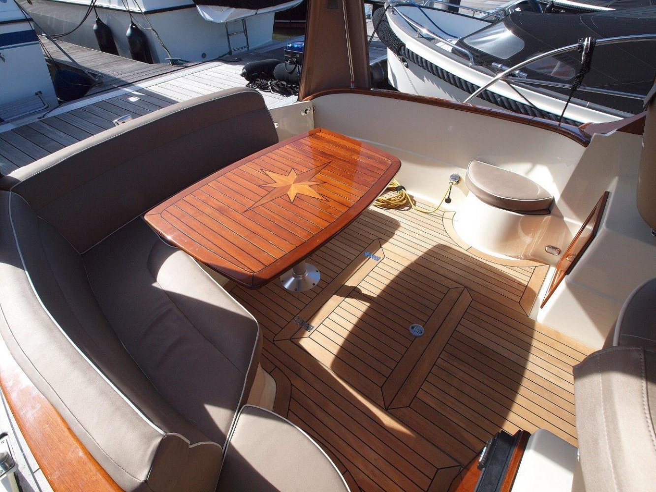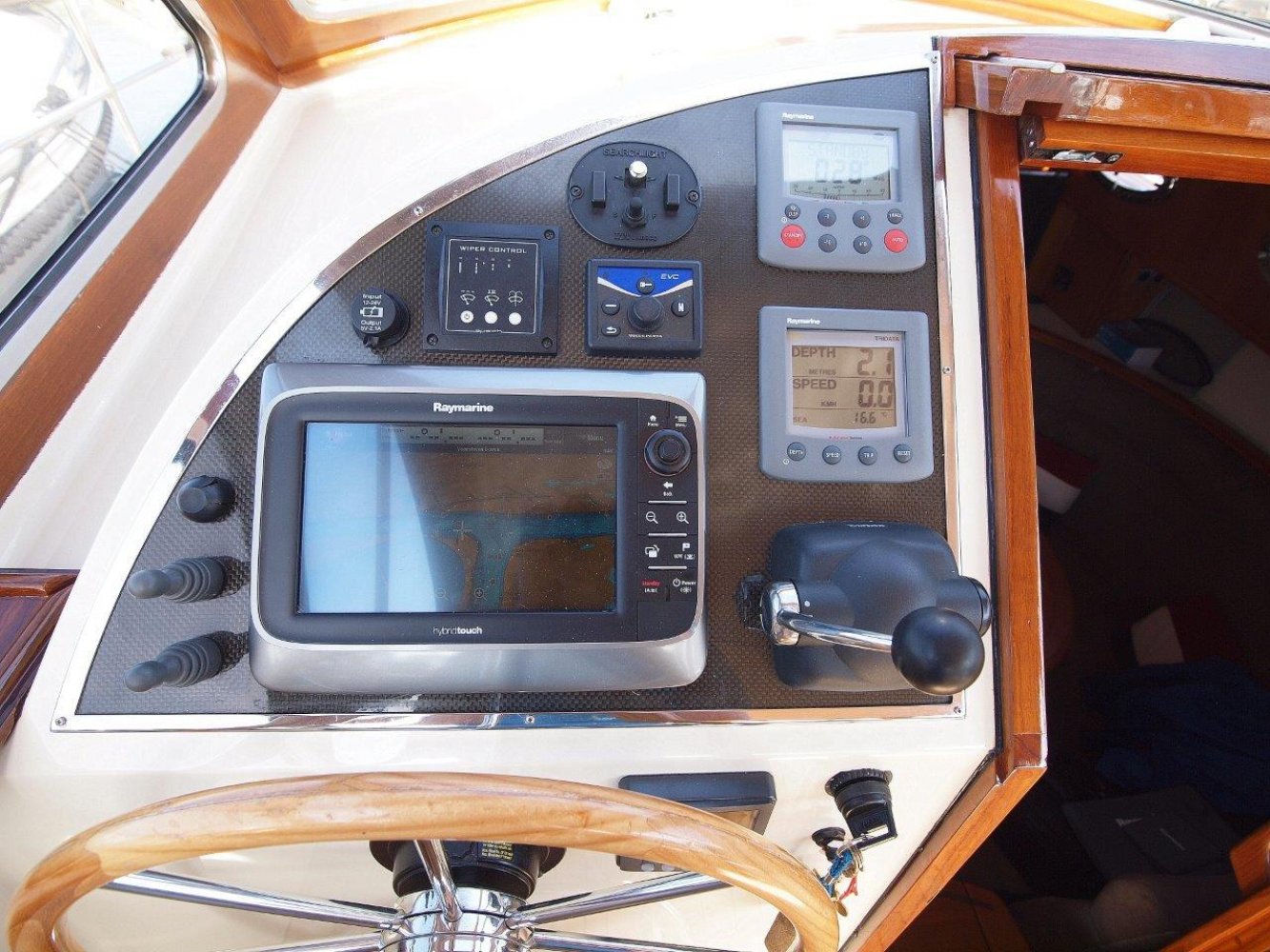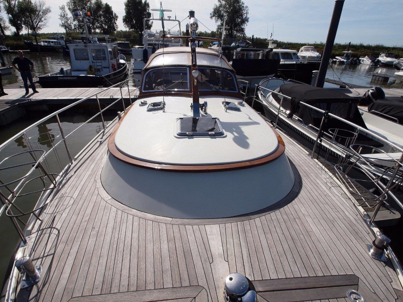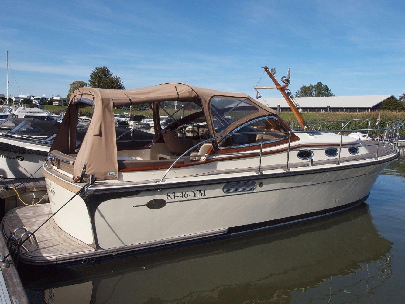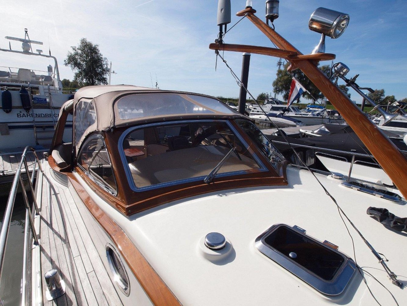 Bijzonder fraaie Intercruiser 34 aangeboden voor een interessante prijs. Het schip is meer dan uitstekend onderhouden, wordt elke winter in een verwarmde loods gestald, is compleet uitgerust en vaarklaar voor een nieuwe eigenaar. De intercuirser 34 is aan klassiek gelijnd schip met hedendaags comfort en luxe. De polyester romp met fraaie houten afwerking aan dek geeft haar een klassiek chique uiterlijk. Teak dekken, de houten raamomlijstingen en smaakvolle stoffering maken haar een echte eye catcher in elke haven.