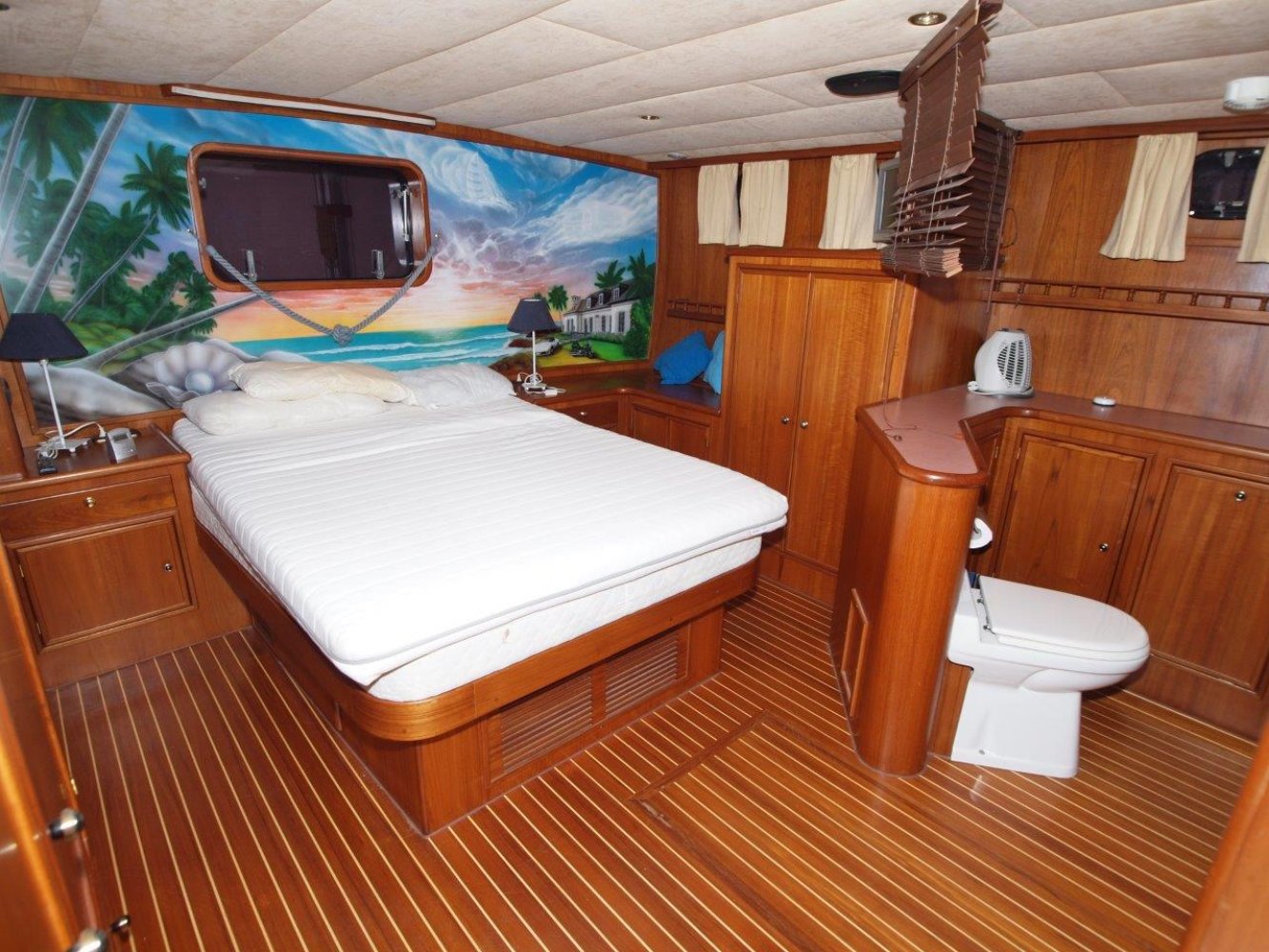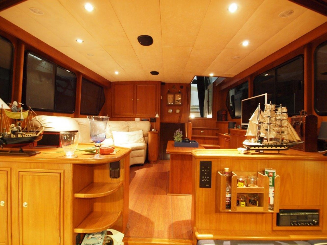 Uitstekend onderhouden en lekker ruime Altena 48 vaarklaar voor een nieuwe eigenaar. Dit in Nederland gebouwde kwaliteits schip heeft een fraaie lijn met een praktische indeling. Uiteraard is ze voorzien van alle zaken die u op een dergelijk schip mag verwachten zoals een Kabola centrale verarming, airco, generator, etc.Aan boord wordt u als eerste ontvangen op een ruim achterdek met geïntegreerde bank en nog meer dan voldoende plaats om extra stoelen en een tafel te plaatsen. Als u verder een "rondje" maakt over het dek vallen de ruime gangboorden met een hoge solide reling op. Overigens is er uiteraard een zwemplatform met een fraaie "wenteltrap" naar het achterdek.Richting de kajuit treft u als eerste de stuurstand aan. Deze is voorzien van een ruime zitbank en de nodige apparatuur. Op minder mooie dagen is er een ruime "buiskap" ter bescherming tegen de elementen. Een stukje verder is uiteraard ingang naar de kajuit. Via een fraaie trap betreed u de salon welke gekenmerkt wordt door een ruime opzet en veel glas zodat u veel licht binnen komt. Aan stuurboord is een comfortabele bank en aan bakboord de nodige bergruimte. Verder naar voren in het schip komt u door middel van een klein trapje in het voorschip. Hier is aan stuurboord een grote en compleet uitgerust kombuis en daar tegen over een gezellige dinette. In de voorpiek is de gasten hut met een stapelbed en een eigen natte cel.