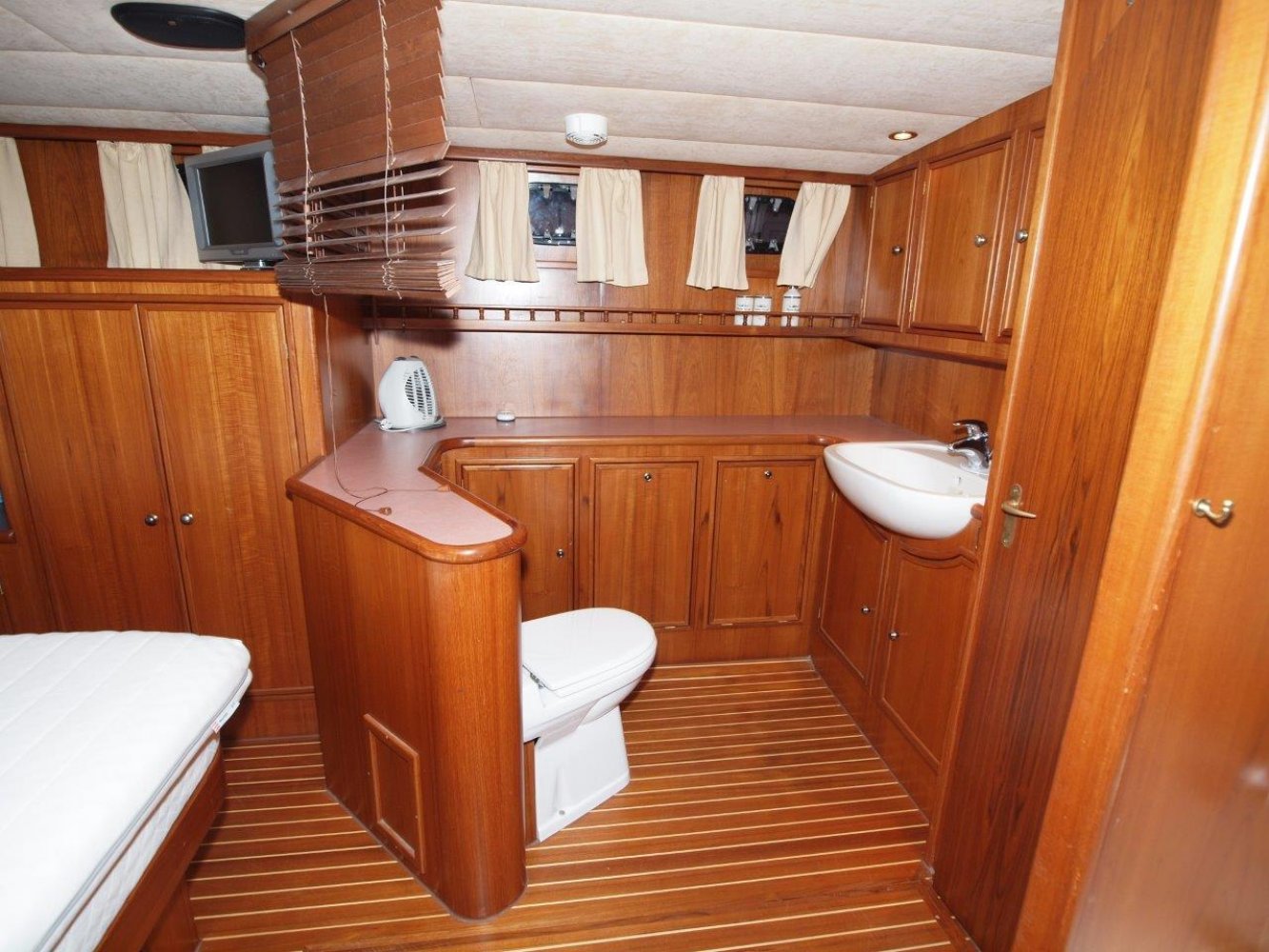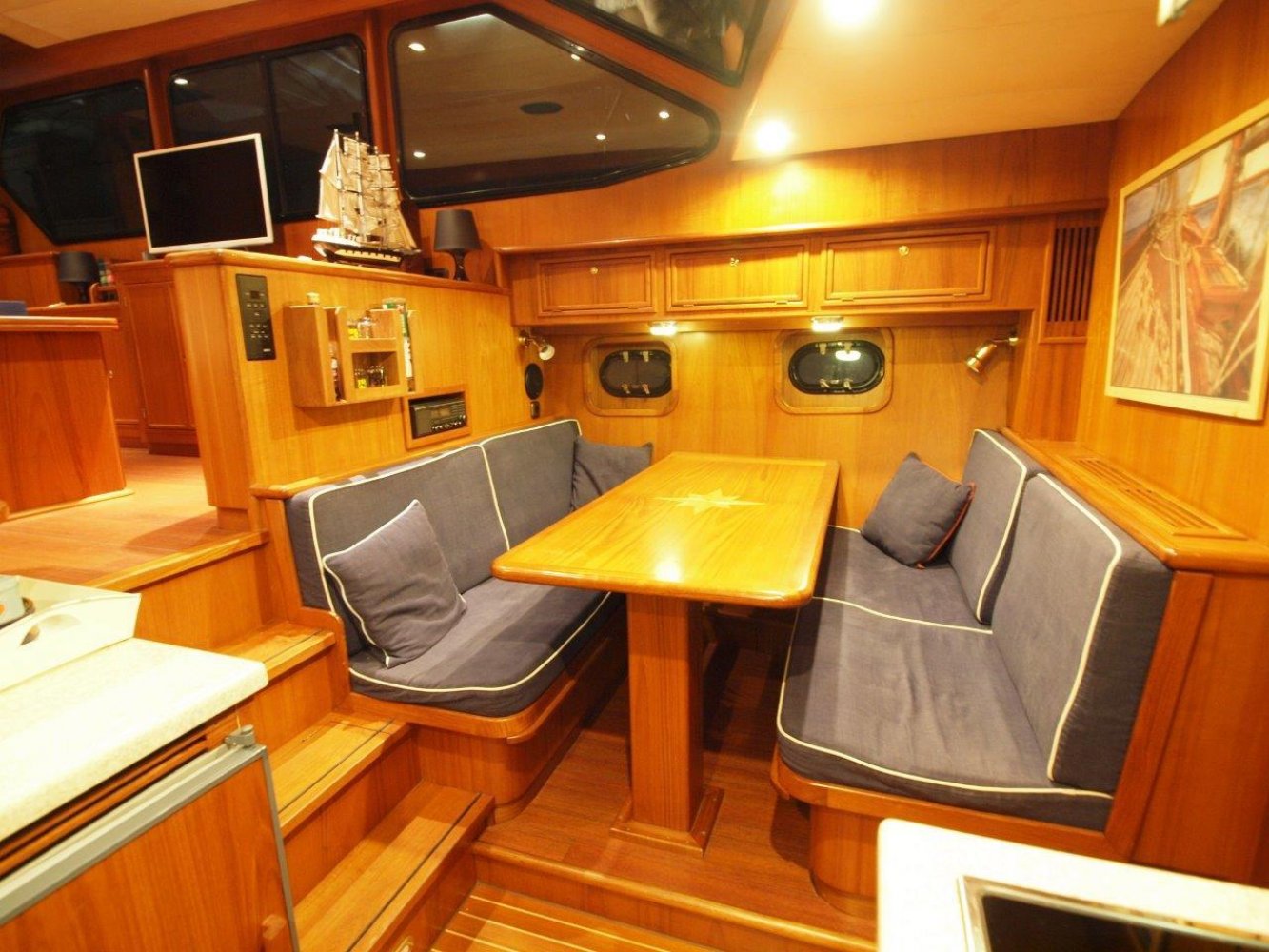 In het achterschip is de eigenaarshut. Deze is opvallend ruim met zelf een badkuip! Verder natuurlijk een toilet en erg veel opberg ruimte. Overigens is onder de salon vloer de motorkamer waar u de zacht lopende zes cilinder John Deere diesel aantreft met nog maar een kleine duizend uur op de teller.Deze Altena 48 is ruim, uitstekend onderhouden en compleet uitgerust. Een ideaal schip voor langere reizen of zelfs geschikt als live-on-board. Interesse? Neem dan zeker contact op om een afspraak te maken voor een bezichtiging. Ze staat gedurende winter binnen in een loods waar u het schip ook kunt bekijken. Uw makelaar is White Whale Willemstad en te bereiken via +31 168 820 208 of [email protected]