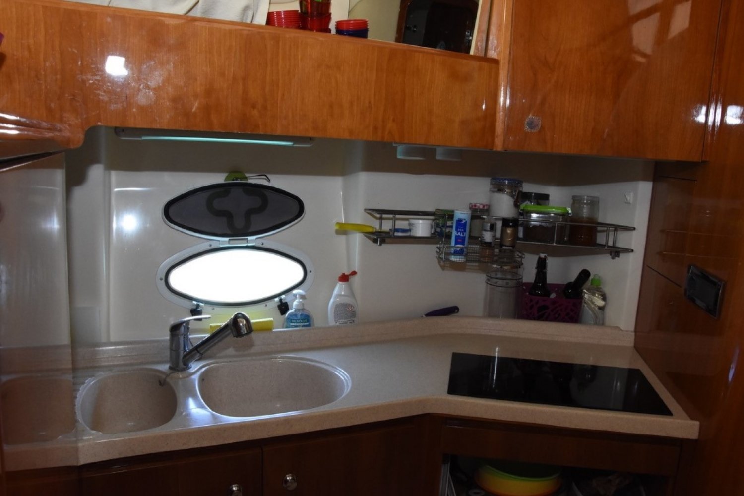 It has bow and stern thruster, solar panels (5kw), generator (3,5kw), built-in Honda of 2kw