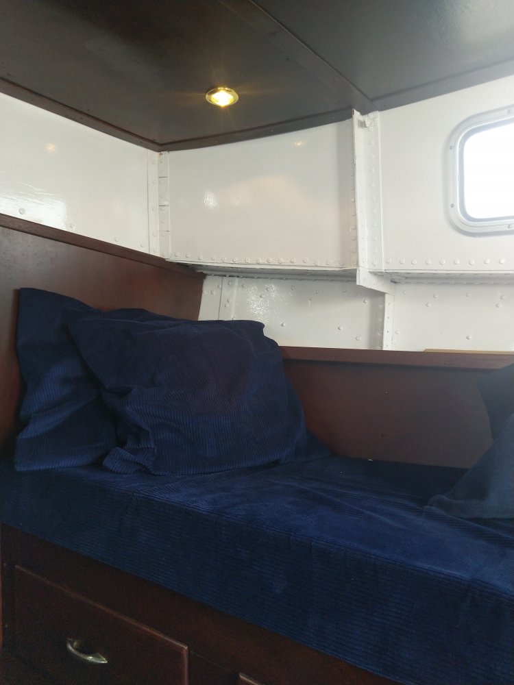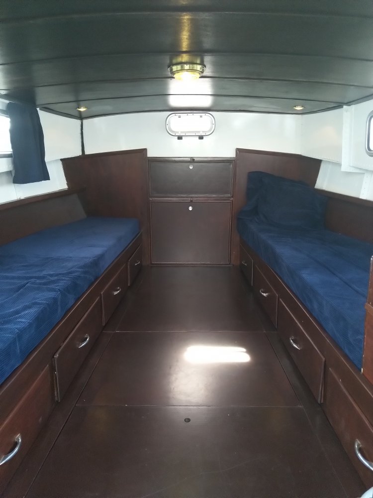 Vorig jaar is er waar nodig de motor gereviseerd (nwe. keerringen, startmotor etc) en is de gehele bilge en vlak binnen opnieuw geconserveerd (voorzien van olie bestendige bilgeverf van Epifanes).  Tevens zijn de GEBO ramen voorzien van nieuwe rubbers en is de navigatieverlichting compleet vernieuwd.