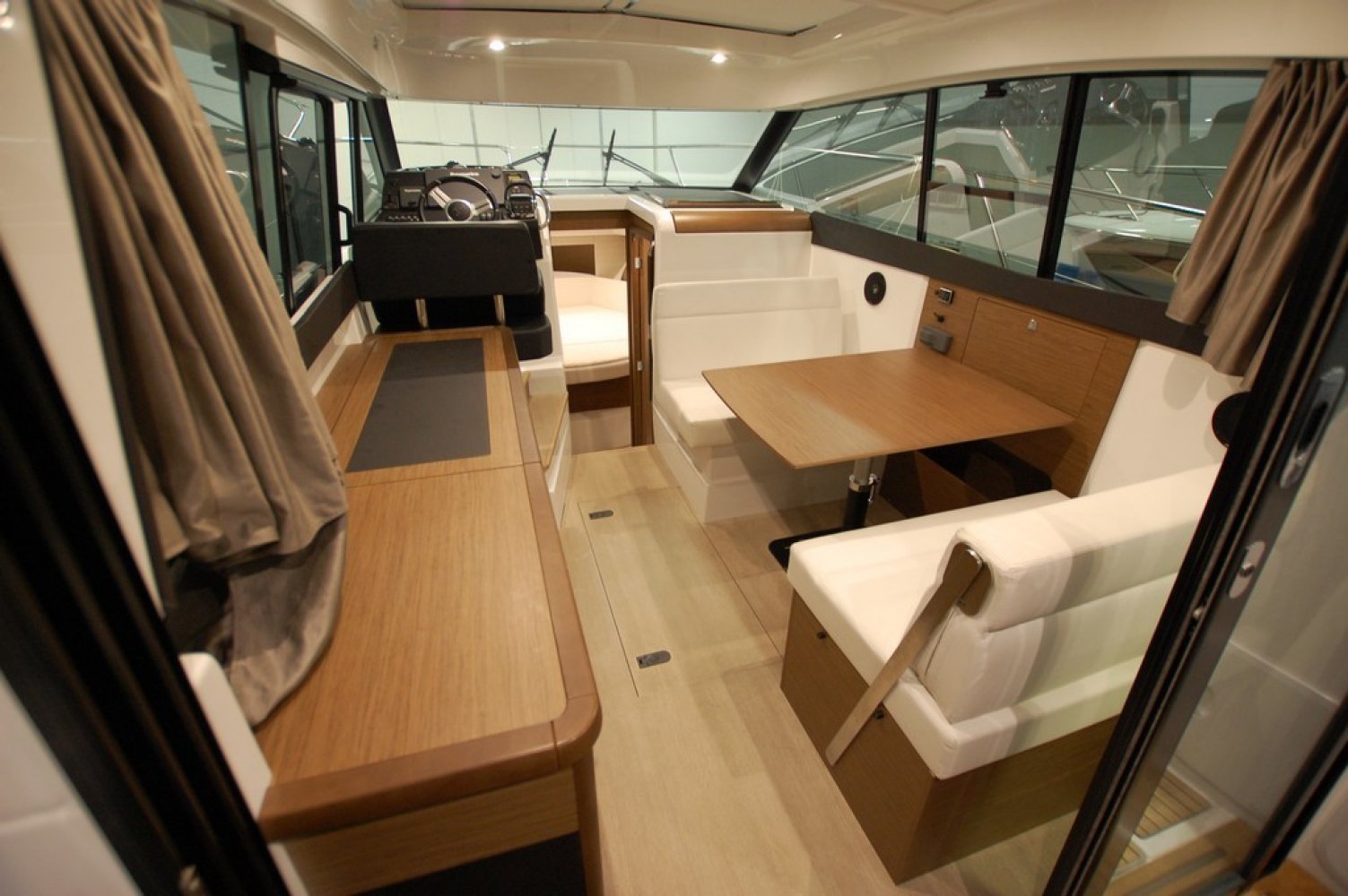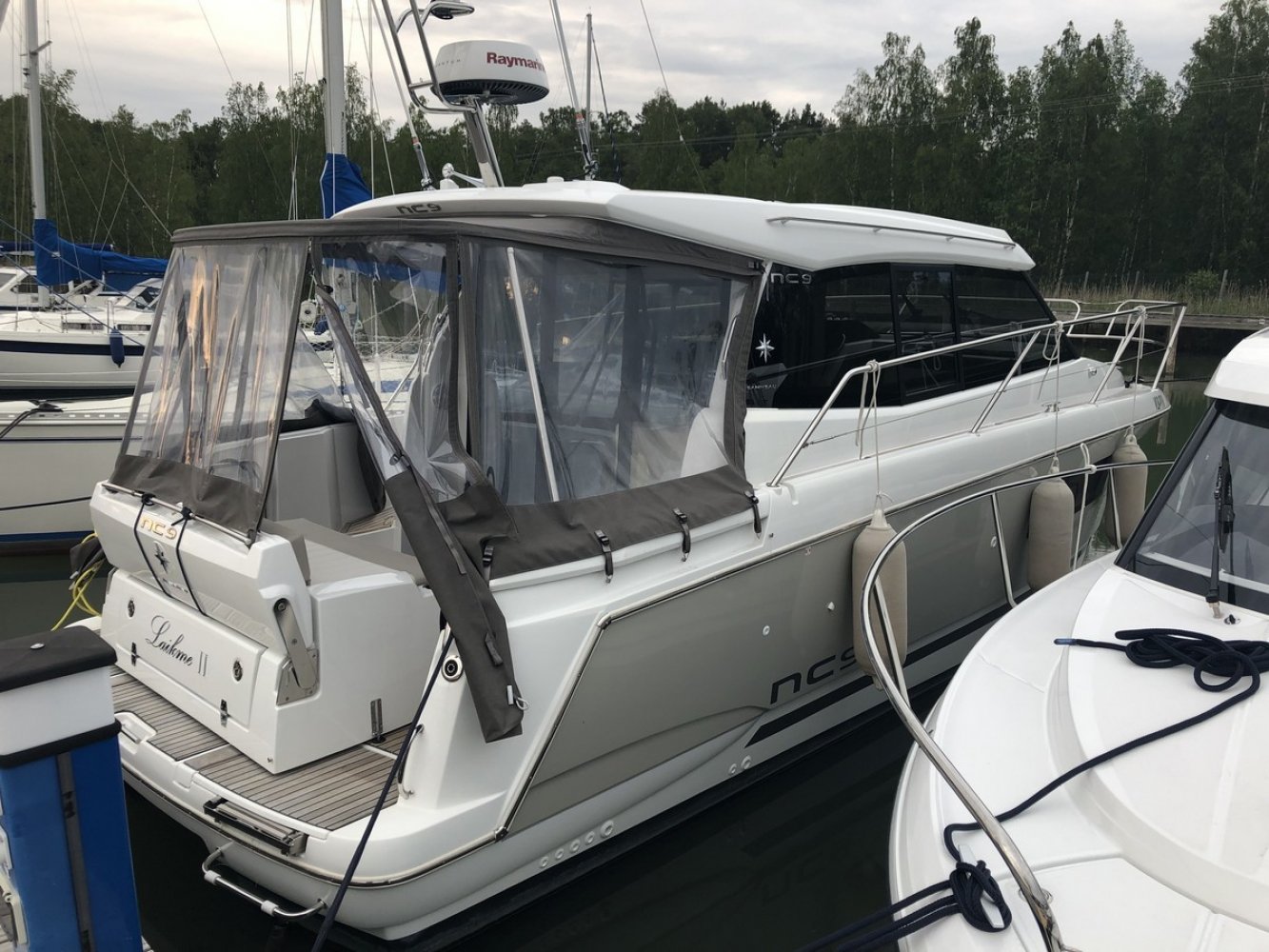 Engine Volvo Penta D4-260, only 70 hours Very high specification, all standard options plus extras: Walnut interior Electric sunroof Electric anchor windlass Trim tabs Cockpit and side deck LED -lightning Shore power + charger Electric toilet Additional berth in salon Raymarine E127 plotter Radar Autopilot AIS 650 receiver VHF Depth Search light Wi-Fi module Mooring and anchoring kit Cockpit sofa transfer to sunbed Bow platform + ladder Cockpit covers Bow thruster Heating Additional battery Fusion Audio Teak in cockpit