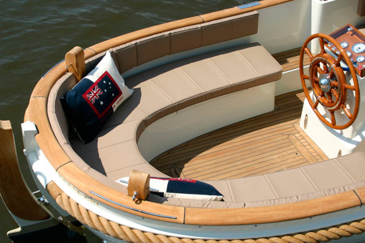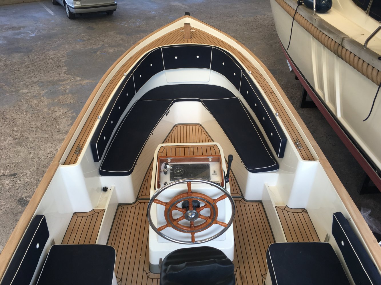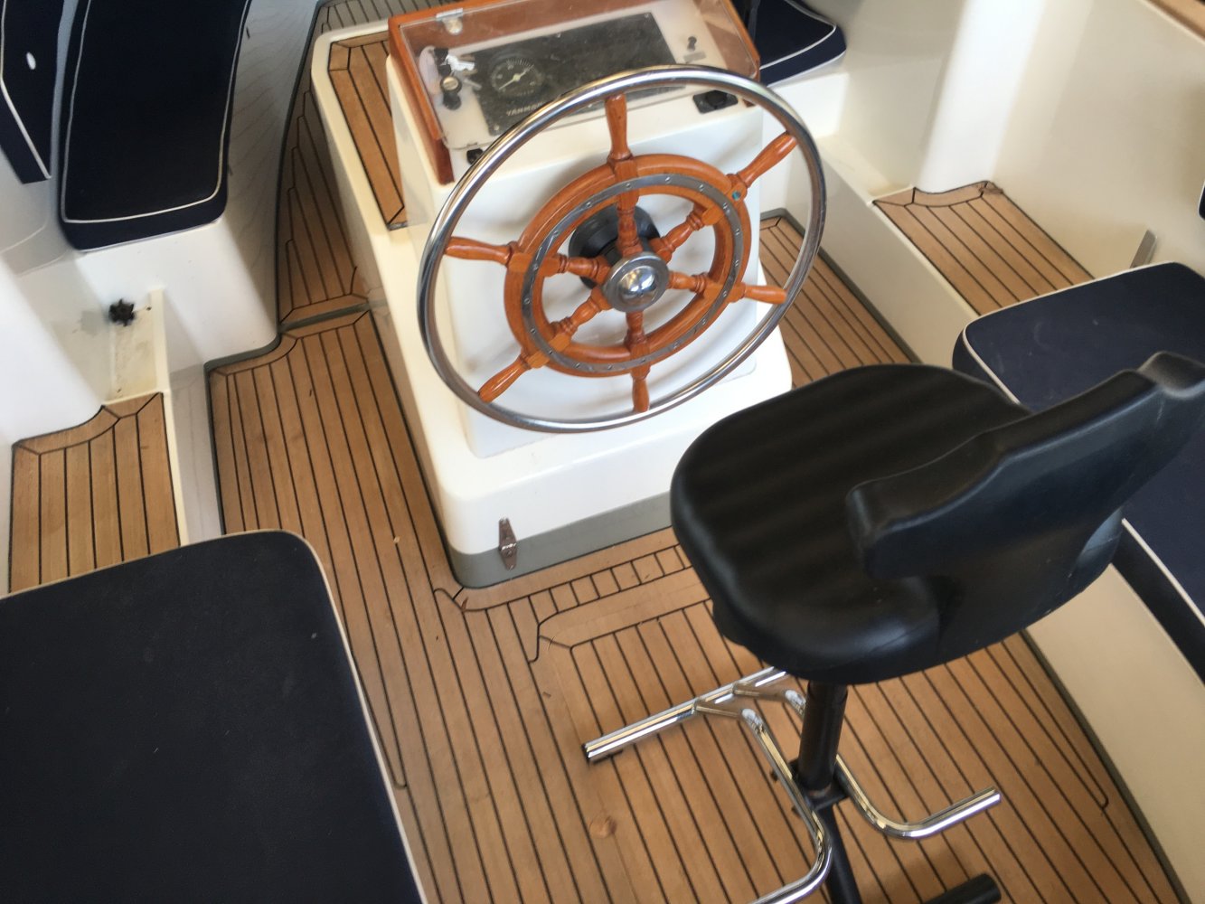 tussen de voorbanken kunt u deze dicht maken in combinatie met houten delen en de speciaal daarvoor gemaakte kussens. verzonken navigatieverlichting compleet RVS zwemtrap Paraplu anker