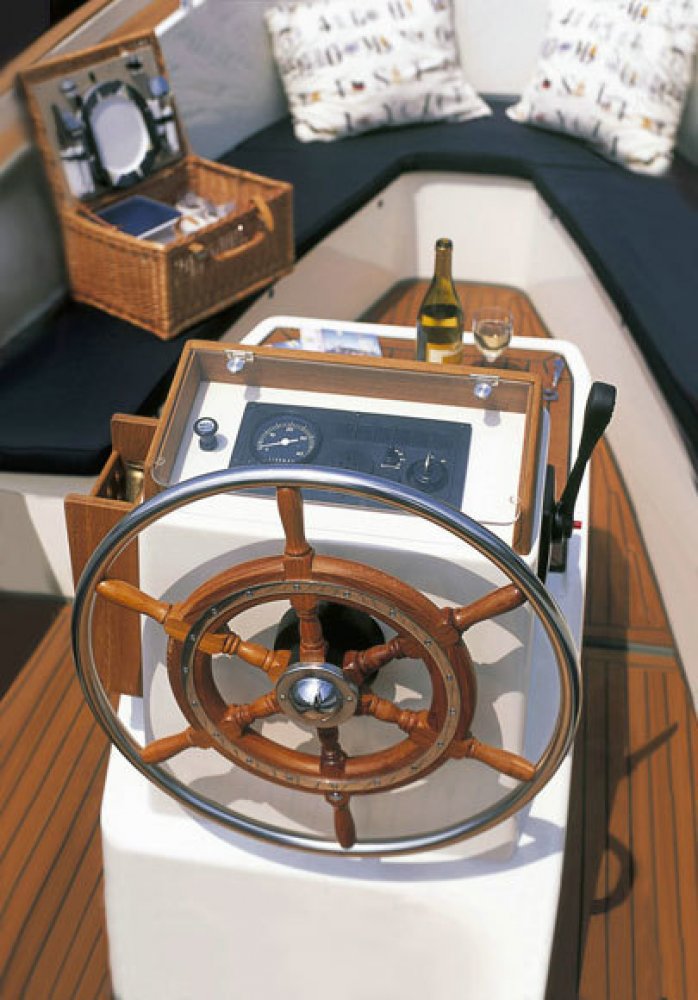 Het roer is een aangehangen en van polyester met teakhouten wangen. Er zijn 2 embleems op de boeg gemonteerd. Verder over het beslag zijn er 3 hijsogen ingelamineerd en is het potdeksel gemaakt van teakhout. De (nood-)helmstok voor aan het roer is ook van teakhout. Er zijn 3 teakhouten bolders met RVS pennen. De touwkabelaring is onbeschadigd en heeft een kopleguaan en polyester afdekkapjes. Vlag met stok en RVS houder. Het onderwaterschip heeft in 2019 een nieuwe aangroeiwerende laag gekregen. Er is voor de veiligheid ook een hak bij het roer aangbracht. De Van Wijk heeft een heerlijke Yanmar motor en met 27 pk is dat best wel een grote motor en sterke motor. Deze motor heeft een waterafscheider, een RVS schroefas met onbeschadigde bronzen schroef en een royale brandstoftank. Een teakhouten dashboard met teakhouten lijst en ter bescherming een plexiglas perplex deksel, en natuurlijk voorzien van een mooi stuurwiel met centrale stuurstoel. De Van Wijk is elk jaar onderhouden door Scheepstechniek Nico Asendelft.