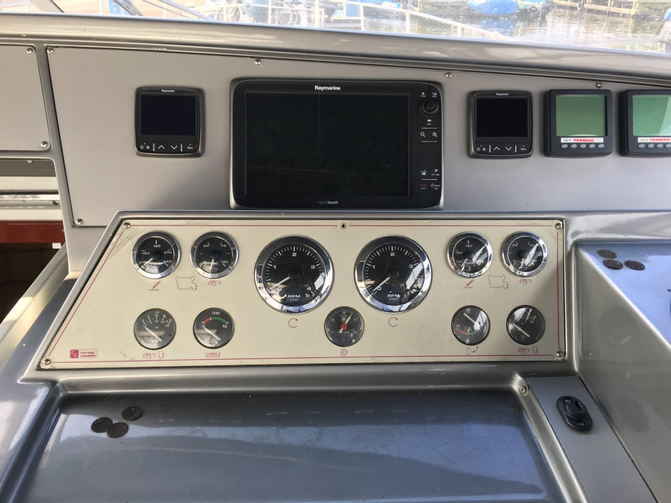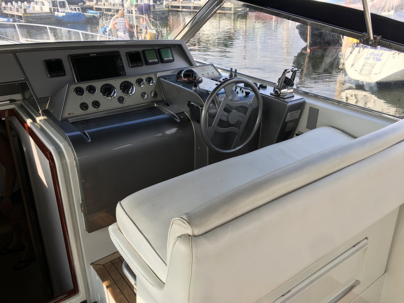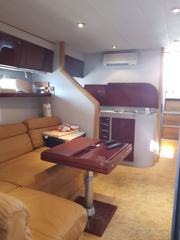 Het gehele dashboard is voor tienduizende euro's vernieuwd met nieuwe meters en nieuwe navigatiestystemen. Het is schip heeft allerlei belangrijke extra's zoals een generator maar ook een waterdichte douche cabine. Meerdere douches en meerdere toiletten en ruime banken en veel daglicht en grote keuken horen bij dit soort schepen. Omdat alles nieuw is ruikt het schip fris en er zijn haast geen beschadigingen. Achter heb je een enorm groot zonnedek en daaronder een enorme opslagruimte voor jetski's of rubberboor met motor. Het teakdek is in goede conditie.