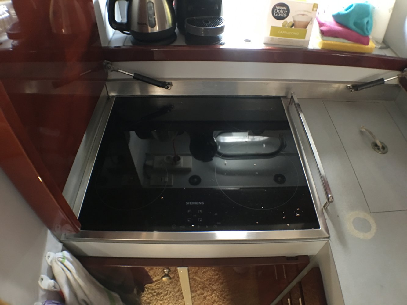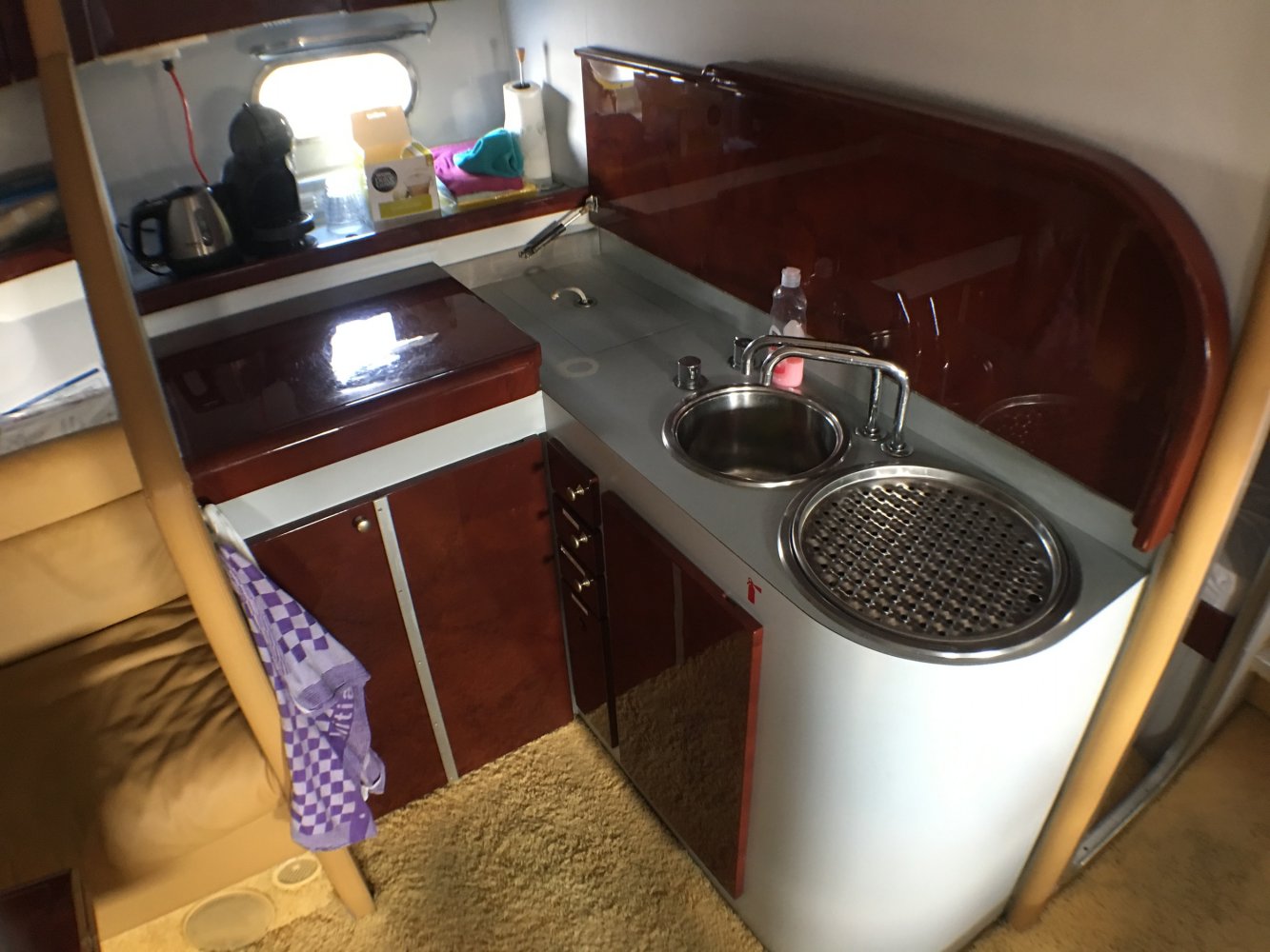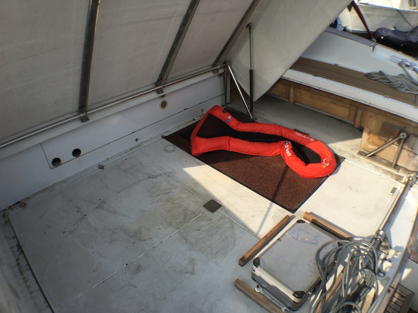 Het gehele dashboard is voor tienduizende euro's vernieuwd met nieuwe meters en nieuwe navigatiestystemen. Het is schip heeft allerlei belangrijke extra's zoals een generator maar ook een waterdichte douche cabine. Meerdere douches en meerdere toiletten en ruime banken en veel daglicht en grote keuken horen bij dit soort schepen. Omdat alles nieuw is ruikt het schip fris en er zijn haast geen beschadigingen. Achter heb je een enorm groot zonnedek en daaronder een enorme opslagruimte voor jetski's of rubberboor met motor. Het teakdek is in goede conditie.
