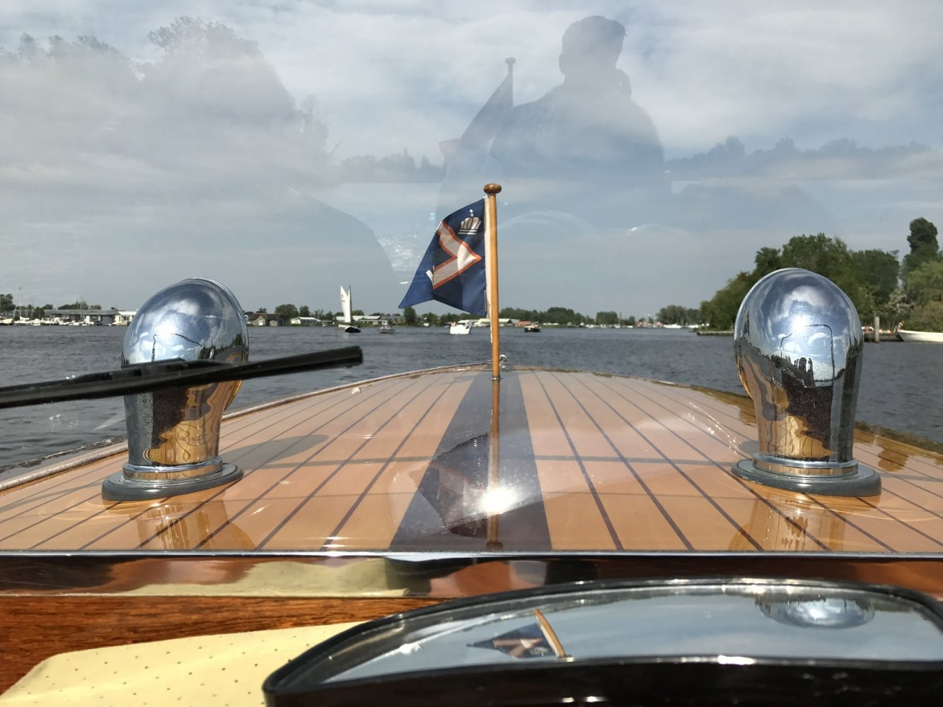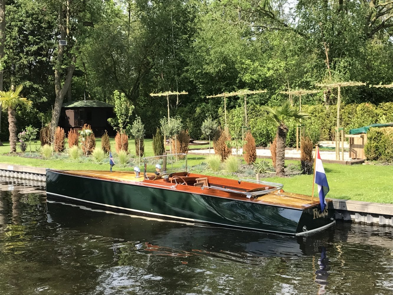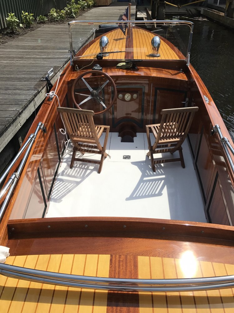 Dit is wel een van de meest bijzondere exclusieve schepen die ik in de aanbieding heb gekregen. Nu moet er nog een interview plaats vinden met de eigenaar/ verkoper. Maar om niet te wachten kunt u alvast genieten van de foto’s. Soms zijn er echt authentieke accessoires gebruikt. Let u bijvoorbeeld op het stuur .Van oorsprong is dit een Engels ontwerp maar later door een Duitser over genomen en die heeft het vrijboord ( zijkant tussen waterlijn en stootrand) hoger gemaakt. Dit was praktischer omdat de boot gebruikt zou worden in “ de Duitse Bocht”. De bouw is gestart in het jaar 2000 door Feadship opgeleiden mensen. Deze boot heeft ook nog iets extra bijzonders wat ik nog nooit gezien had. De bodem is namelijk zogenaamd hol gebouwd. Dus in het midden minder diep dan aan de zijkant.. In de fotoreportage kunt u daar een foto van vinden. Het bied 2 grote voordelen namelijk je kunt vlot door laag water varen en wat ook  heel fijn is de boot vaart super recht achteruit, dus letterlijk in parkeren als een auto. Nu ligt  de boot bij een van de meest voor aanstaande Scheepswerven in Nederland namelijk bij Helmut Harting de Riva en Boesch specialist. Alleen hier rond mogen lopen was voor mij al een hele eer en een grote beleving. Daar heeft de boot tot vandaag de dag altijd in het onderhoud gelegen. Ik heb daar verschillende mooie boten in de aanbieding gekregen om te verkopen dus belt u mij even op om te komen kijken? Pieter Pepping uw jachtmakelaar van White Whale Yachtbrokers. 0653345219 of vinkeveen@wwy/nl
