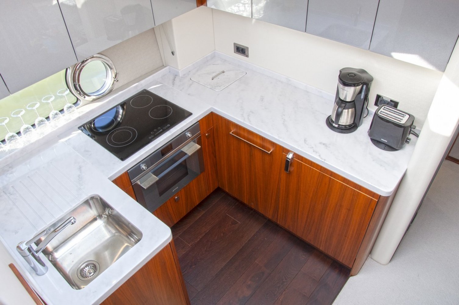 Waeco Coolmatic Refrigerator with freezer compartment Ceramic Hob 240V Plastimo touch control 4 ring 230V Hob Extractor fan Bosch Integrated microwave oven Miele 220V Slimline Dishwasher